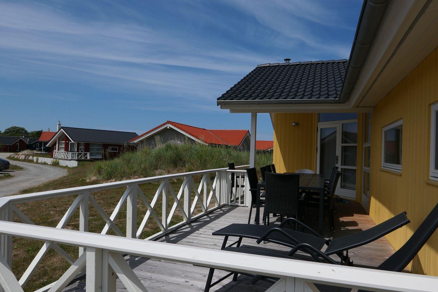 Bitte beachten Sie: Manche Häuser verfügen über ein Geländer um die Terrasse herum, andere nicht. Bei den Außen- und Innenbildern handelt es sich um Modellbilder unterschiedlicher Ferienhäuser.