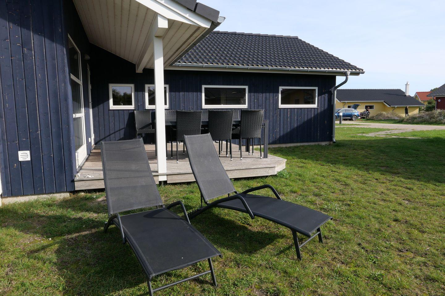Vom Wohnbereich aus haben Sie Zugang zur teils überdachten, mit großem Gartentisch und Stühlen möblierten Terrasse, auf der Sie die langen Sommerabende perfekt genießen können. 2 Sonnenliegen stehen Ihnen ebenfalls zur freien Verfügung.