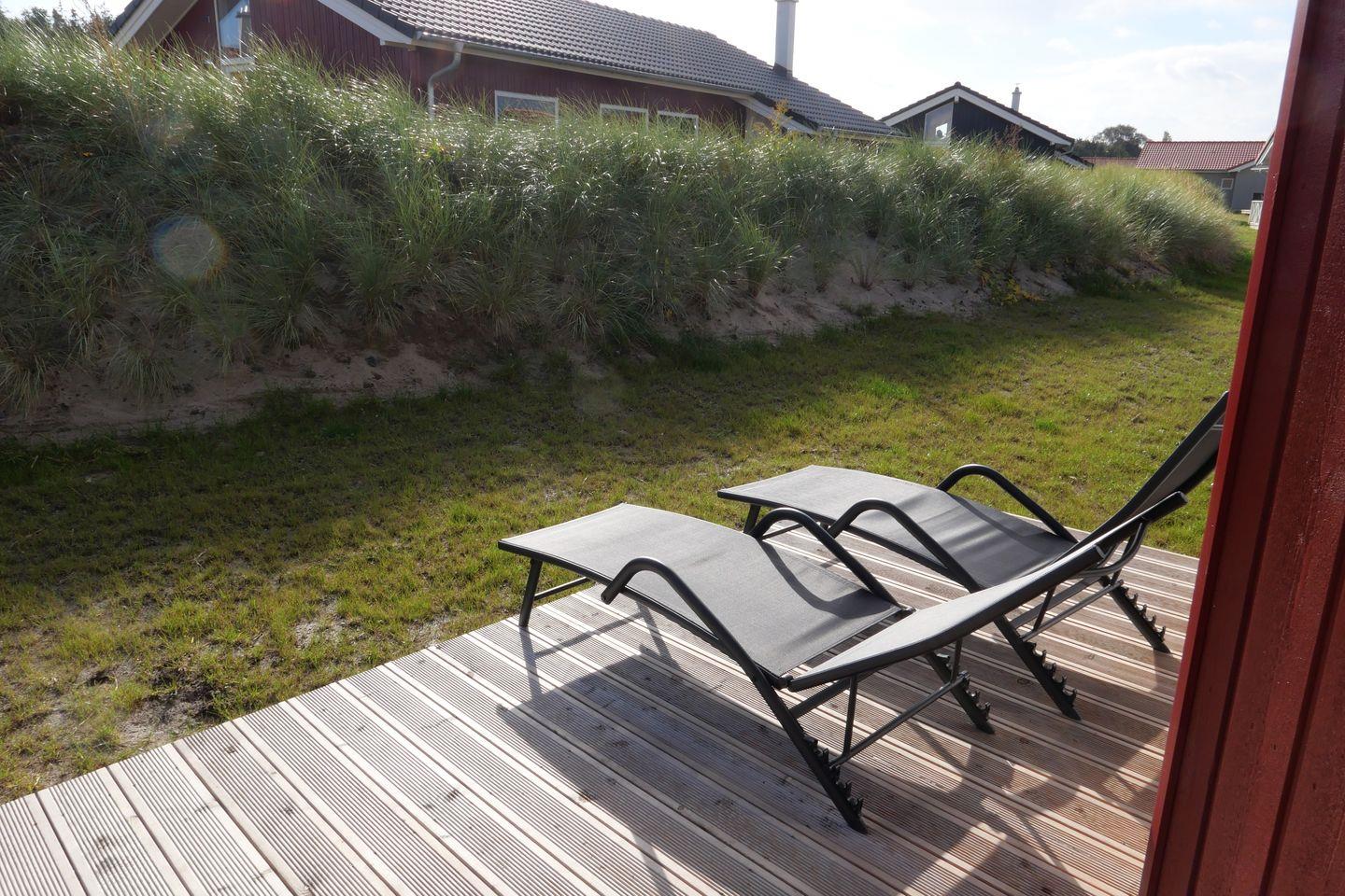 Bitte beachten Sie: Manche Häuser verfügen über ein Geländer um die Terrasse herum, andere nicht. Bei den Außen- und Innenbildern handelt es sich um Modellbilder unterschiedlicher Ferienhäuser.