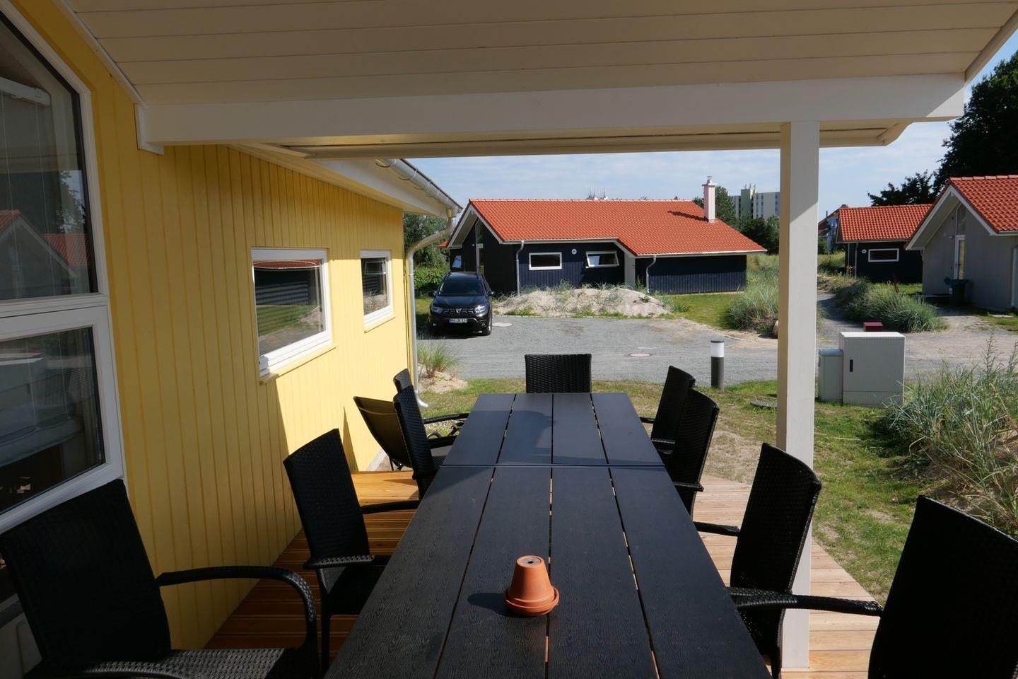 Vom Wohnbereich aus haben Sie Zugang zur teils überdachten, mit großem Gartentisch und Stühlen möblierten Terrasse, auf der Sie die langen Sommerabende genießen können. 2 Sonnenliegen stehen Ihnen ebenfalls zur freien Verfügung.