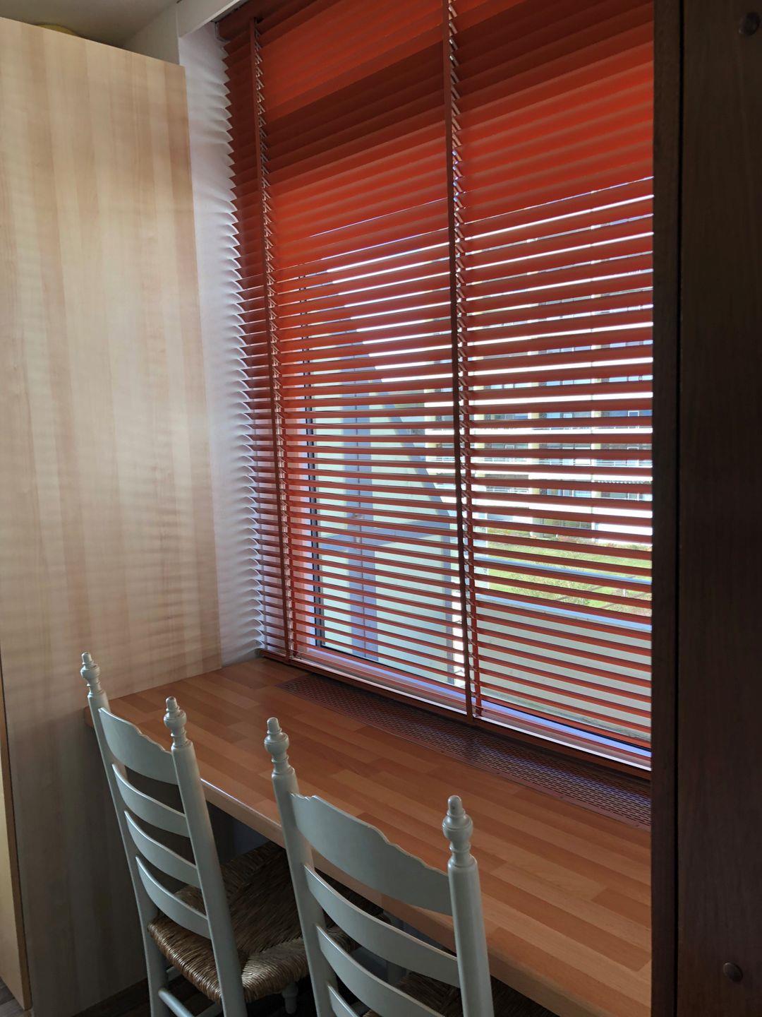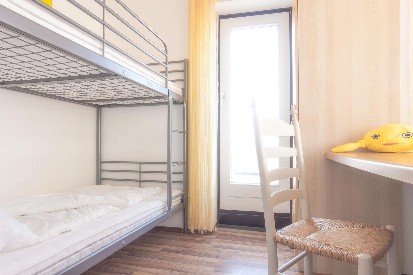 Das zweite Schlafzimmer hält ein Etagenbett mit zwei Schlafmöglichkeiten (je 90cm*200cm), einen Kleiderschrank und einen Schreibtisch mit zwei Stühlen vor.