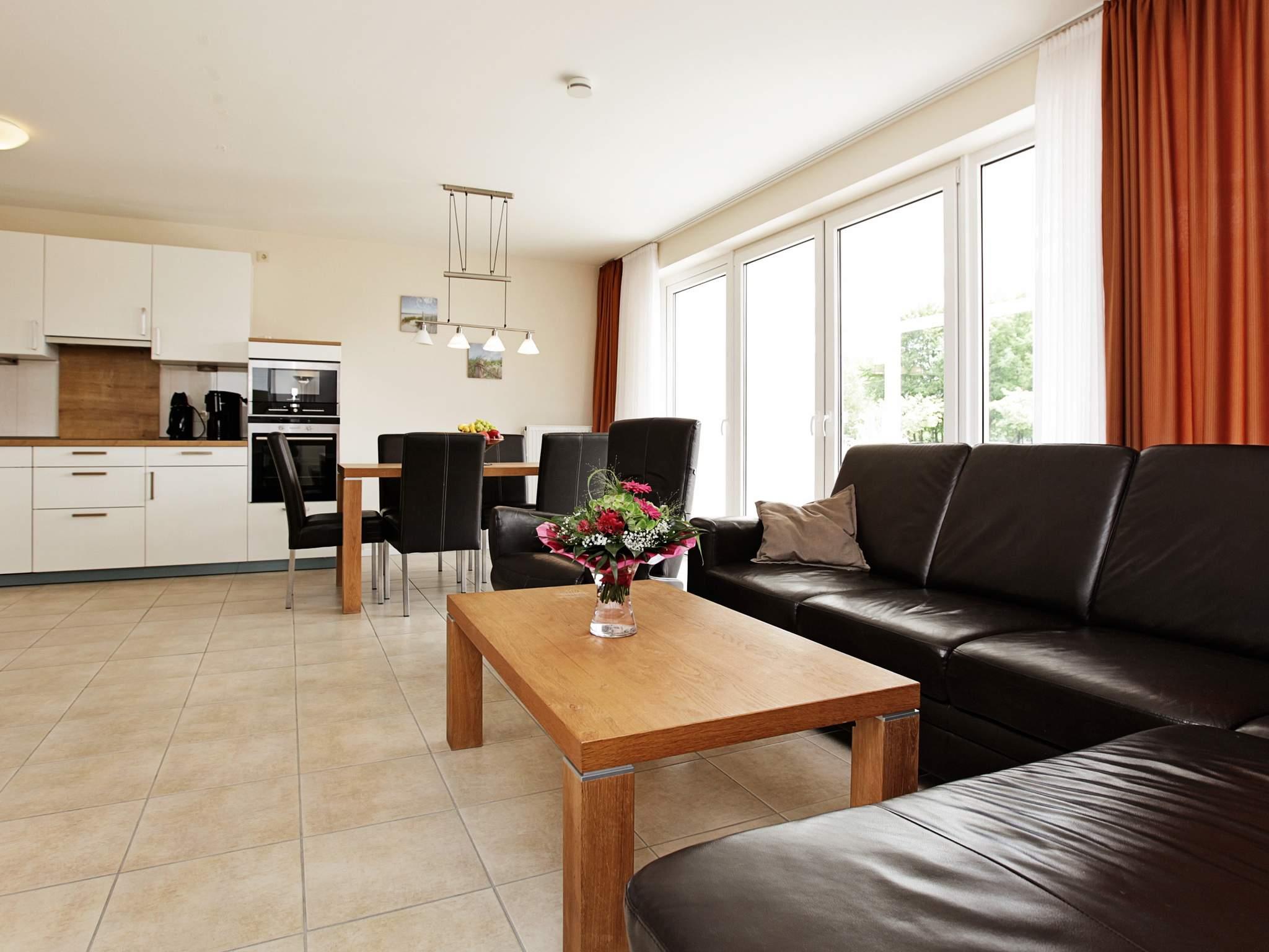 Denne ferielejlighed ligger i stueetagen i det moderne lejlighedsbyggeri Ostseeapartment ved Fehmarnsund i Ostseeheilbad Großenbrode på nordspidsen af Lübecker Bugt. Lejligheden er smagsfuldt indrettet, og de brede døråbninger uden dørtrin gør den også velegnet til kørestolsbrugere. Åbent stue/køkkenområde med bl.a. mikroovn, opvaskemaskine og vaskemaskine, fjernsyn med parabol samt dvd- og cd-afspiller. Herfra er der udgang til terrassen. I badeværelset er der en stor bruseniche. Med kun ca. 150 m til stranden og promenaden er lejligheden et perfekt udgangspunkt for skønne strandferier samt mulighed for at udforske det naturskønne område. Veststranden egner sig til et strandbesøg med hunden i snor. Hvis hunden skal have lov til at løbe frit omkring, er området "Am Kai" velegnet. Der findes en parkeringsplads til én bil ved lejligheden. Har i flere biler med, kan de parkeres ved receptionen.