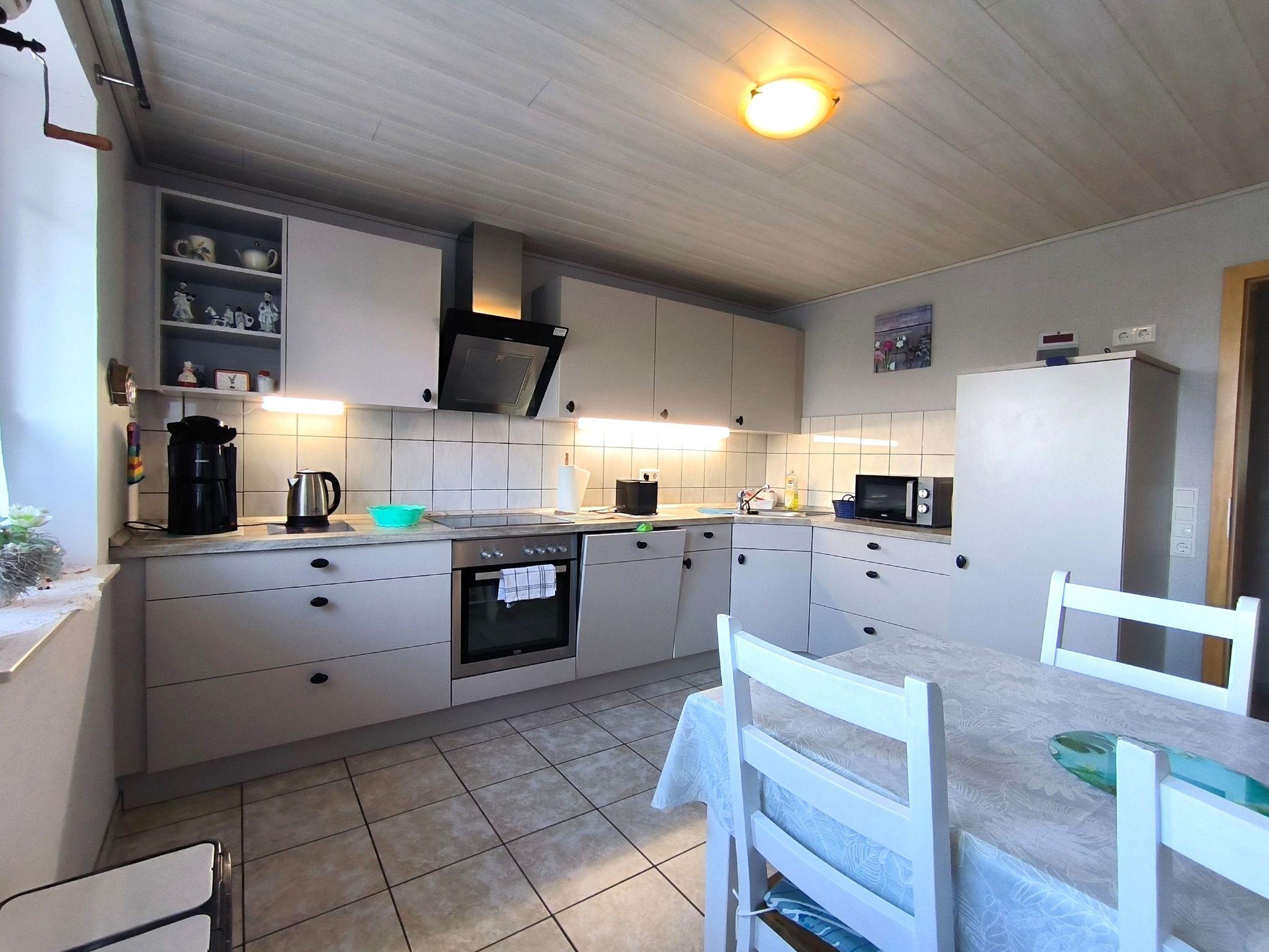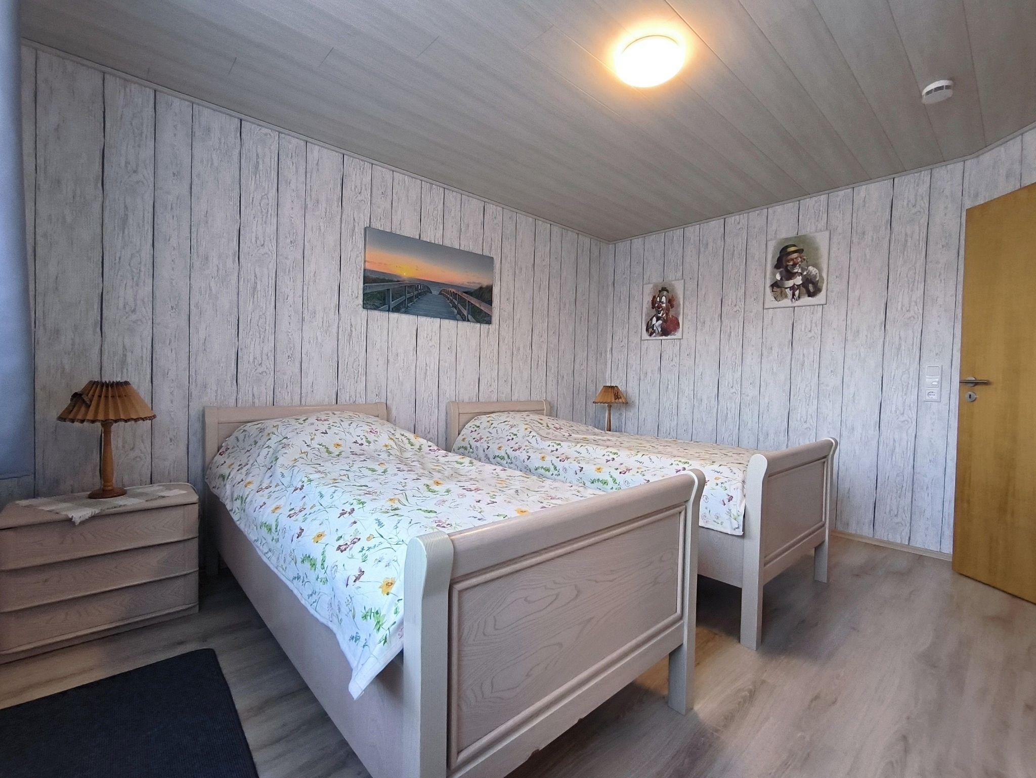 Die Ferienwohnung 1 liegt in der ersten Etage und verfügt über zwei Schlafzimmer mit Doppelbett, ein Wohnzimmer mit Sitz- und Essecke, einer Küche ( vollständig ausgestattet mit Geschirrspüler und Mikrowelle) und einem Duschbad mit Tageslicht. Im Erdgeschoss befindet sich ein Raum mit Waschmaschine und Wäscheständer.