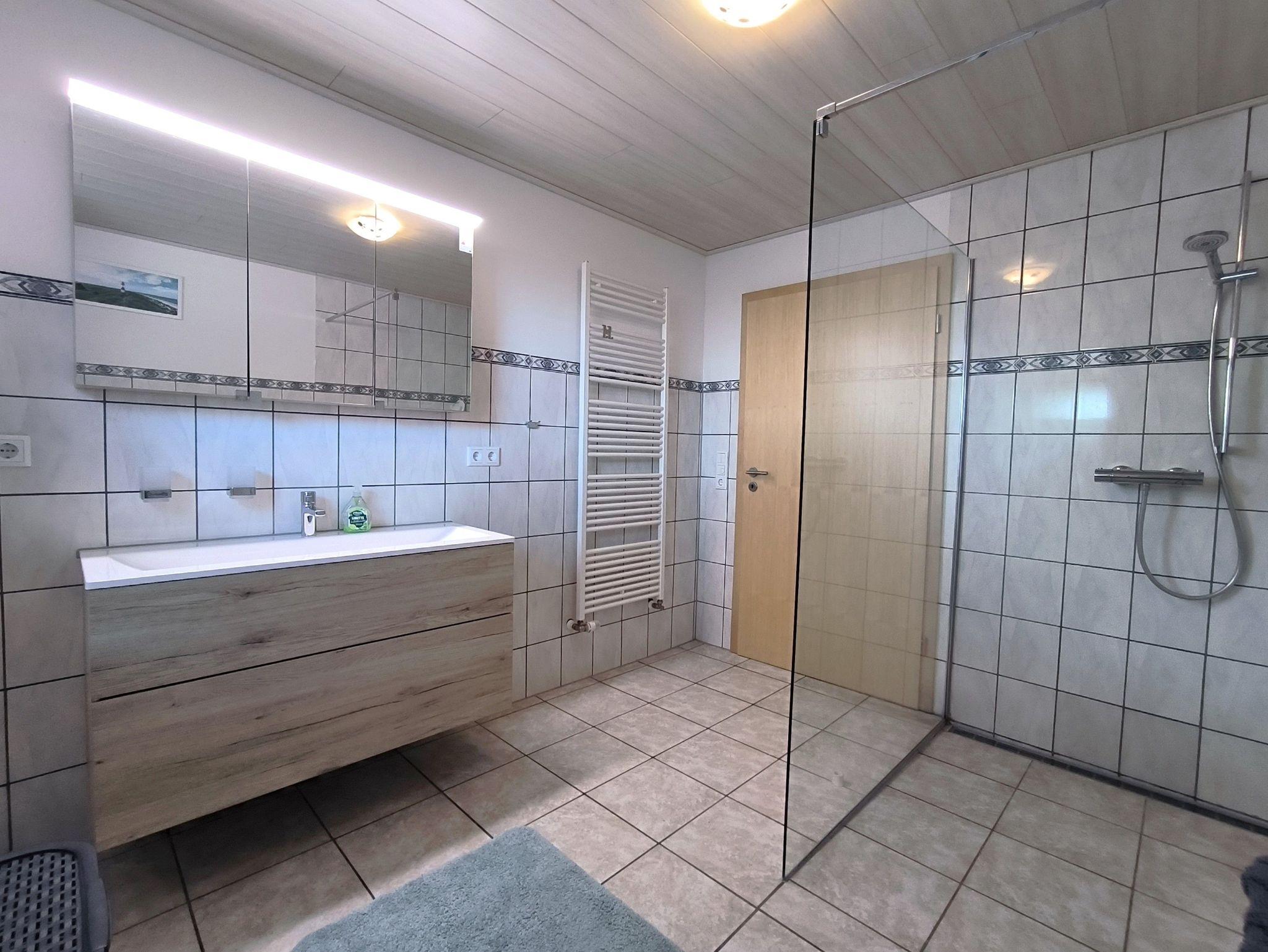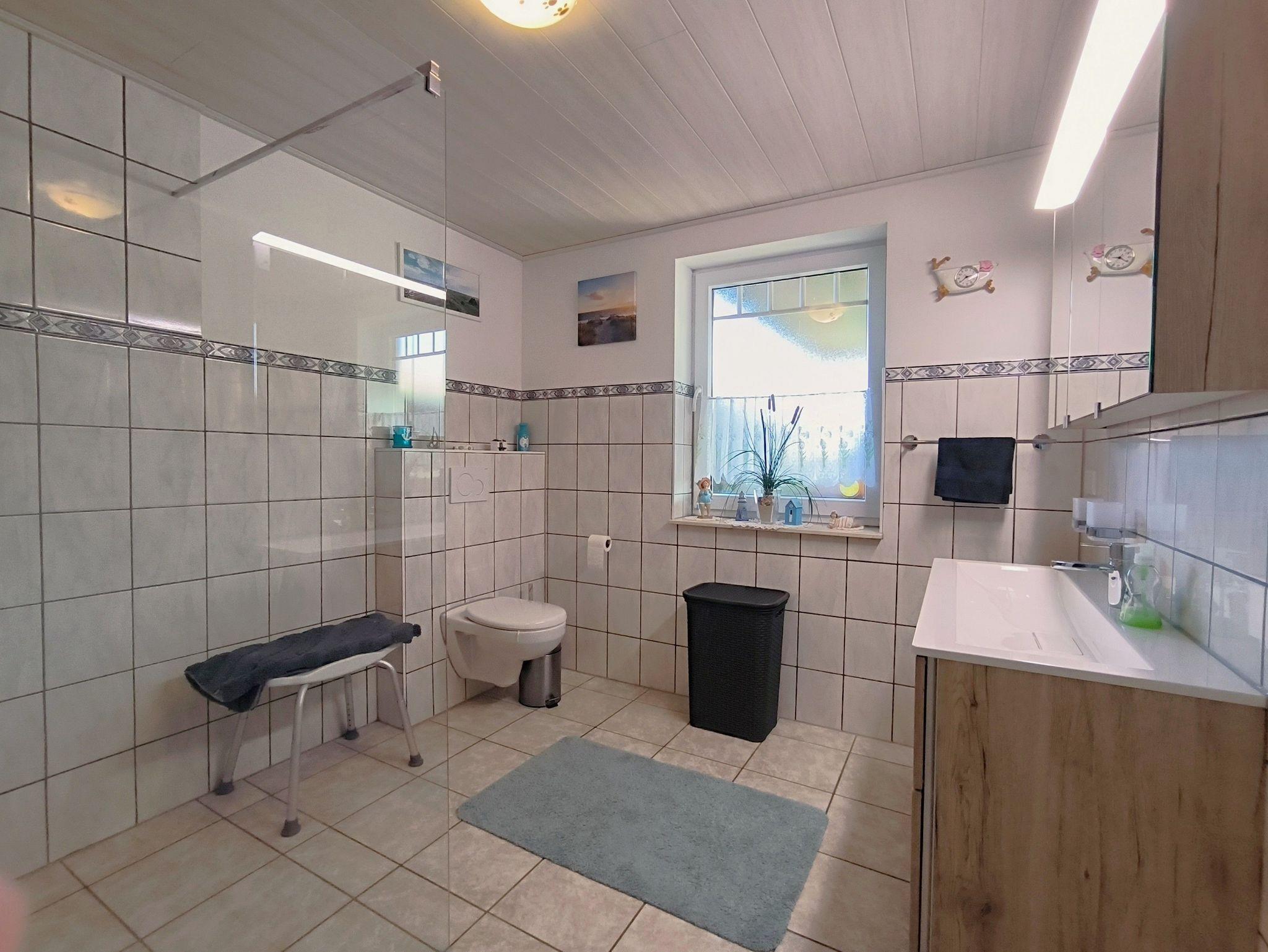 Rollstuhlgereche Ferienwohnung im Erdgeschoss, 115 qm. 2 Schlafzimmer, Wohnzimmer, Küche, Dusche/WC und Gäste-WC.