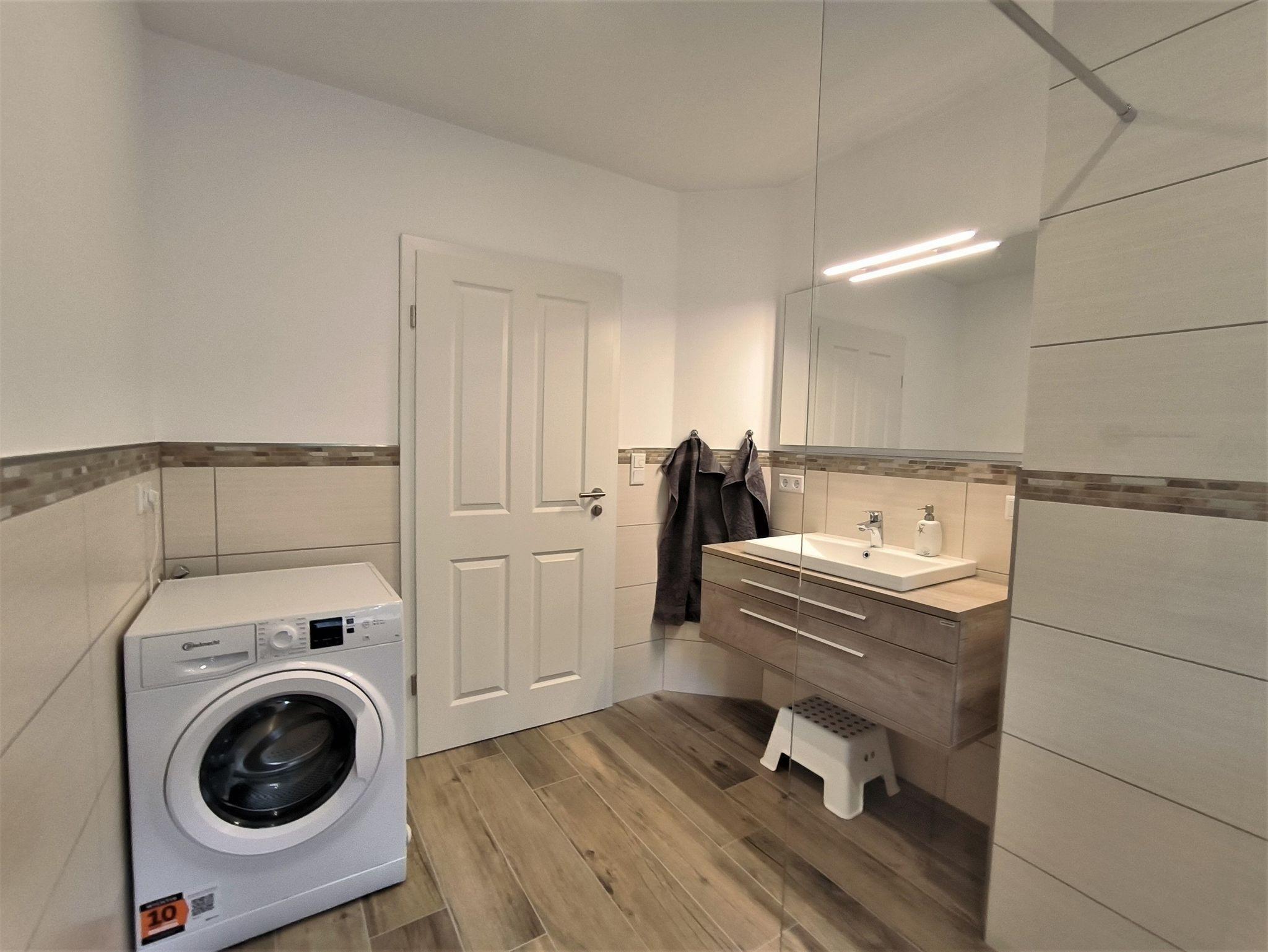 Die Wohnung Grünberg ist 52qm groß und hat ein Schlafzimmer mit Doppelbett, ein modernes Bad mit ebenerdiger Dusche und einen großen Wohn- und Essbereich mit gut ausgestatteter Küchenzeile. Sie ist buchbar für zwei oder drei Personen (ein Schlafplatz ist das hochwertige Schlafsofa im Wohn- und Esszimmer).