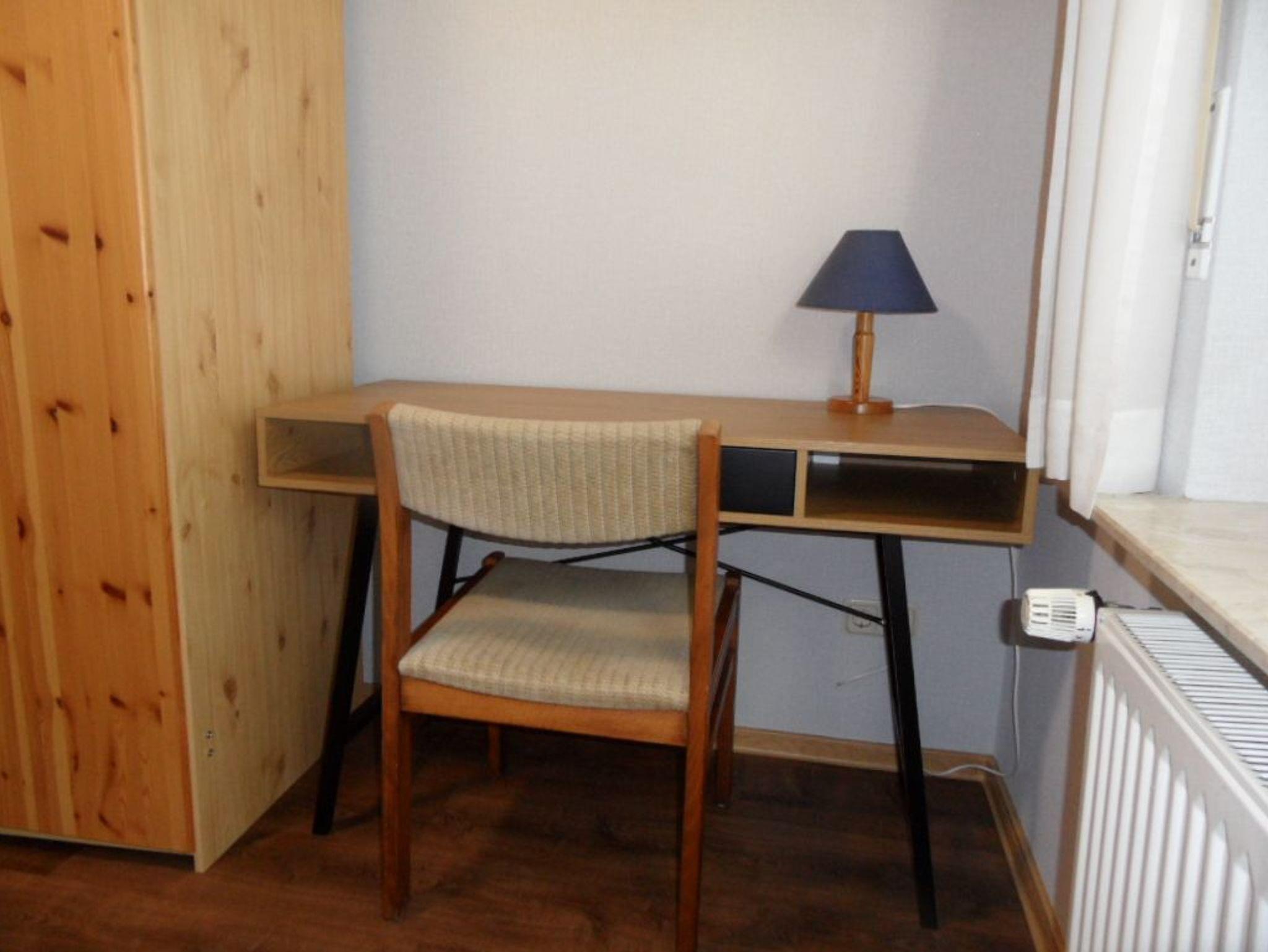 In der 80 qm großen Wohnung kann man im behaglichem Wohnbereich entspannen. Zur Unterhaltung gibt es ein Flachbildschirm-TV, ein DVD Player und ein Radio. Die Wohnküche läd zum gemütlichen Essen ein, und ist ausgestattet mit einem Backofen, Kühlschrank, Wasserkocher, Kaffeemaschine,Toaster, einer Geschirrspülmaschine und vielem mehr. Das Schlafzimmer besteht aus einem Doppelbett und einer Komode. Auch hier ist ein Flachbild- Fernseher vorhanden. Das zweite Schlafzimmer ist mit einem Einzelbett, einem Schreibtisch und einem Schrank ausgestattet. Desweiteren steht Ihnen ein Kinderbett und ein Hochstuhl zur Verfügung. Das Bad bietet eine Dusche, eine Badewanne, ein WC und ein Waschbecken. Zur Wohnung gehört auch eine schöne Terrasse mit vier Stühlen und einem Tisch sowie ein Parkplatz dirket am Haus. Ihre mitgebrachten Fahrräder können untergestellt werden. Ein Spielplatz ist fußläufig erreichbar.