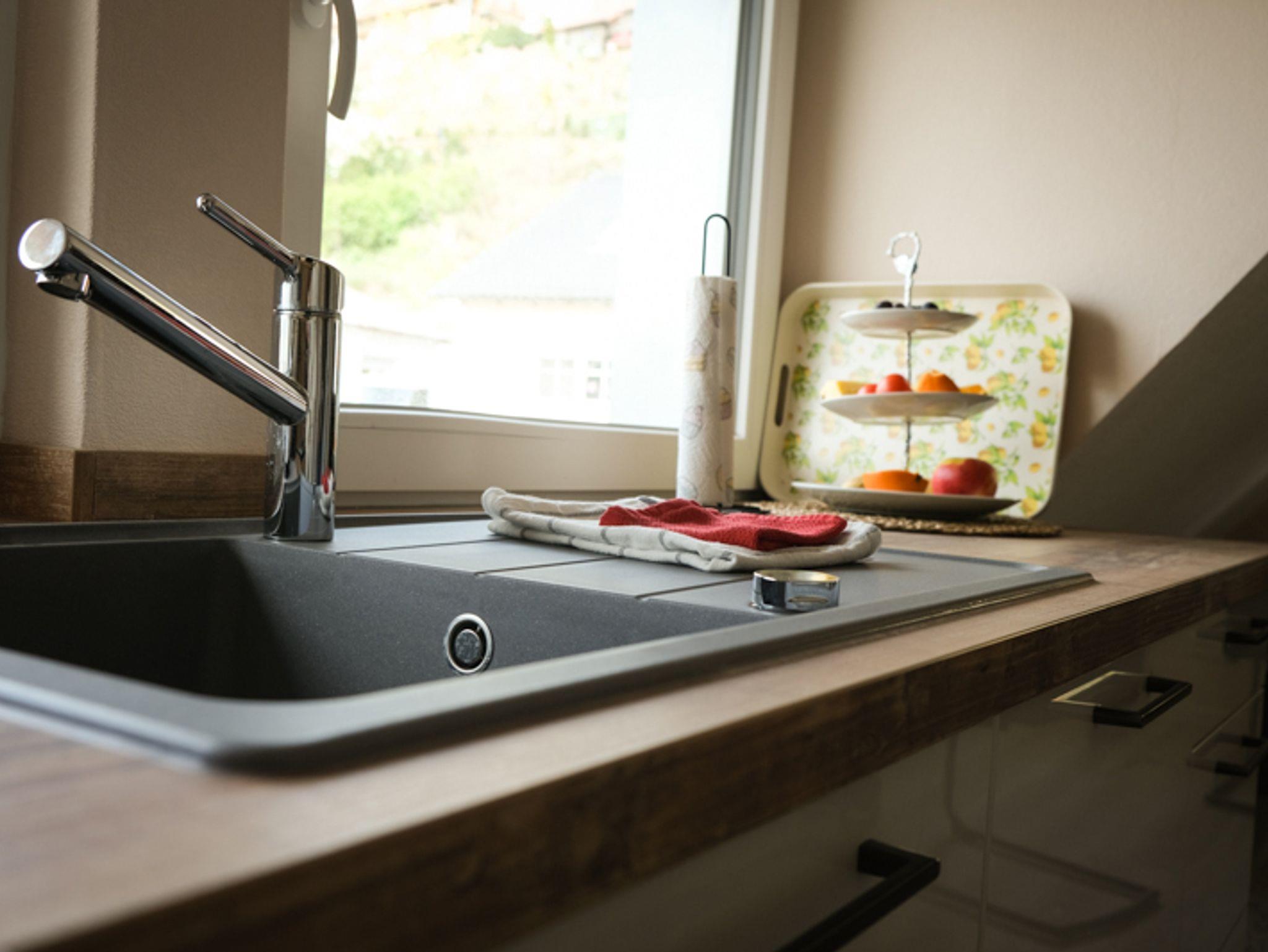 Unsere kernsanierte Ferienwohnung mit 45m² Wohnfläche bietet Platz für 1-4 Personen. Das Highlight der Ferienwohnung ist die 35 m² große Dachterasse mit Talblick auf den Spessart und Odenwald sowie auf das Kloster Engelberg. Das Appartment verfügt über 1 Schlafzimmer mit einem super bequemen Doppelbett, und ein gemütliches Wohnzimmer mit ebenbürtigem Schlafsofa mit extra Komfortmatratzen jeweils mit einem high end Smart TV mit Satelitenfernsehen und Zugang zur Dachterasse. Die komplett ausgestattete Wohnküche mit Geschirrspüler, Kühlschrank inkl. Gefrierfach, Herd, Backofen, Mikrowelle, Wasserkocher, Eierkocher, Toaster und Kaffeemaschine lässt keine Wünsche offen. Das geräumige Badezimmer mit ebenerdiger Rainshower, großem Spiegel, Fön und Handtuchtrockner rundet das Gesamtbild ab. Zum Reinigen Ihrer Kleidung stehen eine Waschmaschine und ein Trockner im Haus zur Verfügung. Vor allem im Sommer können Sie entspannte Grillabende in unserem Garten verbringen. Ein Kinderbett und ein Hochstuhl stellen wir bei Bedarf gerne zur Verfügung. Das WLAN und die Parkplätze vor dem Haus können Sie kostenfrei nutzen.
