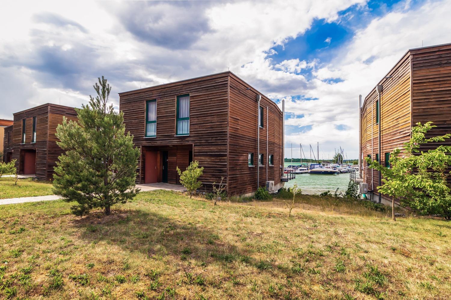 Die komfortablen 14 Hafenhäuser und 23 Dünenhäuser Comfort mit offenem Wohn-/Essbereich, Seeterrasse und Sauna zeichnen sich durch den individuellen architektonischen Charme aus.