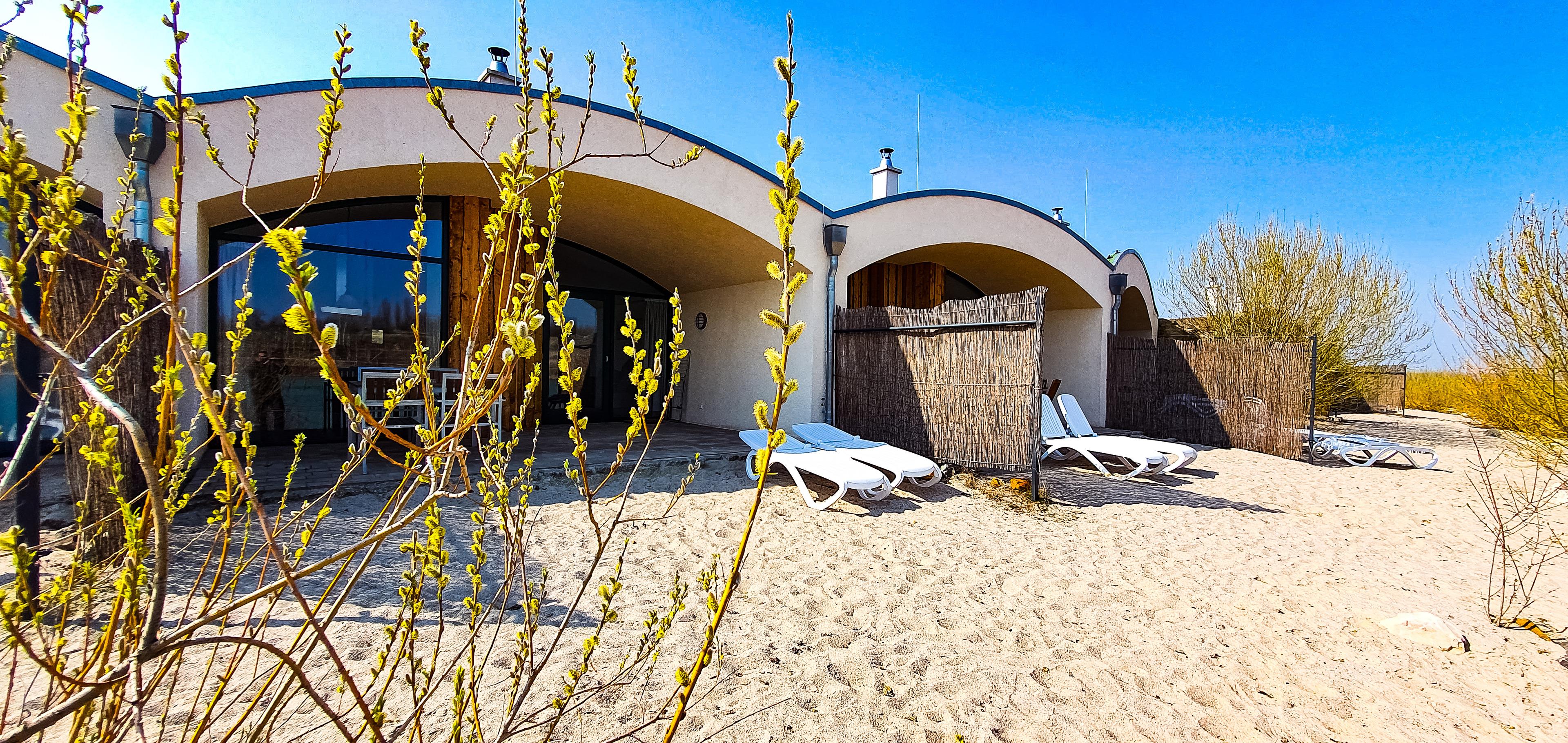 Die komfortablen 14 Hafenhäuser und 23 Dünenhäuser Comfort mit offenem Wohn-/Essbereich, Seeterrasse und Sauna zeichnen sich durch den individuellen architektonischen Charme aus.