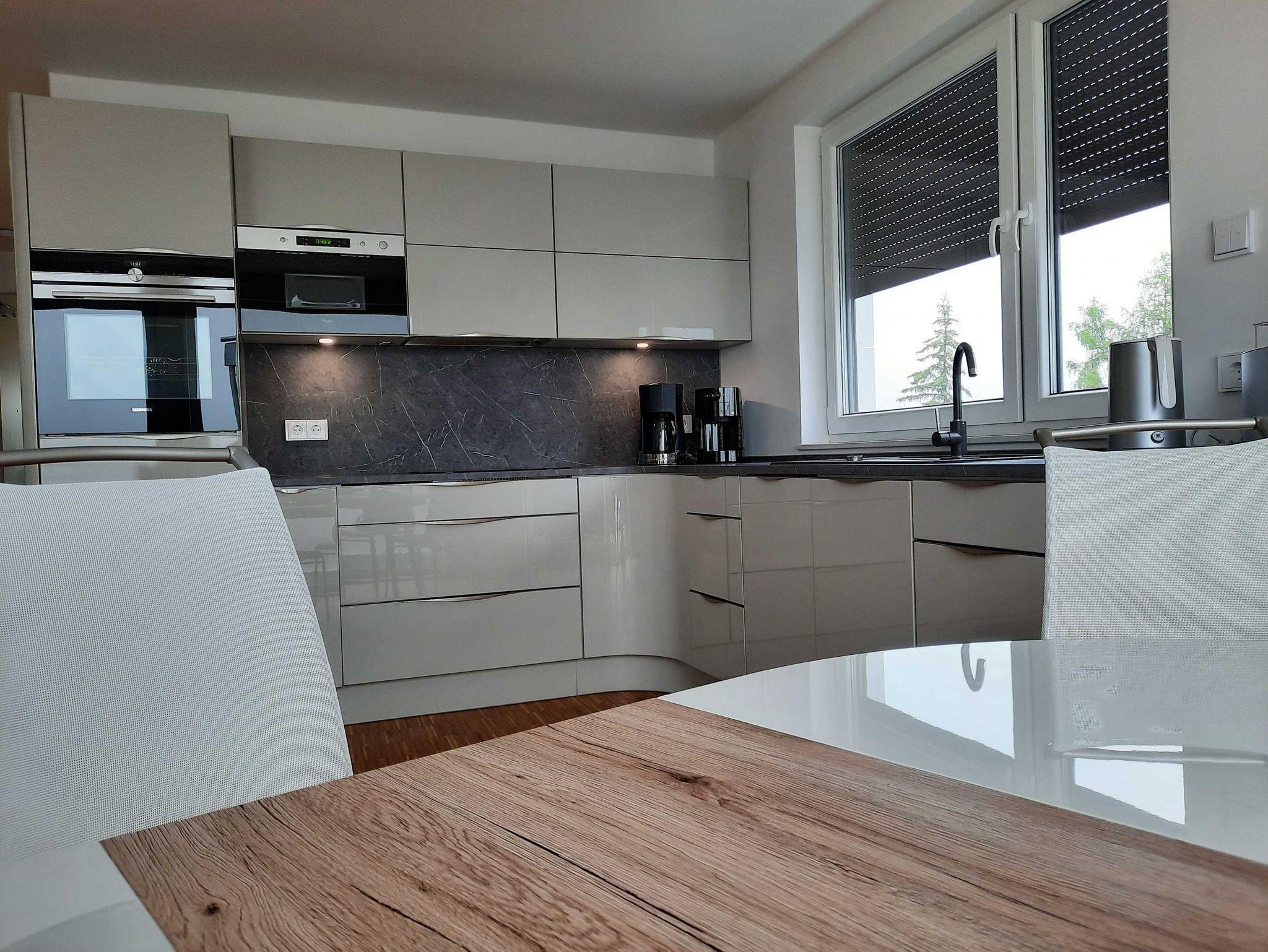 Die neugebaute Ferienwohnung liegt im 2. OG eines Wohnhauses mit Hafenblick. Die Wohnung selbst hat eine Fläche von 65 qm mit einem voll ausgestatteten Wohnbereich inklusive Sat- TV und Soundanlage, Essecke und angrenzendem Balkon. Des weiteren gibt es ein Schlafzimmer mit Doppelbett und Wandschrank ? TV sowie ein modern, gestaltetes Bad mit Wanne und Dusche. Über die Treppe im Flur gelangen Sie in die offene Galerie, von der aus 2 Dachterrassen, als Outdoorbereiche mit Loungemöbeln auf den Gast warten. In der offenen Galerie steht ein Schlafsofa (Liegefläche 2m x 1,30m). Alle Räume verfügen über Fußbodenheizung und Parkett bzw. Fliesen. Die moderne, voll ausgestattete Küche mit Induktionskochfeld, Backofen, Geschirrspüler, Mikrowelle und Kaffeemaschine, lässt keine Wünsche offen. Ein Stellplatz am Haus steht Ihnen zur Verfügung.