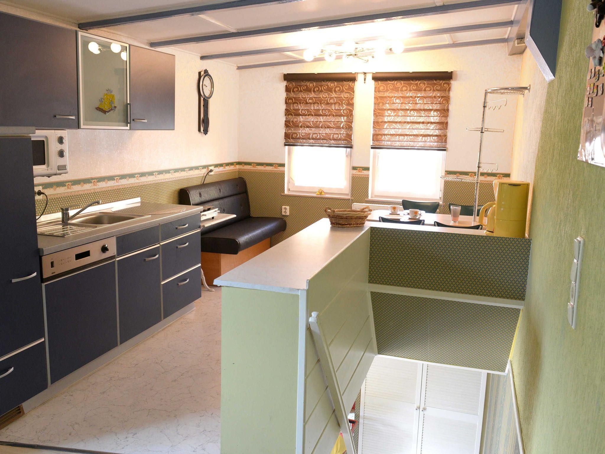 Zweigeschossiges kleines Wohnhaus mit Treppenaufgang. Untere Etage niedrige Deckenhöhe 2.20m - 2.20m. Nichtraucher-Wohnung. Rauchen im Freien möglich. 2 Schlafräume mit je 2 Einzelbetten. Laminat und Fliesen verlegt. Küche mit Spülmaschine und Mikrowelle sowie 2 Induktionsplatten. Sitzgelegenheiten in der Küche und im angrenzenden Wohnbereich. Aufbettung für Kinder möglich.