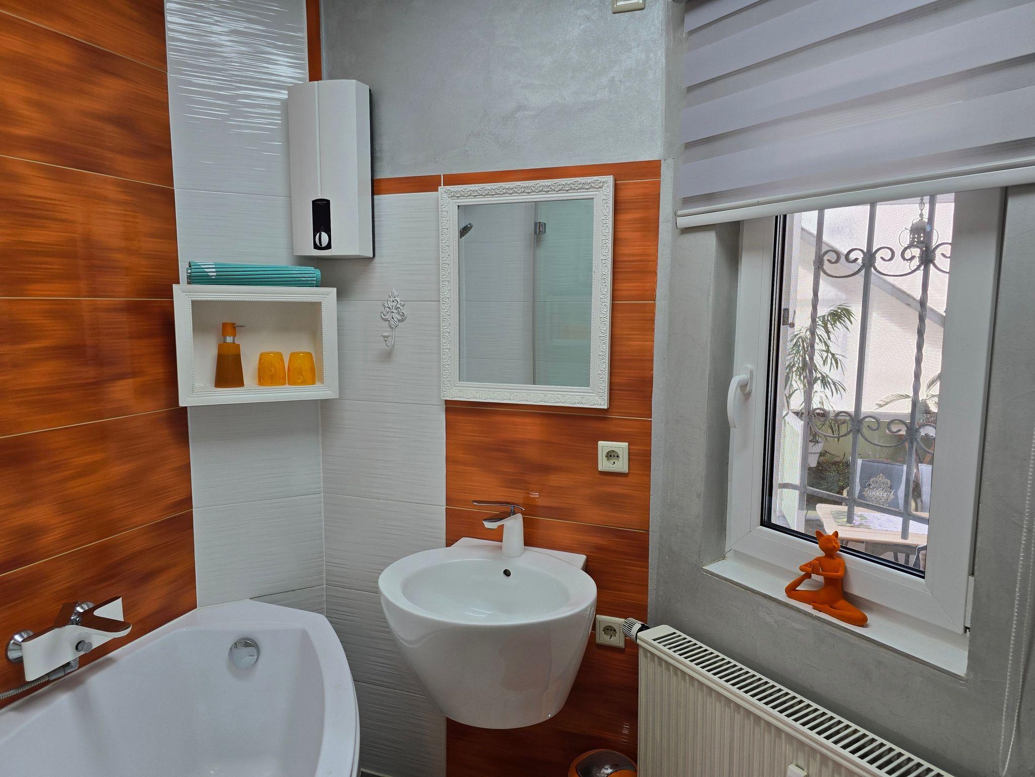 Im Appartment stehen der Schlafraum mit 2 großzügigen Boxspringbetten, ein Wohn-Schlafraum mit Schlafcouch, komplett ausgestattete Küche, ein separates Bad und ein Flur den Gästen zur Verfügung. Die gemütliche Terrasse auf der 1. Ebene kann für entspanntes Verweilen im Freien ebenfalls genutzt werden. Alle Räume im Haus sind Nichtraucherzimmer. Auf der Terrasse steht ein abschließbarer Kühlschrank zur Verfügung.