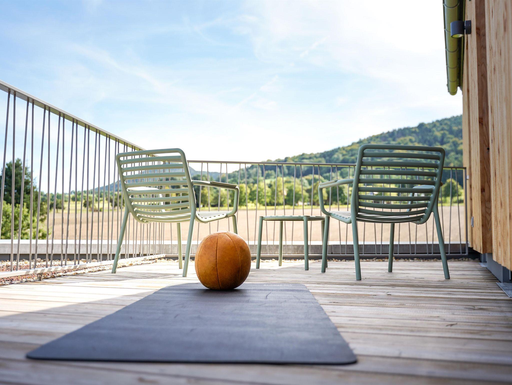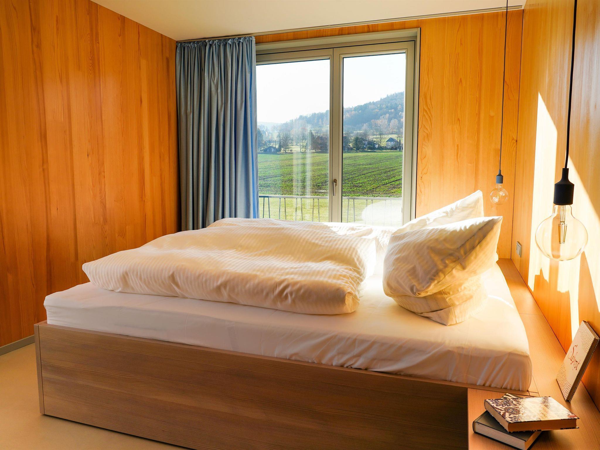 Die Sauna mit Ruheraum im ersten Obergeschoss und mit Zugang zur weiten, sich nach Süden öffnenden Dachterrasse spendet Ihnen den entspannten Ausklang nach einem aktiven Tag. Die Terrasse fängt selbst in den Wintermonaten die Sonne ein und bietet einen ansprechenden Raum, um den Blick auf die umliegenden Felder und Berge zu erleben.