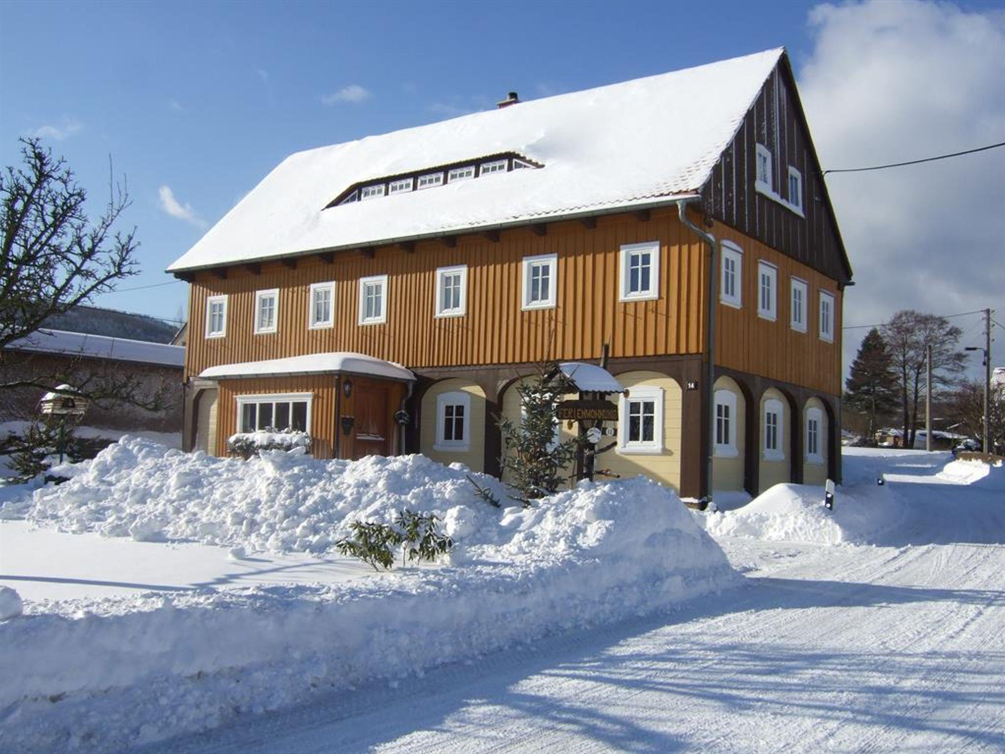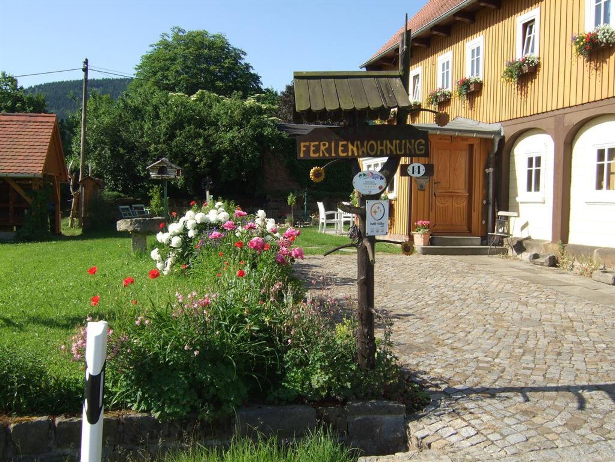 Unseren Gästen steht ein Gemeinschaftsraum zur Verfügung. Frühstück können Sie zubuchen. Der Eingangsbereich unseres Hauses bildet das typische Vorhäuschen im Untergeschoss und ein angrenzender Flur mit Treppe zu Ihrer abgeschlossenen Ferienwohnung. WLAN-Anschluss gibt es im gesamten Haus. Für die Kinder gibt es einen kleinen Spielplatz im Garten. Fahrräder und Schlitten können kostenfrei ausgeliehen werden. PKW Parkplätze sind auf dem Grundstück, Garagenstellplatz zubuchbar. Unser besonderer Service: am Morgen frische Bäckerbrötchen an der Tür, Getränkeservice im Haus, Honig vom Hobby-Imker, hausgemachte Marmeladen, frische Eier von unseren Hühnern (Preise nach Angebot). Herzlich Willkommen in Ihrem Urlaubszuhause!