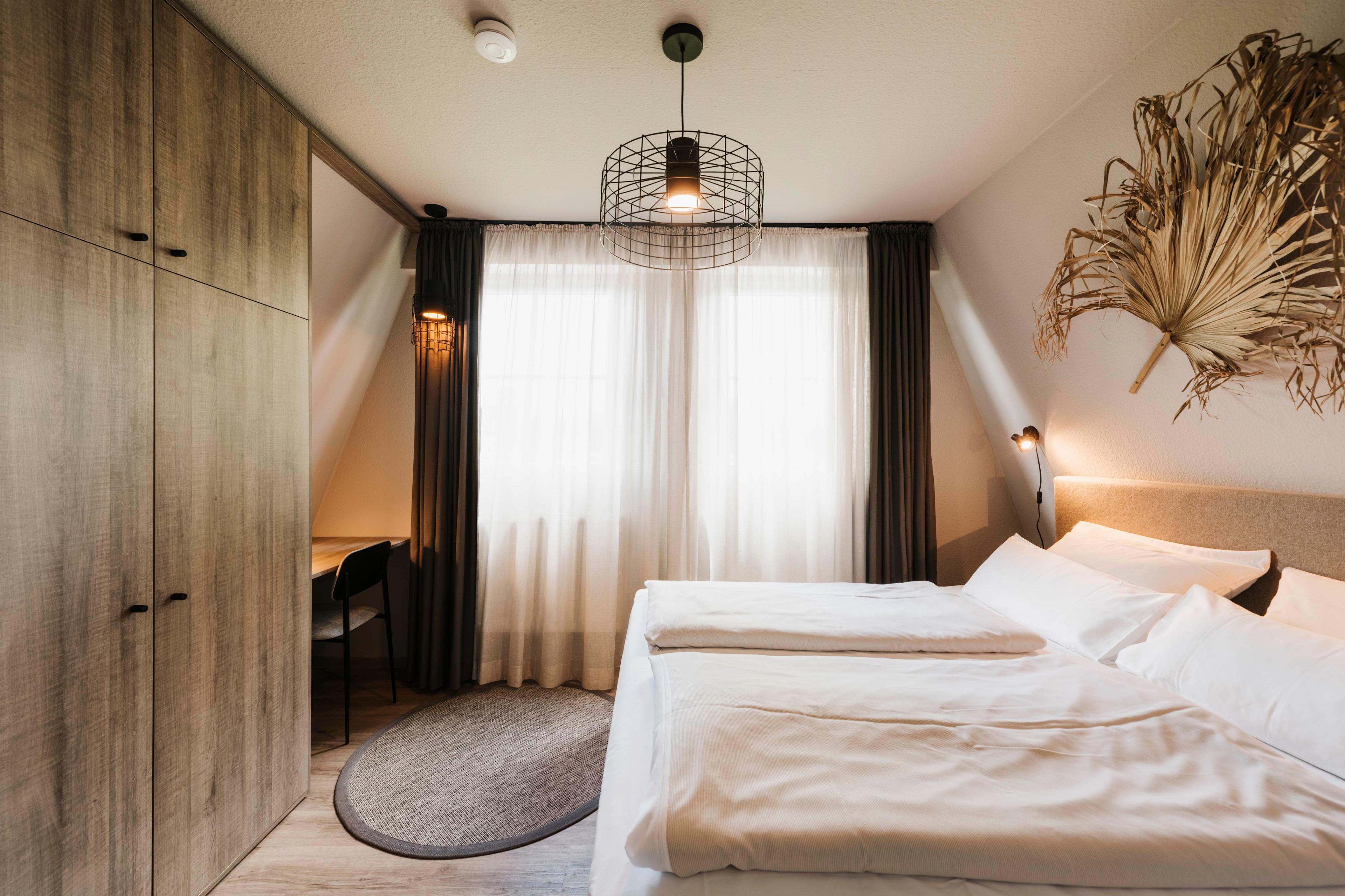 Unsere 3 Appartements im Obergeschoss sind ruhig gelegen, direkt neben dem Restaurant in unseren vier Nurdachhäusern und über eine Außentreppe zu erreichen. Die Ferienwohnungen mit ihren 55qm verteilt auf 2 Etagen bietet Platz für bis zu 4 Personen. Von hier aus haben Sie außerdem einen direkten Zugang zum Dreiländersee. Unsere Ferienwohnungen sind ausgestattet mit einem kleinen Bad mit Dusche, einem getrennten Wohnbereich mit voll ausgestatteter Küchenzeile, ein Schlafzimmer mit Doppelbett und 2 zusätzlichen Einzelbetten in der 2. Etage.