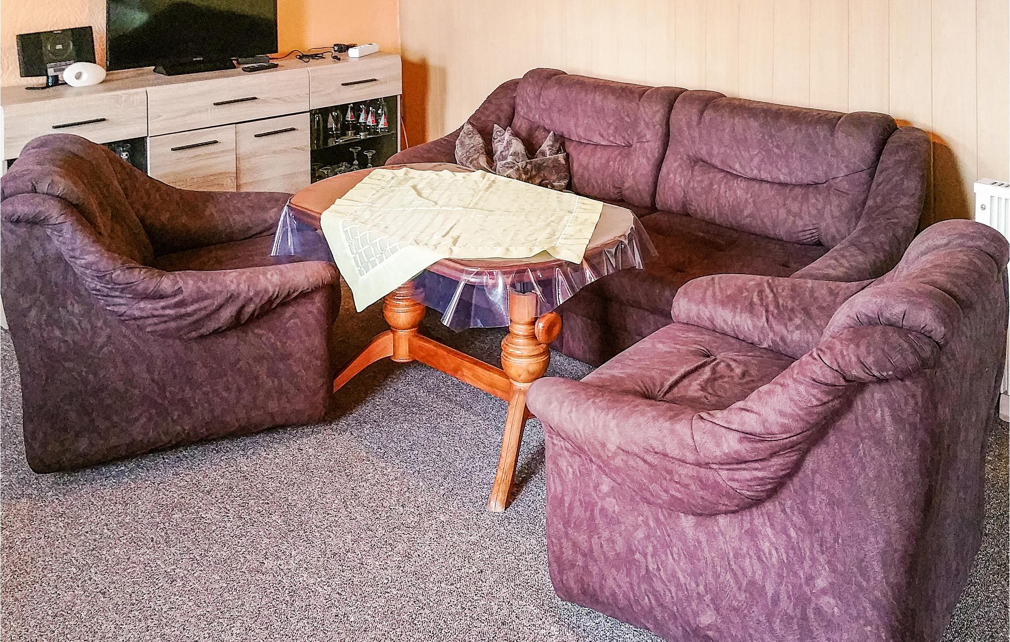 Stuen, der integrerer et praktisk udstyret køkken, er komfortabelt møbleret og har en pejs, der udstråler en hyggelig varme selv på køligere dage. Siddepladserne i stuen kan konverteres til en sovesofa til yderligere to gæster. Ved siden af ??stuen er der et soveværelse med to enkeltsenge, og det lyse badeværelse har et brusebad.