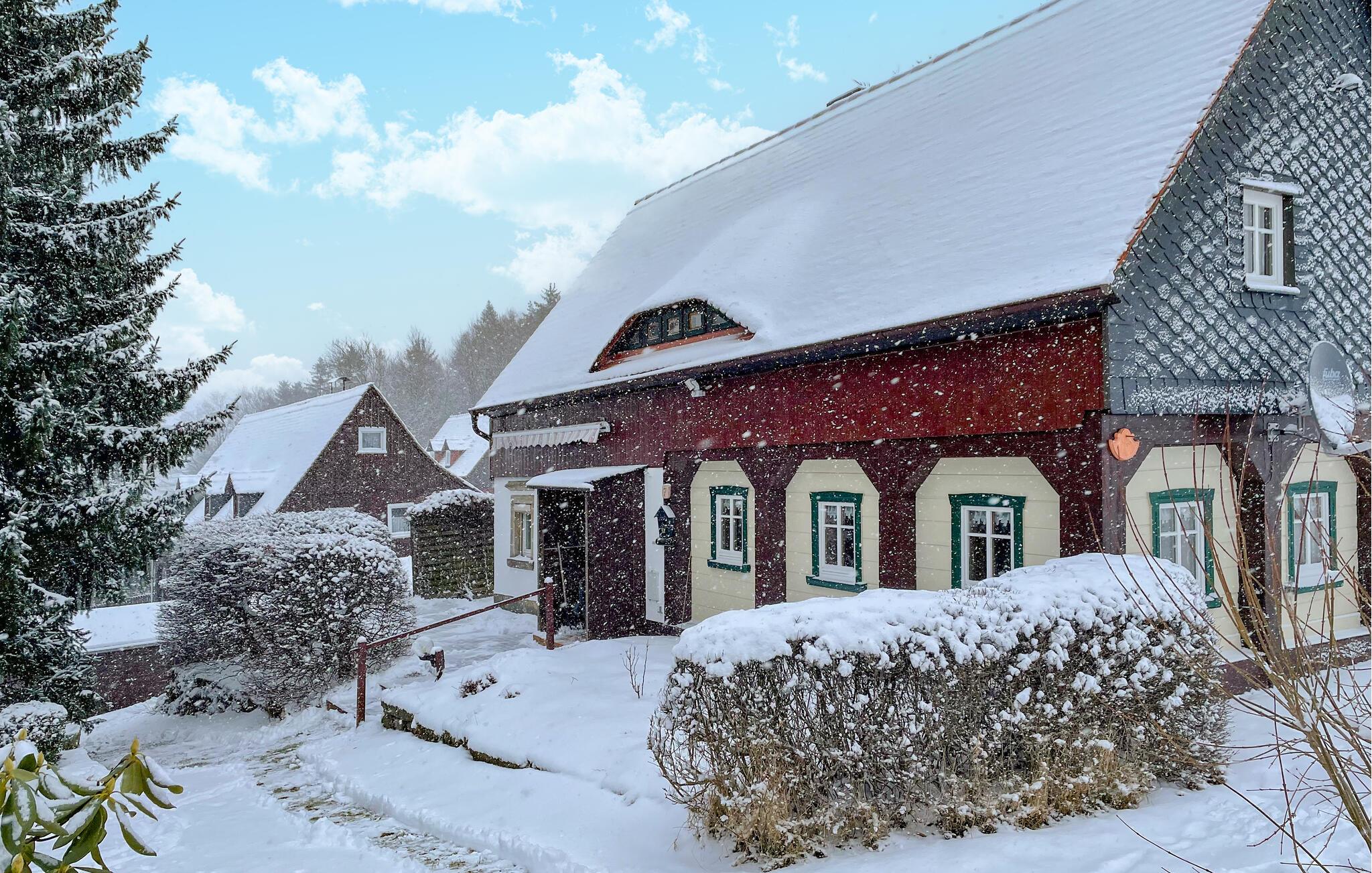 Velkommen til dette rummelige og traditionelle feriehus, der ligger i bjergene tæt på grænsen til Tjekkiet. Huset er indrettet med et vellykket mix af rustikke og moderne elementer; interiøret prydes af træ i store dele af huset, og kakkelovnen giver hygge og varme på de lidt køligere dage. Faciliteterne er ganske tidssvarende, særligt i køkkenet, der er rummeligt og veludstyret, så I kan gøre madlavningen til det hyggeligt fællesprojekt efter dagens vandreture. Efter aftensmaden kan I trække ind i sofaen med brætspil eller en god film, mens I lægger planer for de kommende dage.