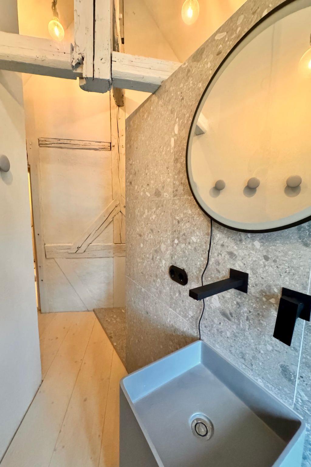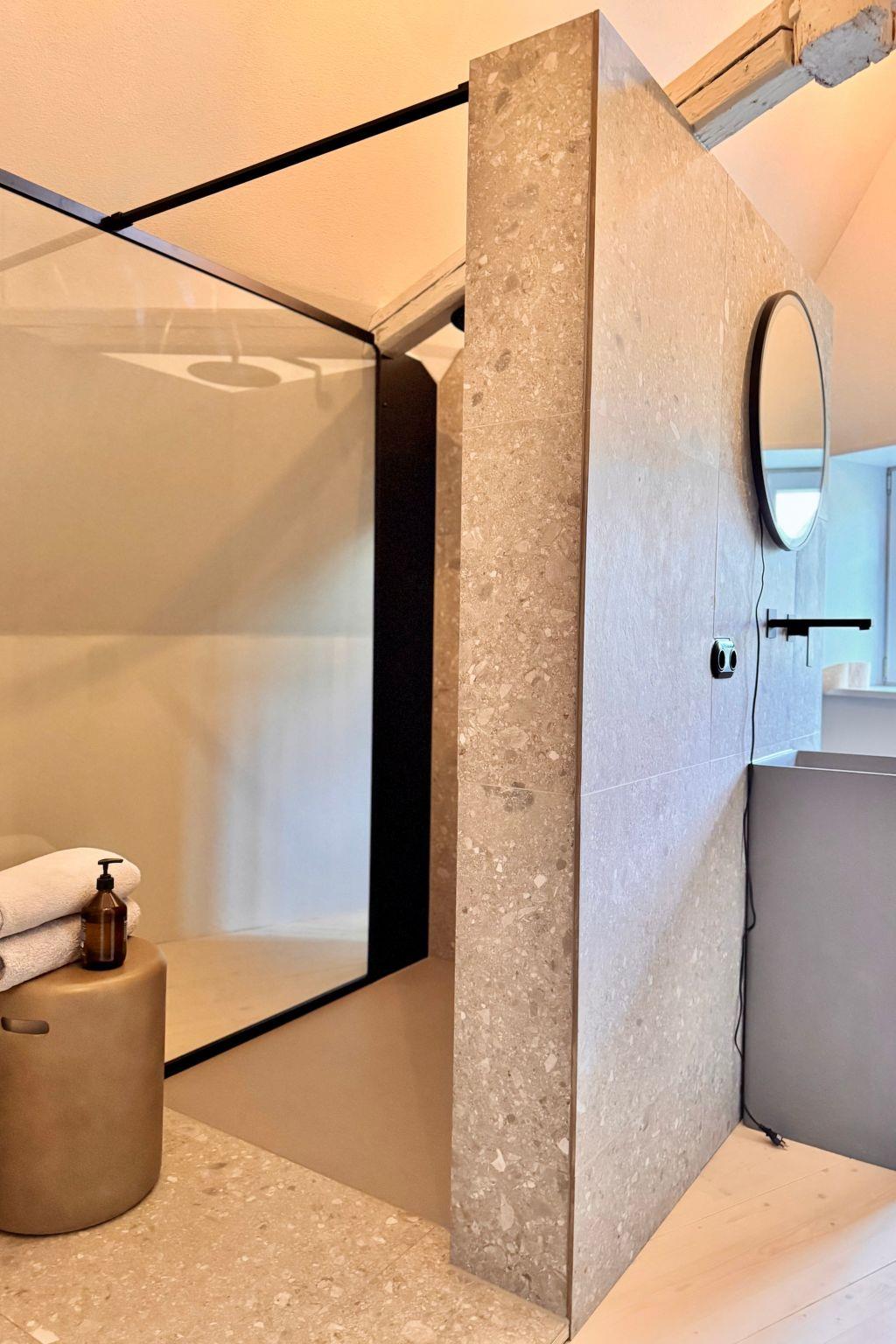 The listed Umgebindehaus from 1786 is characterised by a high-quality interior with wooden floors, natural stone and modern furniture, which create a warm and inviting atmosphere. The bedrooms are equipped with comfortable beds and fluffy bed linen to ensure that you can relax after an eventful day. The bathroom has a modern design and is equipped with a shower, hairdryer and high-quality sanitary facilities.
