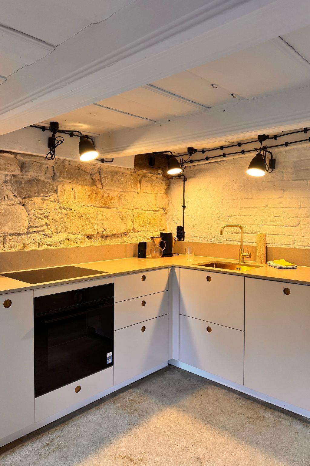 Note: The ceiling height in the kitchen and parlour corresponds to the age of the house, as does the incline of the stairs