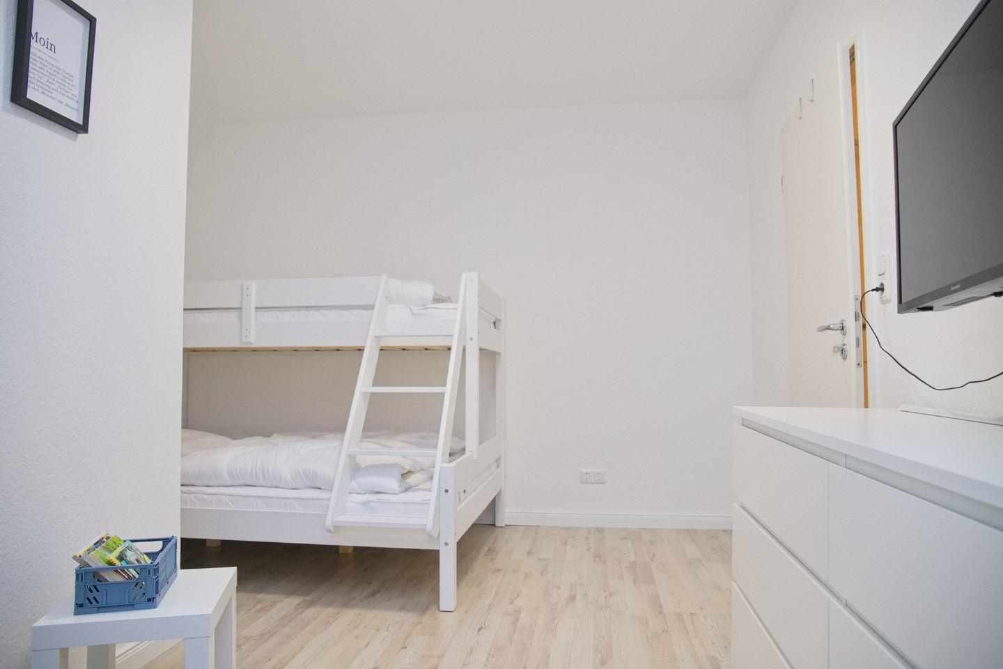 Die Wohnung ist hell und freundlich gestaltet und verfügt über ein gemütliches Wohnzimmer mit Laminatboden, das zum Entspannen einlädt. Mit zwei Fernseher in der Wohnung können Sie nach einem aktiven Tag am Strand oder nach einem aufregenden Ausflug in die Umgebung auf der Couch relaxen und Ihre Lieblingssendungen genießen. Die voll ausgestattete Küche mit einem Backofen, einer Spülmaschine sowie Geschirr und Besteck lässt keine Wünsche offen. Ob Sie eine schnelle Mahlzeit zubereiten oder ein ausgedehntes Abendessen mit Ihren Liebsten genießen möchten, hier sind Sie bestens versorgt.
