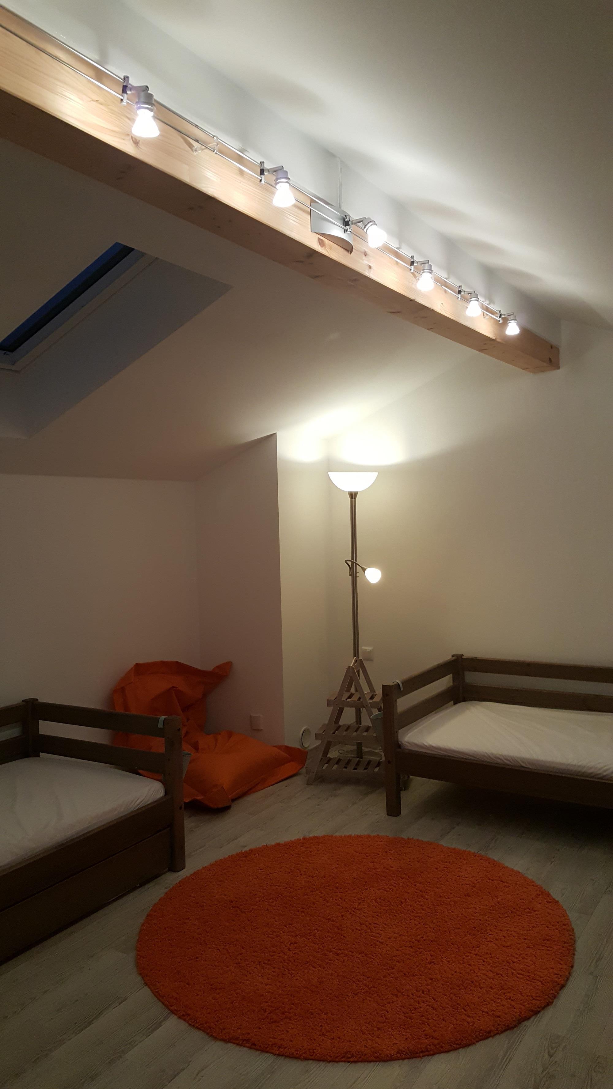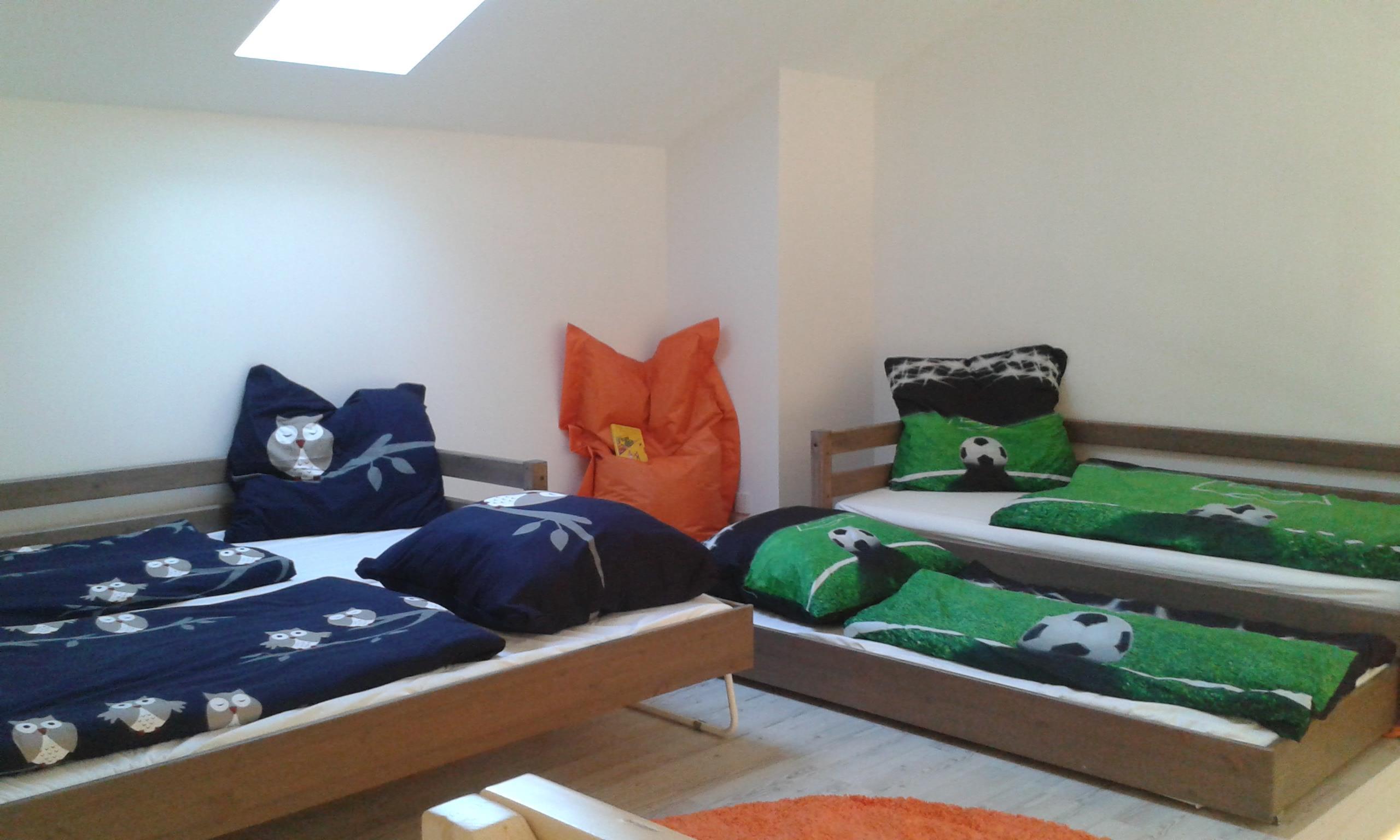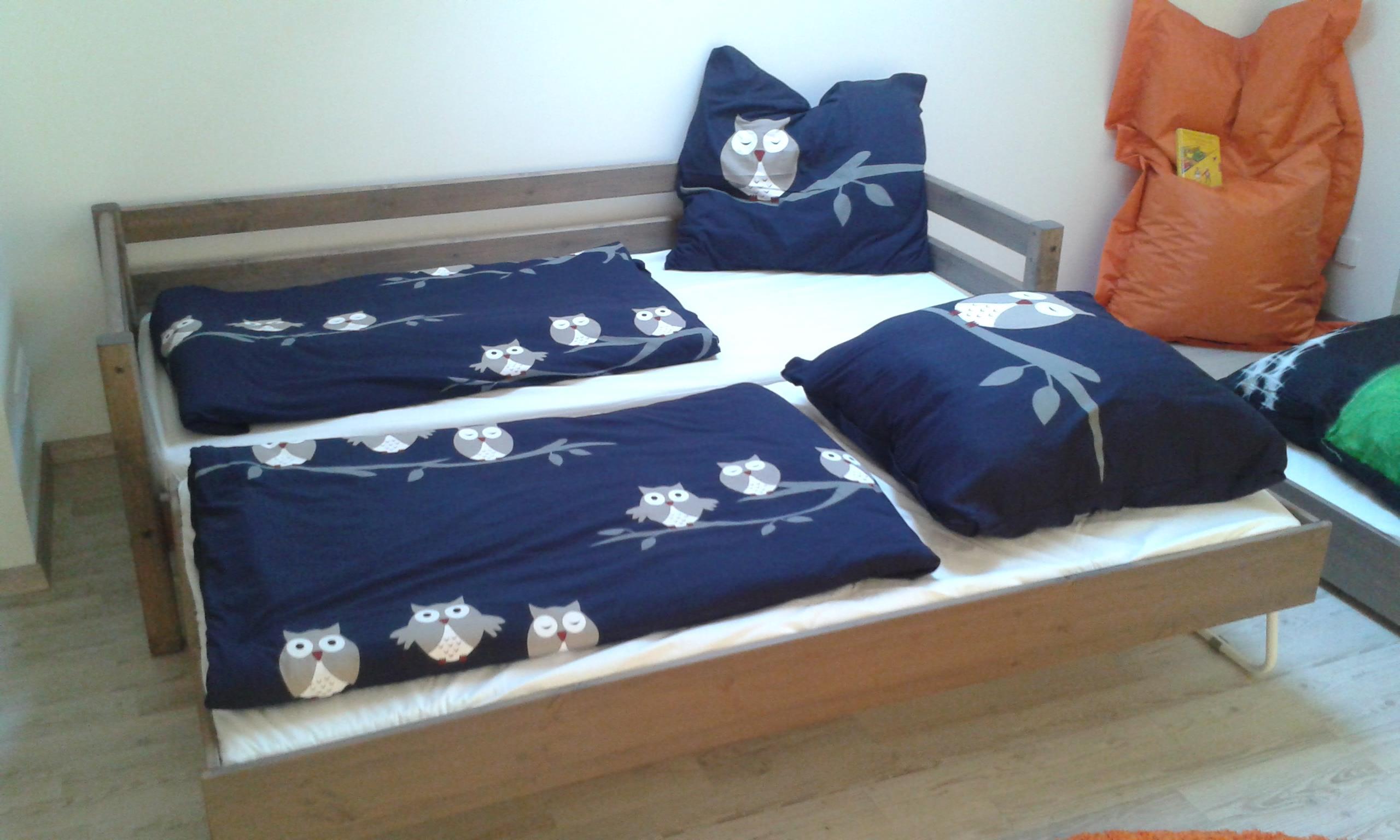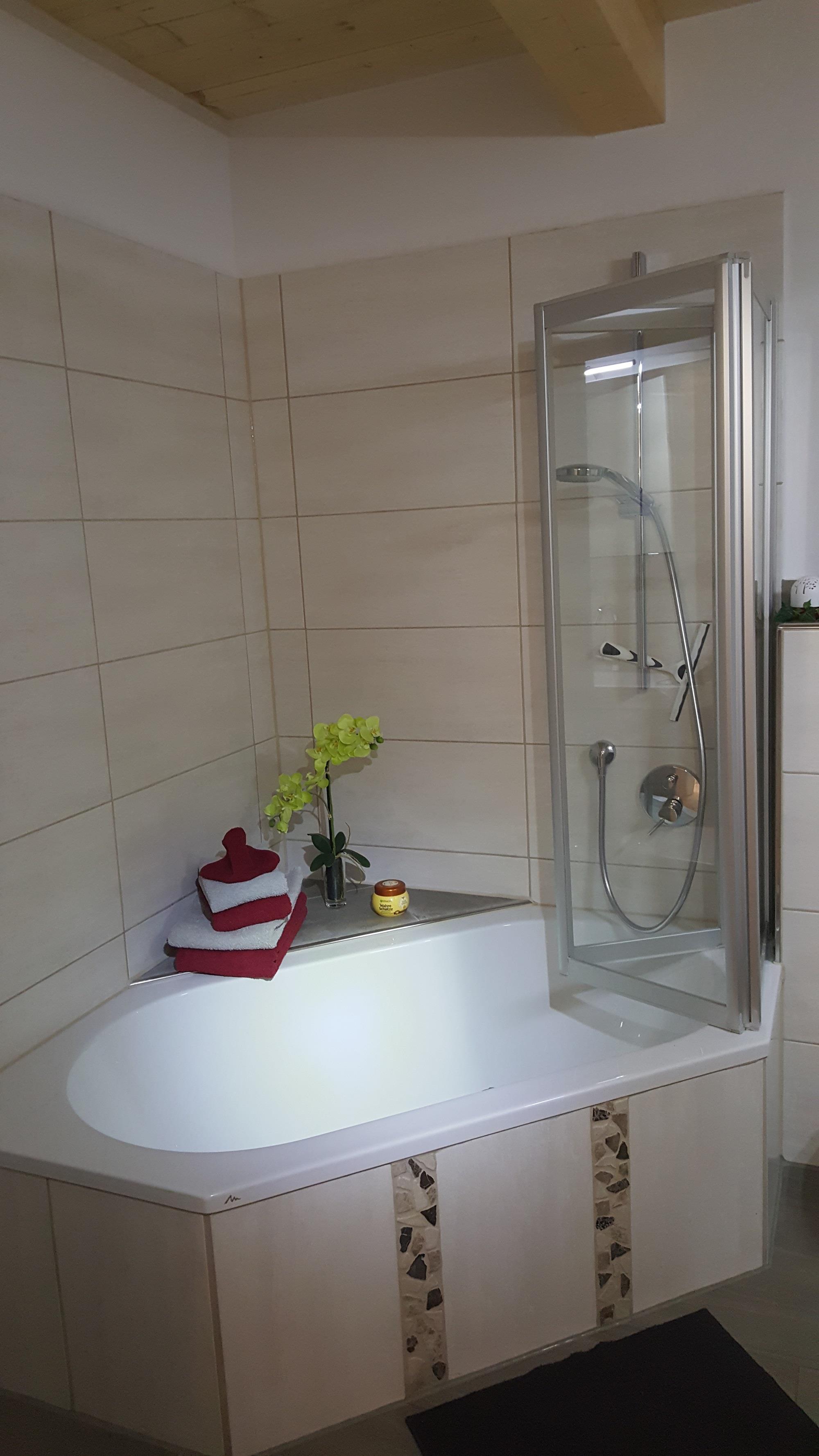 Our lovingly and modernly furnished vacation apartment ChiemseeZeit is on the second floor and offers on 90sqm space for 2 to 8 people, which also all find space on the great and new balcony. In the bedroom they sleep in the 180x200cm large double bed on high-quality cold foam mattresses. The children's room on the open gallery has 4 beds, (2 with 90x200cm + 2 with 90*190cm), in which also 4 adults can sleep. In our individually designed bathroom/WC you will find a large corner bathtub with real glass - shower wall. In the kitchen, in addition to the usual electrical appliances is a Senseo Switch coffee maker for pad and filter. You can sit either at the counter, at the large dining table with solid wood benches, quite comfortable on the large corner couch made of luxury microfiber, or - brand new - on our large larch wood - balcony. There you also have your kids playing on the lawn in view, and so you can relax and end the day with a view of the mountains and lake. We have laid high-quality laminate and tile floors, so that even the allergy sufferers among you can breathe easy. Of course, towels and bed linen, as well as LAN and WLAN are free of charge.