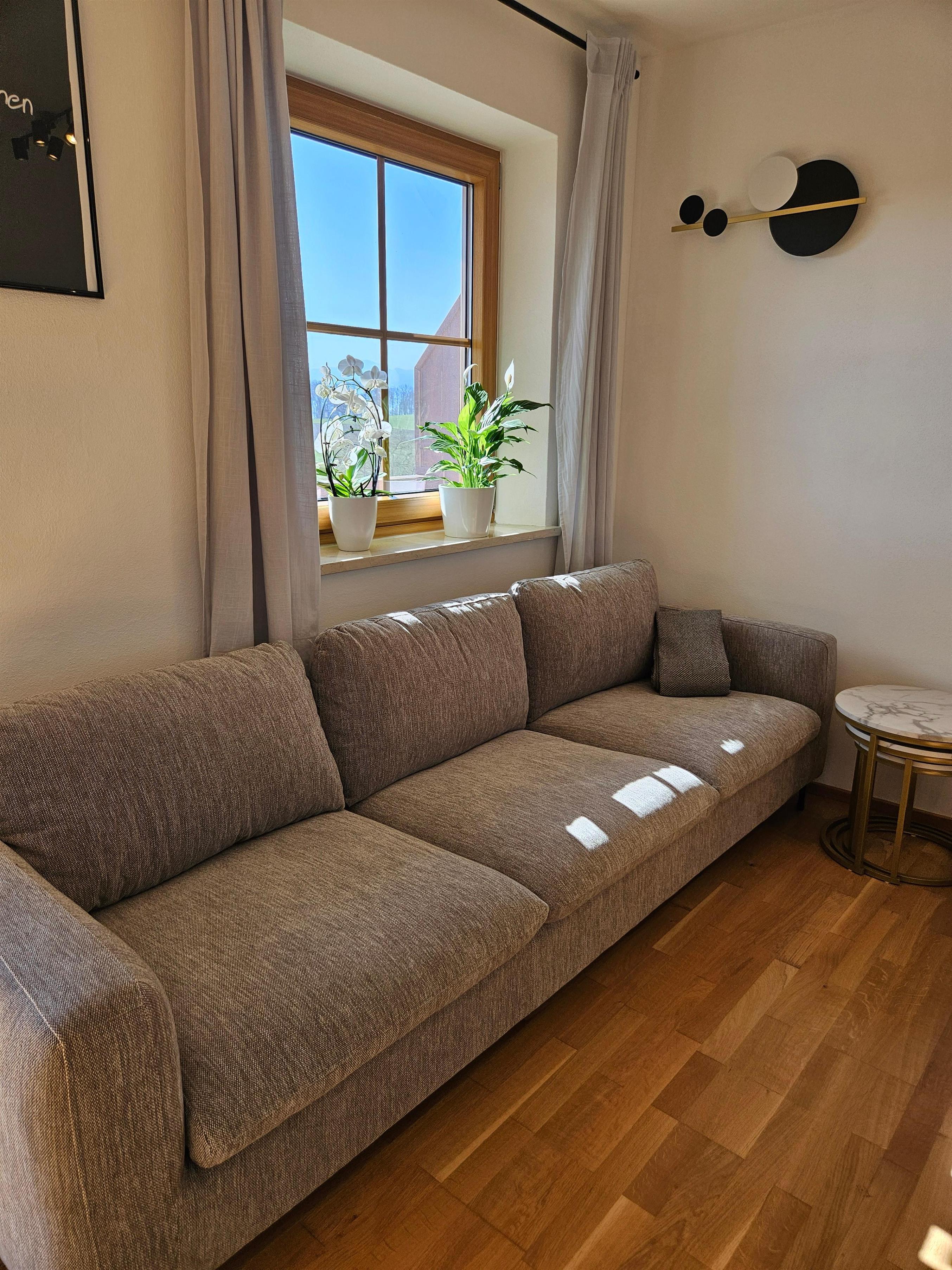 Die im Winter 24/25 umgebaute Ferienwohnung im 2. OG misst 55qm und verfügt über einen Eingangsbereich, ein Bad mit Dusche & WC und über 2 getrennte Schlafzimmer. Ein Schlafzimmer ist ausgestattet mit einem erhöhten Doppelbett, das zweite Schlafzimmer verfügt über zwei Einzelbetten. Außerdem ist ein toller Wohnraum mit Küche entstanden. Dieser ist eingerichtet mit einer äußerst hochwertigen, modernen und sehr gut ausgestatteten Küche, einen schönen Essbereich sowie einer Couch & TV. Vom Wohnraum aus gelangt man auf den großen, möblierten Ost-Balkon mit einem wunderschönen Blick in den Garten und die Chiemgauer Berge. Die Ferienwohnung ist außerdem mit W-Lan, Spülmaschine, Induktionskochfeld mit Dunstabzug, Backofen, Kaffeemaschine, Wasserkocher, Toaster, Handrührgerät und DAB-Radio mit CD-Player ausgestattet. Eine Allergikerbetten sind auf Wunsch verfügbar. Die Schlafzimmer-Möbel und der Essbereich sind aus heimischen Massivholz gefertigt.