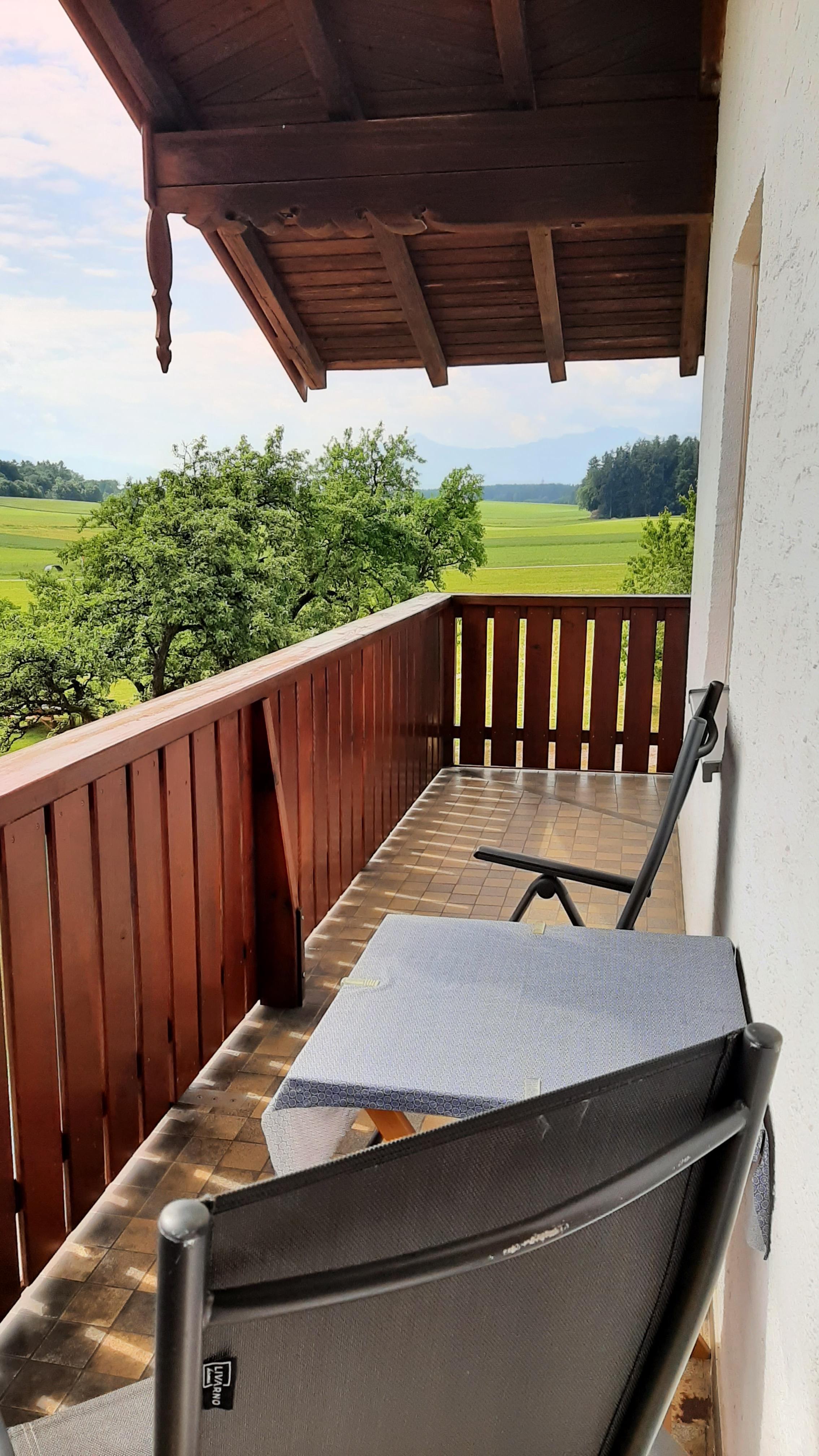 Die hochwertige Ferienwohnung wurde im Winter 22/23 umgebaut und renoviert. Sie liegt im 2. OG des Haupthauses und verfügt über einen Eingangsbereich, eine neue sehr hochwertige Küche mit Essbereich und Sat-TV, ein neues Bad mit großer Dusche und WC, zwei getrennte Schlafzimmer mit erhöhten Doppelbetten. Außerdem gehört ein sehr großer möblierter Süd-Ostbalkon mit freiem Blick auf die Chiemgauer Berge dazu. Die Ferienwohnung ist mit einer Spülmaschine, Induktionsherd, Backofen, Dunstabzug, Kaffeemaschine, Wasserkocher, Toaster, Mixer, DAB-Radio mit CD-Player und W-Lan ausgestattet. Eine Kleinkinderausstattung und Allergikerbetten sind auf Wunsch verfügbar.