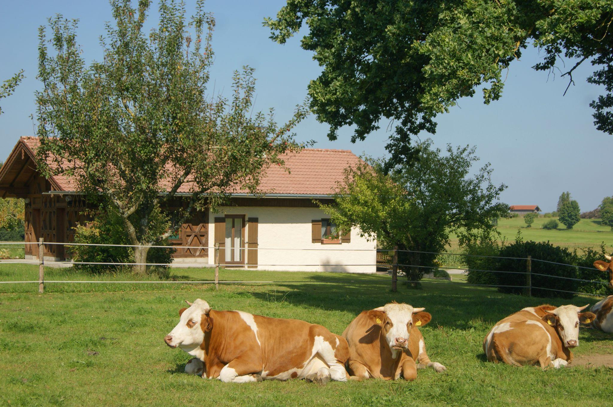 Ferienhäuschen in sehr ruhiger Lage, wie auf einer Alm, Große Terasse, Liegewiese, Grillplatz mit Blick zu den Bergen, Weidetiere um das Ferienhäuschen, in der nähe vom Wald, Rad- und Wanderwege, zu Fuß 10 Min. zum See.Stellplätze für Pkw und abschließbare Einstellmöglichkeit für Fahrräder, Freies W-LAN.Ein Häuschen für sich, Ganzjährig buchbar, Nichtraucherhaus, rauchen im Außenbereich erlaubt.