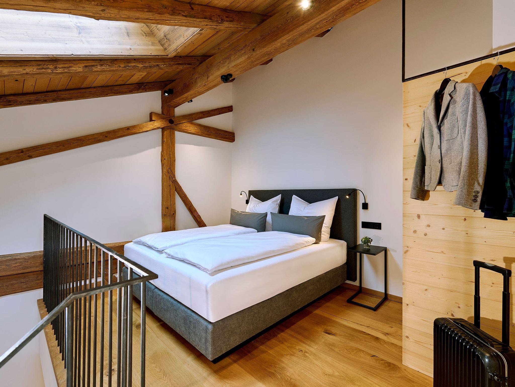 • 1 Schlafzimmer im Dachgeschoss mit Doppelbett
