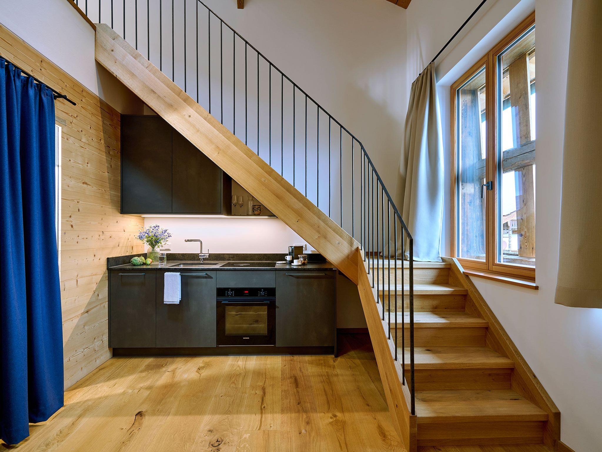 Früher haben die Schwalben bevorzugt oberhalb des Bundwerks über dem Gewölbestall auf dem Moierhof Gstadt ihre Nester errichtet. Heute möchten wir Euch in unserer dort mit allem Komfort eingebauten 5-Sterne-Luxus-Ferienwohnung „Schwalbennest“ das Gefühl der „Nest-Wärme“ und „Vogel-Freiheit“ schenken. Fühlt Euch wie Zuhause in dieser sich über zwei Etagen erstreckenden Ferienwohnung. Bis zu zwei Personen finden hier ein durch das verbaute Echtholz äußerst behagliches Ambiente mit viel Liebe zum Detail. Das großzügige moderne Badezimmer und das separate WC sorgen für zusätzlichen Komfort – durchdacht gestaltet für entspannte Urlaubstage.