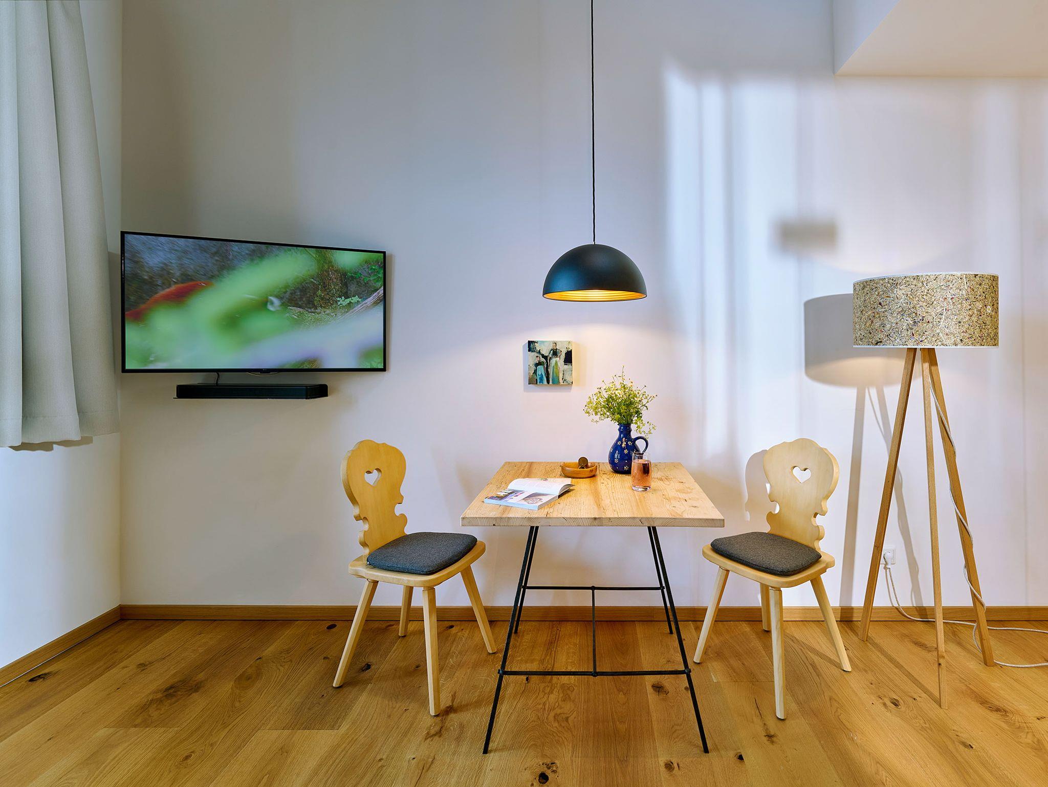 Solltet Ihr dringende Büroangelegenheiten erledigen müssen, können wir Euch unseren Seminarraum Moierstubn anbieten. Dieser ist, neben höhenverstellbaren Schreibtischen, mit einem Multifunktionsdisplay mit Kamera für Videokonferenzen ausgestattet. Da wir über eine Glasfaseranbindung verfügen habt ihr auf dem ganzen Hof leistungsstarkes Internet.