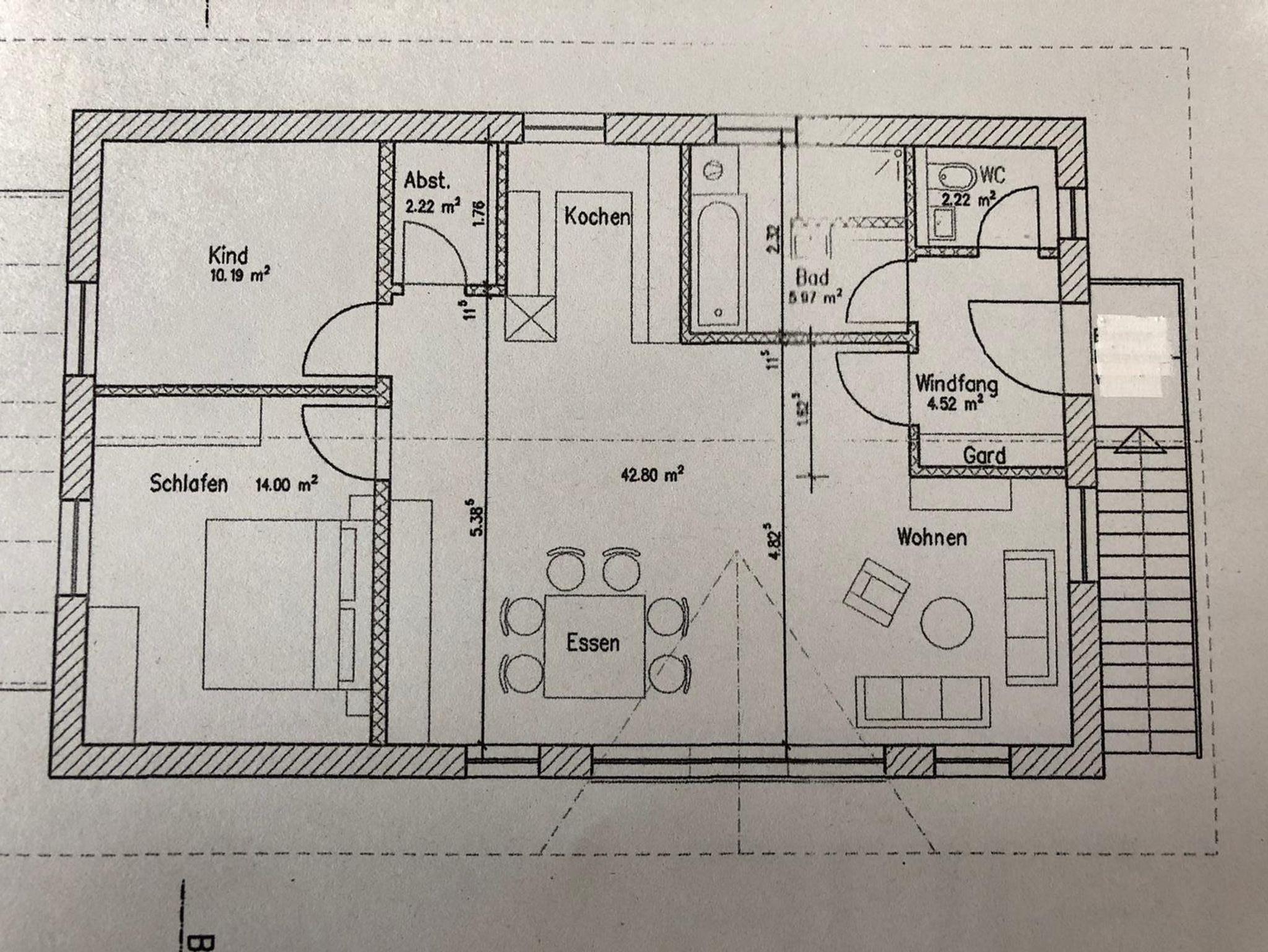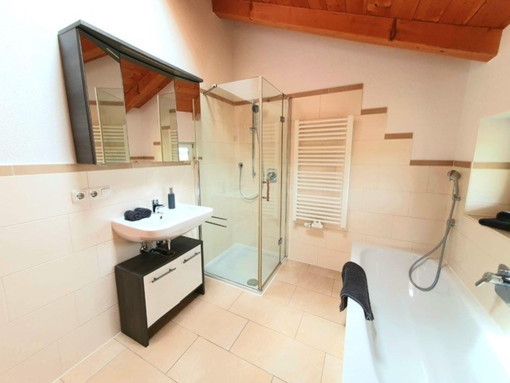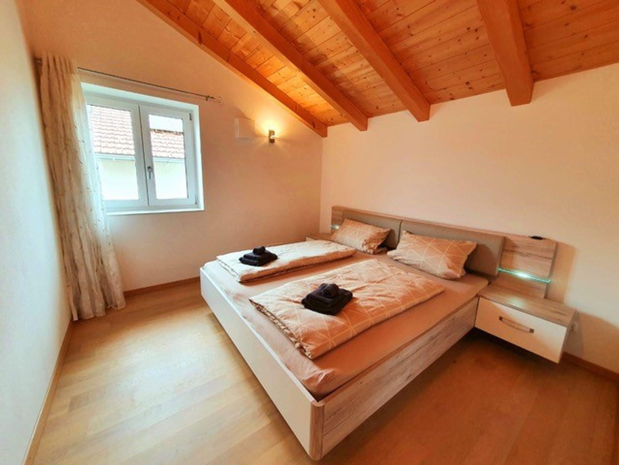 2 separate Schlafzimmer mit Doppelbetten (Zusatzbett für 5. Person auf Anfrage); vollausgestattete Küche mit Spülmaschine und Mikrowelle; großer Wohn-/Essbereich; Bad mit Dusche, WC, Föhn, separates WC; SAT-TV, Wlan, Soundbar