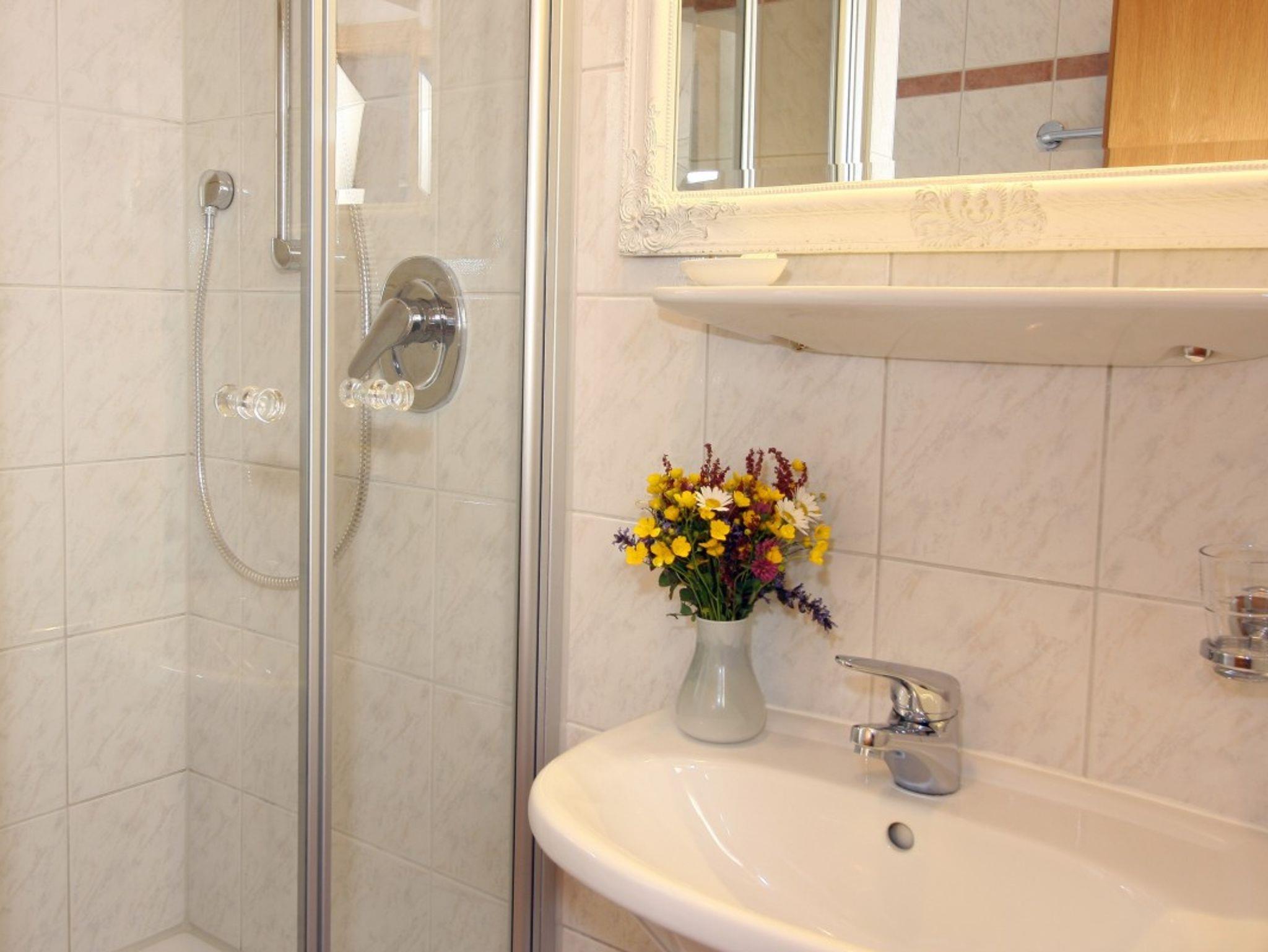 Die komplett renovierte Ferienwohnung Elisabeth hat 45 qm, bietet Platz für 1 bis 2 Personen und besteht aus einem Wohnraum mit Küche und Essecke, einem separaten Schlafzimmer und Dusche mit WC. WLAN ist natürlich kostenfrei verfügbar.