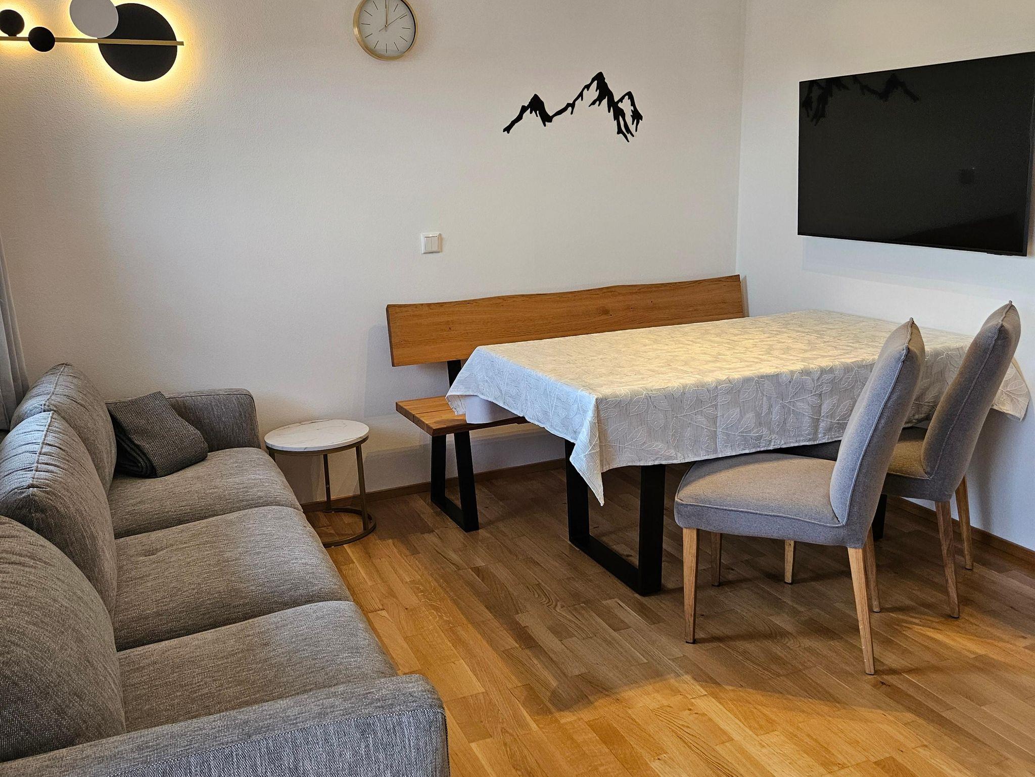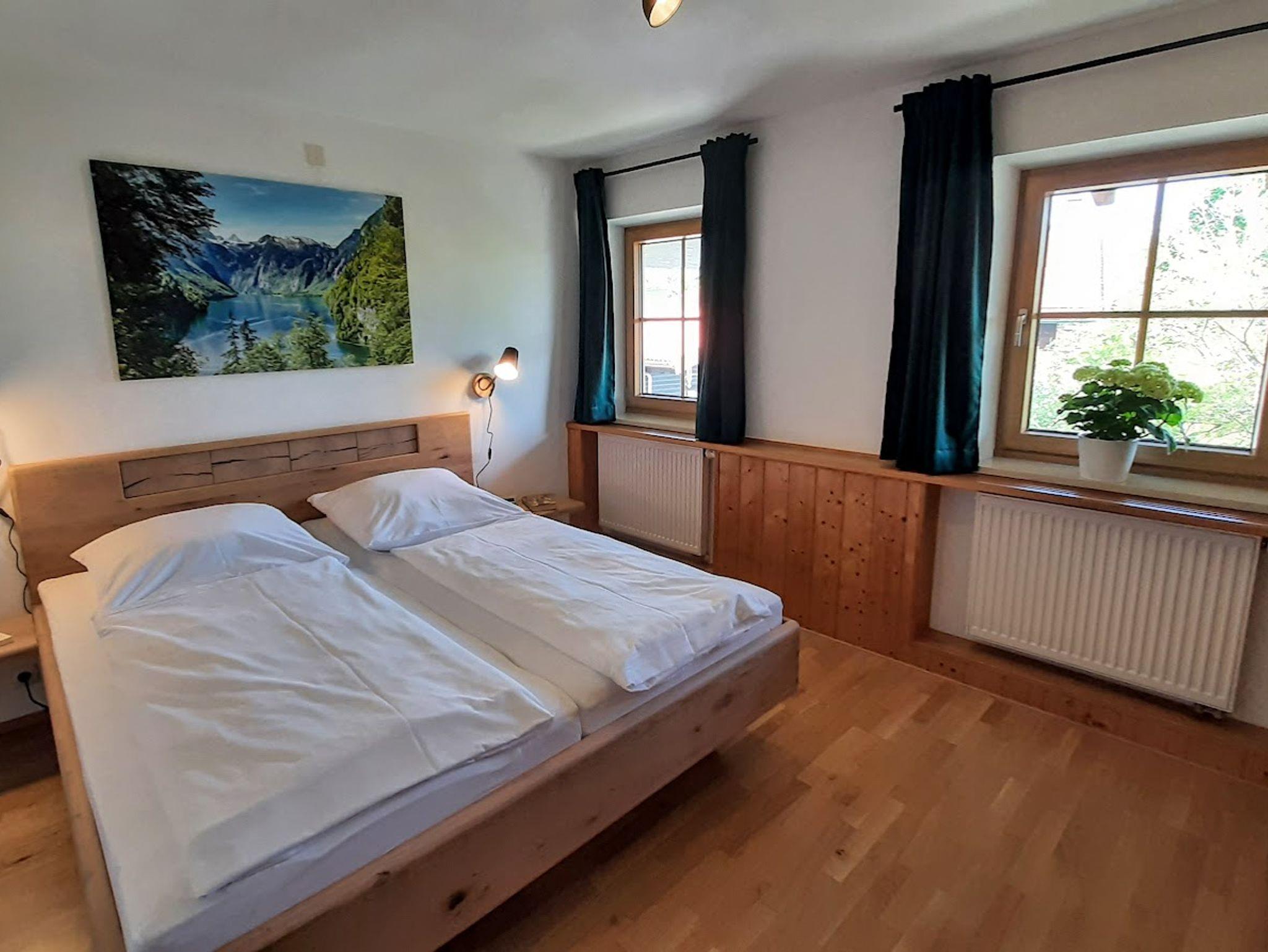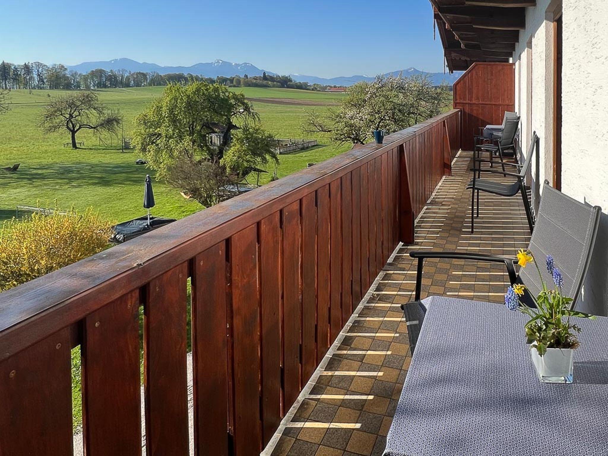 Die im Winter 24/25 umgebaute Ferienwohnung im 2. OG misst 55qm und verfügt über einen Eingangsbereich, ein Bad mit Dusche & WC und über 2 getrennte Schlafzimmer. Ein Schlafzimmer ist ausgestattet mit einem erhöhten Doppelbett, das zweite Schlafzimmer verfügt über zwei Einzelbetten. Außerdem ist ein toller Wohnraum mit Küche entstanden. Dieser ist eingerichtet mit einer äußerst hochwertigen, modernen und sehr gut ausgestatteten Küche, einen schönen Essbereich sowie einer Couch & TV. Vom Wohnraum aus gelangt man auf den großen, möblierten Ost-Balkon mit einem wunderschönen Blick in den Garten und die Chiemgauer Berge. Die Ferienwohnung ist außerdem mit W-Lan, Spülmaschine, Induktionskochfeld mit Dunstabzug, Backofen, Kaffeemaschine, Wasserkocher, Toaster, Handrührgerät und DAB-Radio mit CD-Player ausgestattet. Eine Allergikerbetten sind auf Wunsch verfügbar. Die Schlafzimmer-Möbel und der Essbereich sind aus heimischen Massivholz gefertigt.