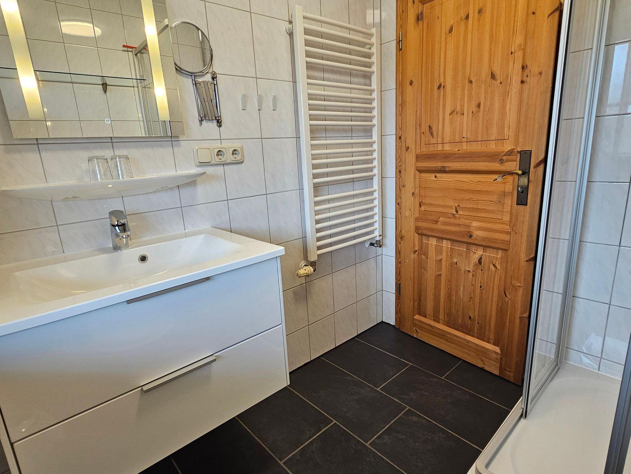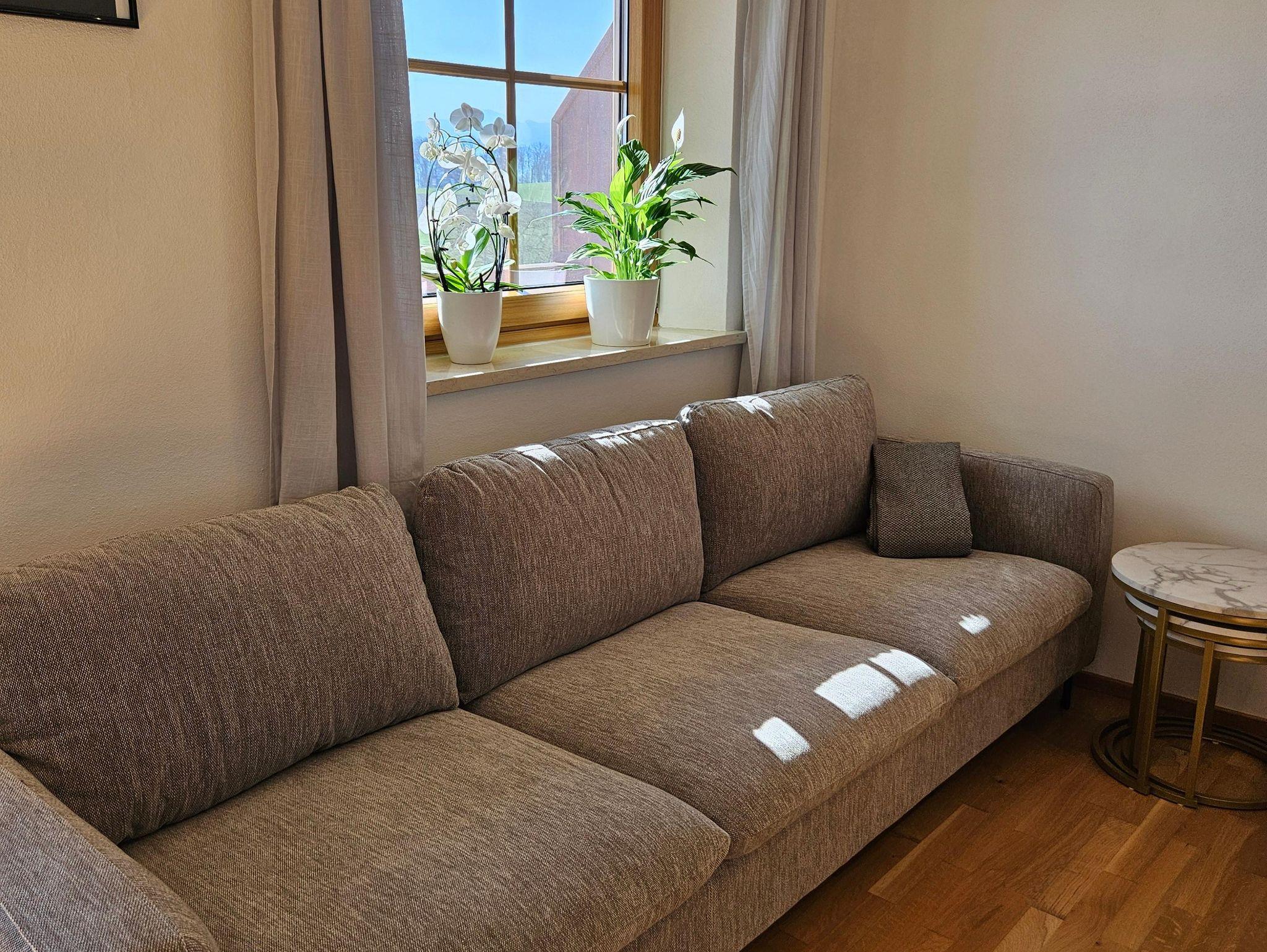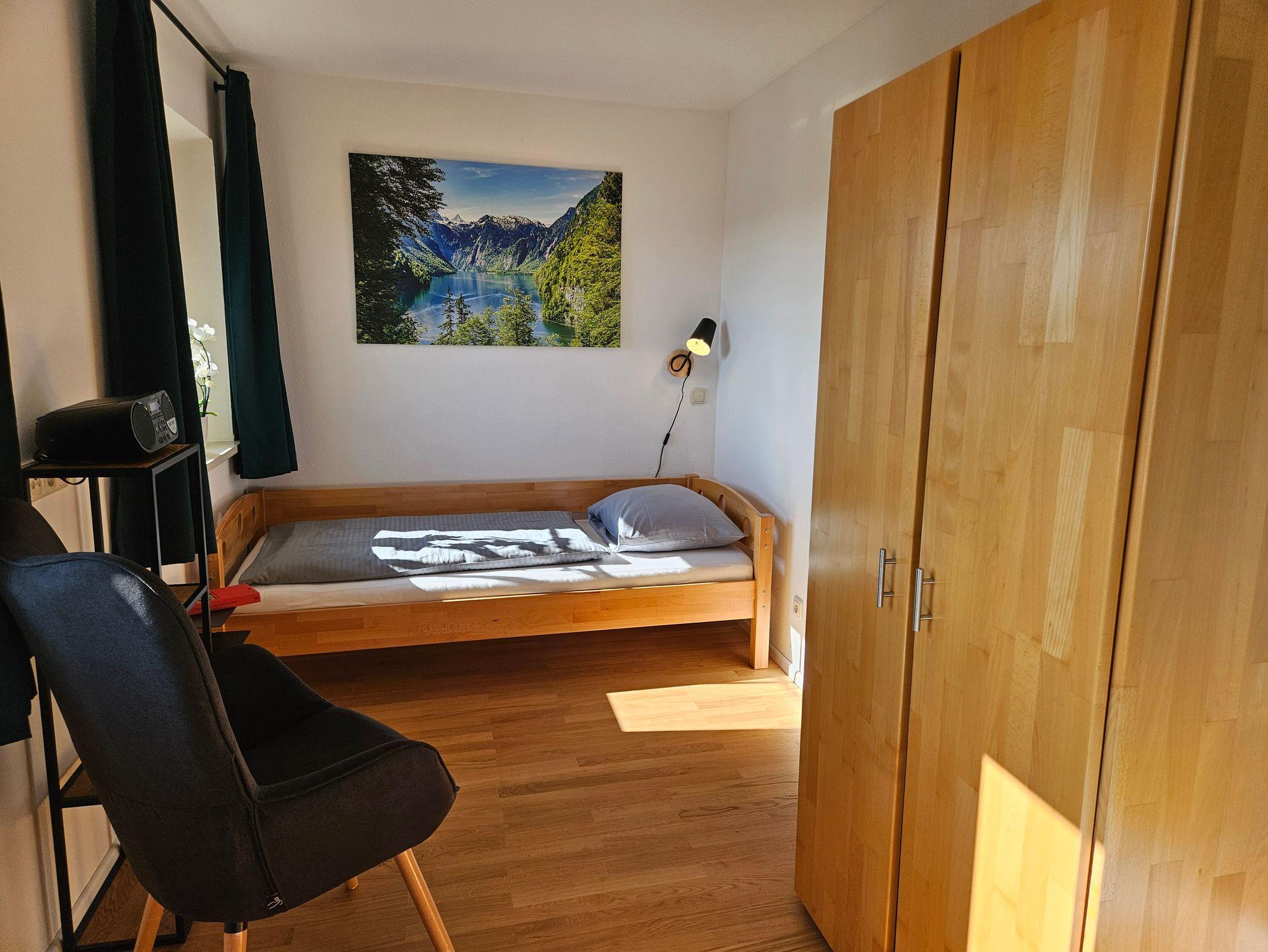 Die im Winter 24/25 umgebaute Ferienwohnung im 2. OG misst 55qm und verfügt über einen Eingangsbereich, ein Bad mit Dusche & WC und über 2 getrennte Schlafzimmer. Ein Schlafzimmer ist ausgestattet mit einem erhöhten Doppelbett, das zweite Schlafzimmer verfügt über zwei Einzelbetten. Außerdem ist ein toller Wohnraum mit Küche entstanden. Dieser ist eingerichtet mit einer äußerst hochwertigen, modernen und sehr gut ausgestatteten Küche, einen schönen Essbereich sowie einer Couch & TV. Vom Wohnraum aus gelangt man auf den großen, möblierten Ost-Balkon mit einem wunderschönen Blick in den Garten und die Chiemgauer Berge. Die Ferienwohnung ist außerdem mit W-Lan, Spülmaschine, Induktionskochfeld mit Dunstabzug, Backofen, Kaffeemaschine, Wasserkocher, Toaster, Handrührgerät und DAB-Radio mit CD-Player ausgestattet. Eine Allergikerbetten sind auf Wunsch verfügbar. Die Schlafzimmer-Möbel und der Essbereich sind aus heimischen Massivholz gefertigt.