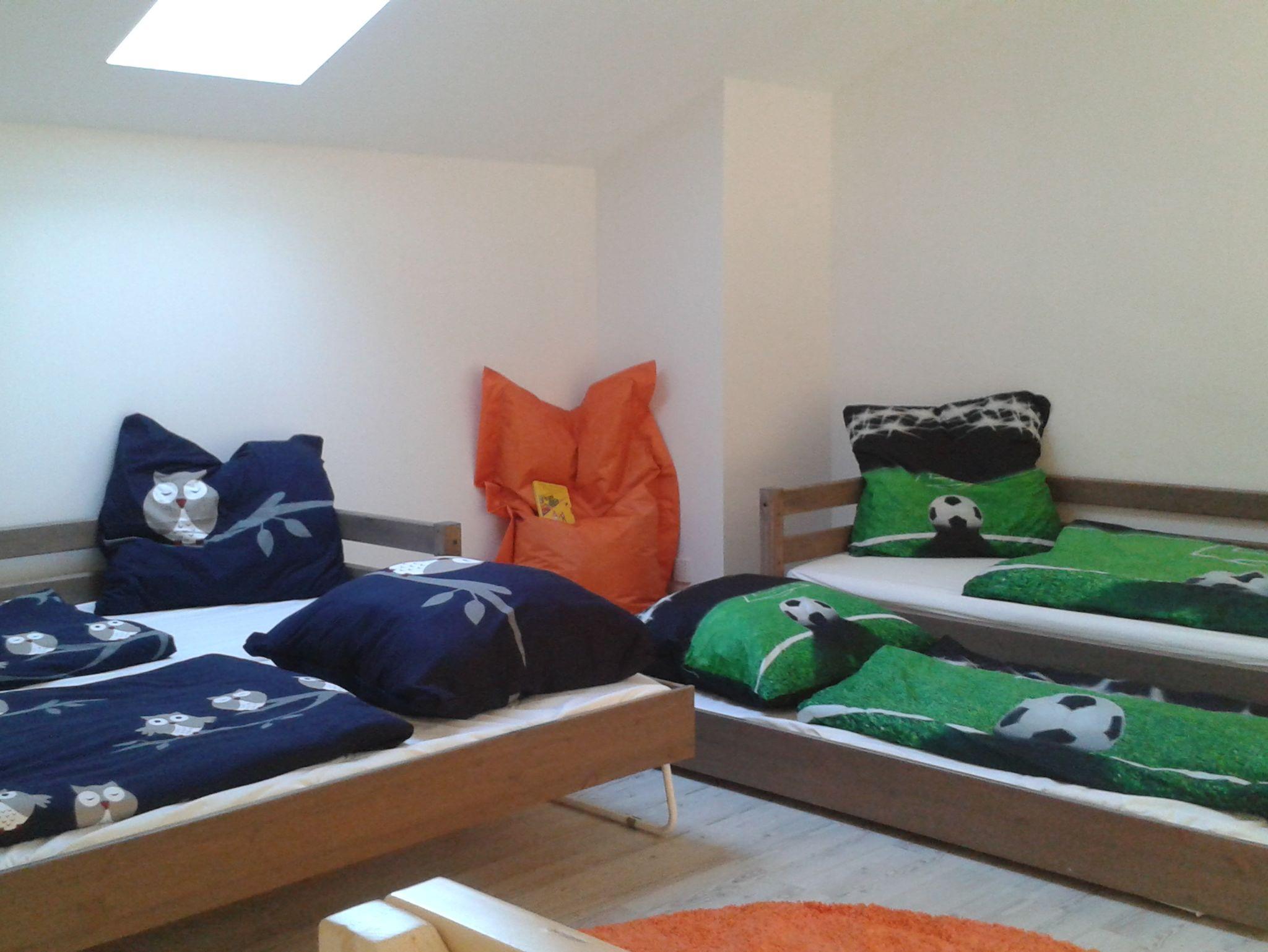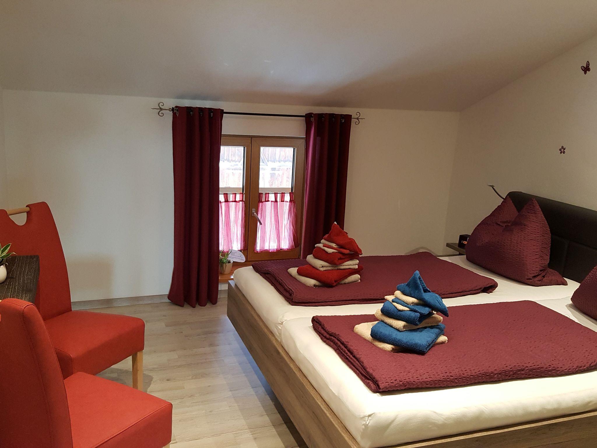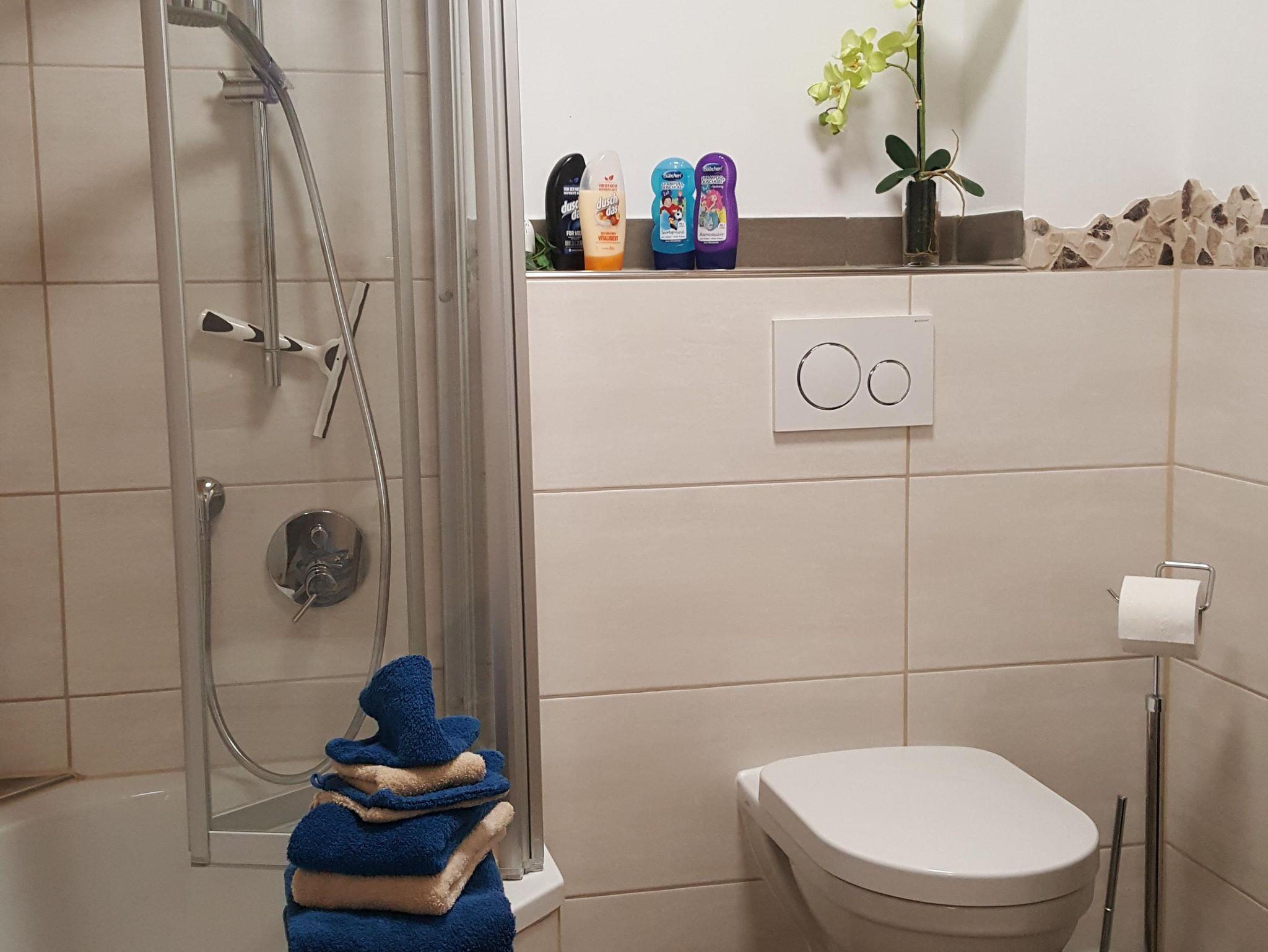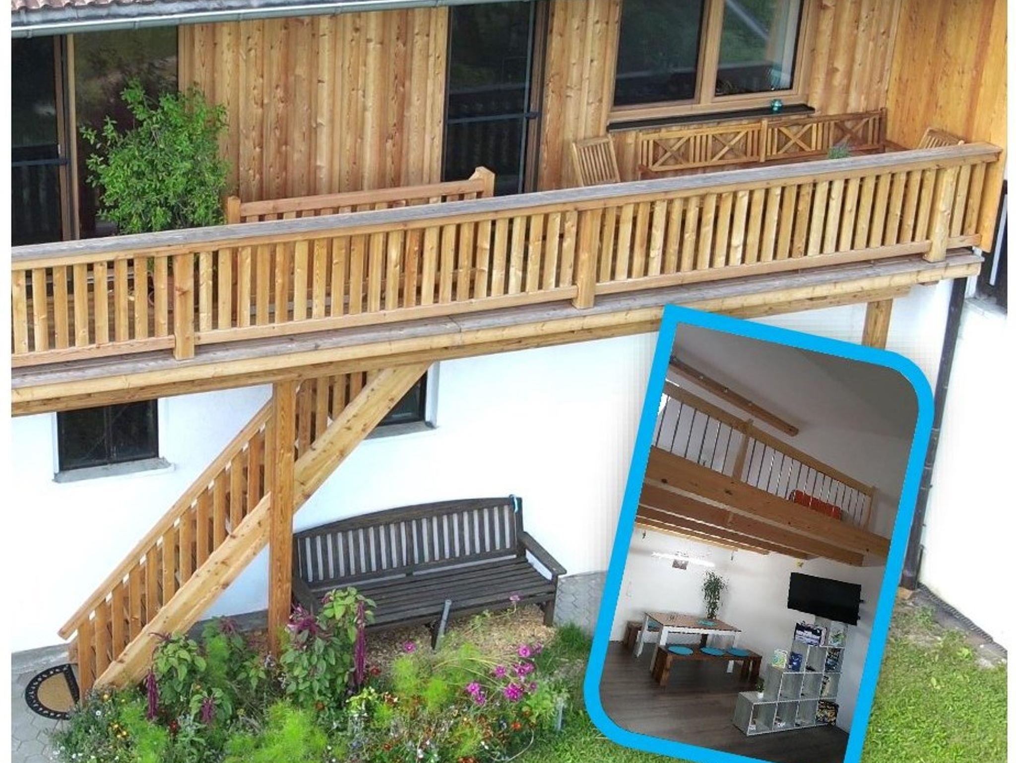 Unsere liebevoll und modern eingerichtete Ferienwohnung ChiemseeZeit ist im ersten Stock und bietet auf 90qm Platz für 2 bis 8 Personen, die auch alle auf dem geräumigen Balkon Platz finden :) Im Schlafzimmer schlafen sie im 180x200cm großem Doppelbett auf hochwertigen Kaltschaummatratzen. Das Kinderzimmer auf der offenen Galerie hat 4 Betten, (2 mit 90x200cm + 2 mit 90*190cm), in denen auch 4 Erwachsene schlafen können. In unserem individuell gestalteten Bad/WC finden Sie eine große Eckbadewanne mit Echtglas Duschwand vor. In der Küche ist neben den üblichen E-Geräten eine Senseo Switch Kaffeemaschine für Pad und Filter. Sitzen können Sie entweder an der Theke, am großen Esstisch mit Massivholzbänken, ganz gemütlich auf der großen Eckcouch aus Luxus-Microfaser, oder auf unserem großen Lärchenholz Balkon. Dort haben Sie auch Ihre Kids beim Spielen auf der Wiese im Blick, und können so ganz entspannt den Tag mit Blick auf Berge und See ausklingen lassen. Wir haben hochwertige Laminat- und Fliesenböden verlegt, so dass auch die Allergiker unter Ihnen gut durchschnaufen können. Natürlich sind Handtücher, Bettwäsche parken und WLAN kostenlos.
