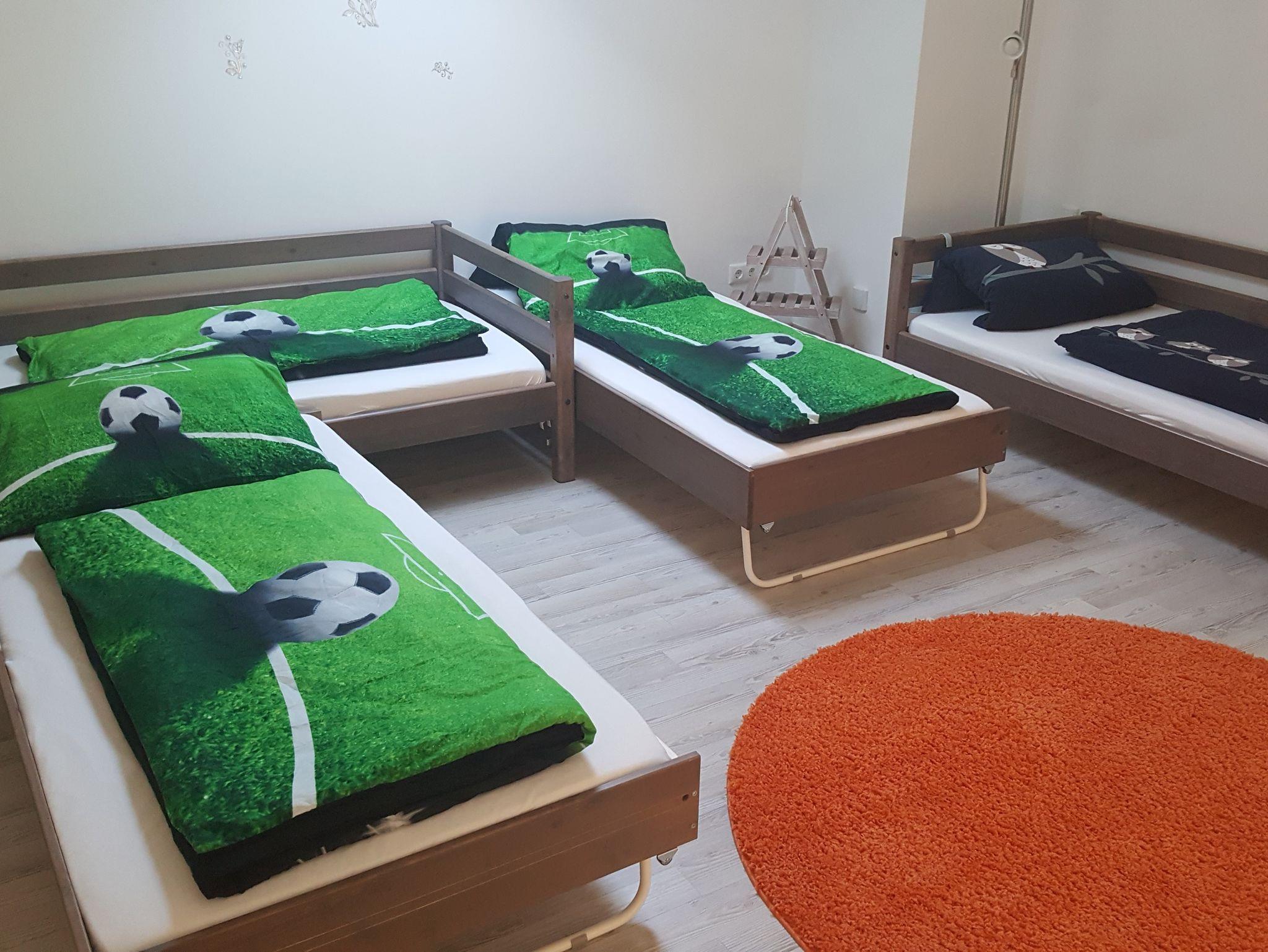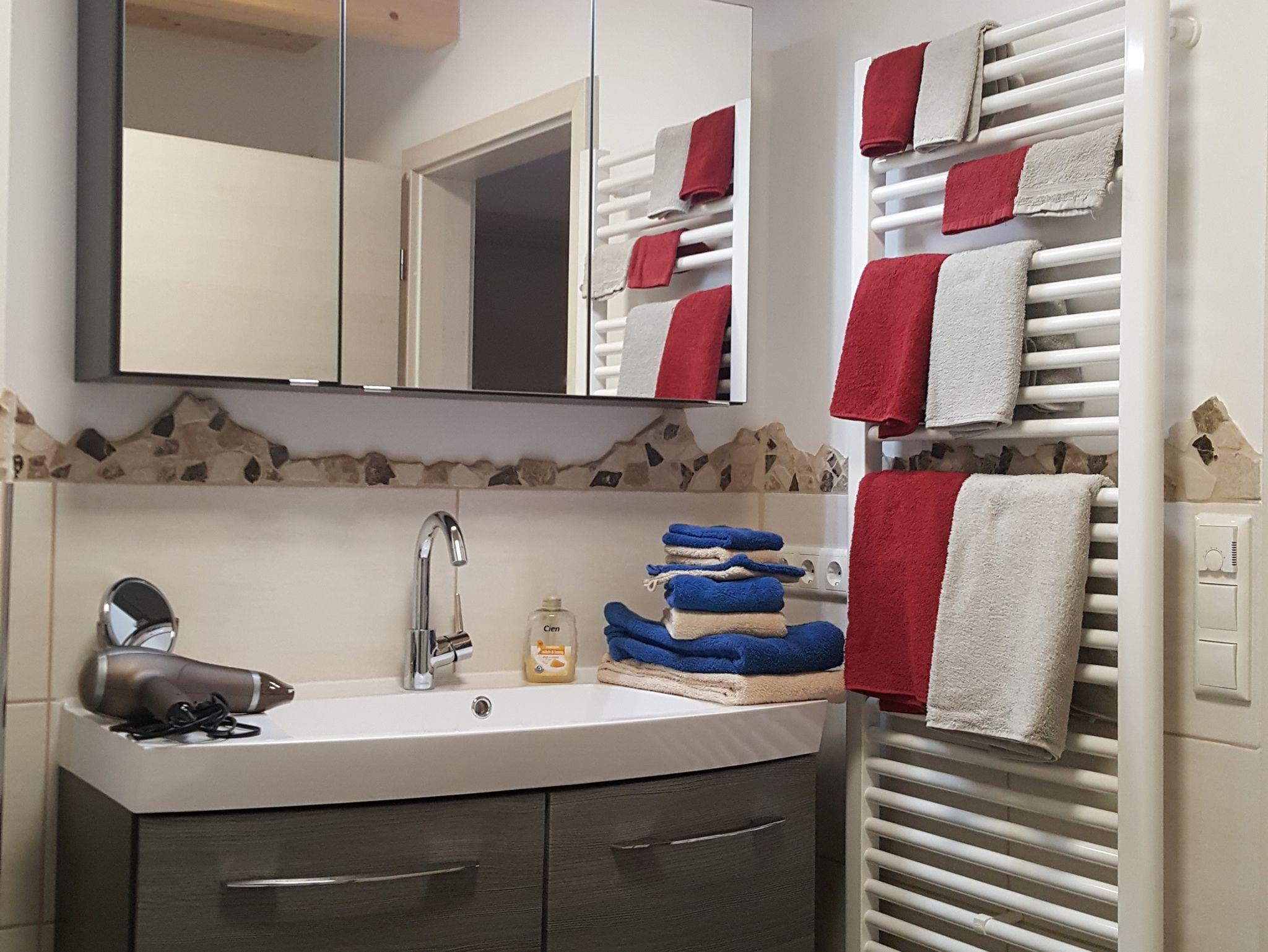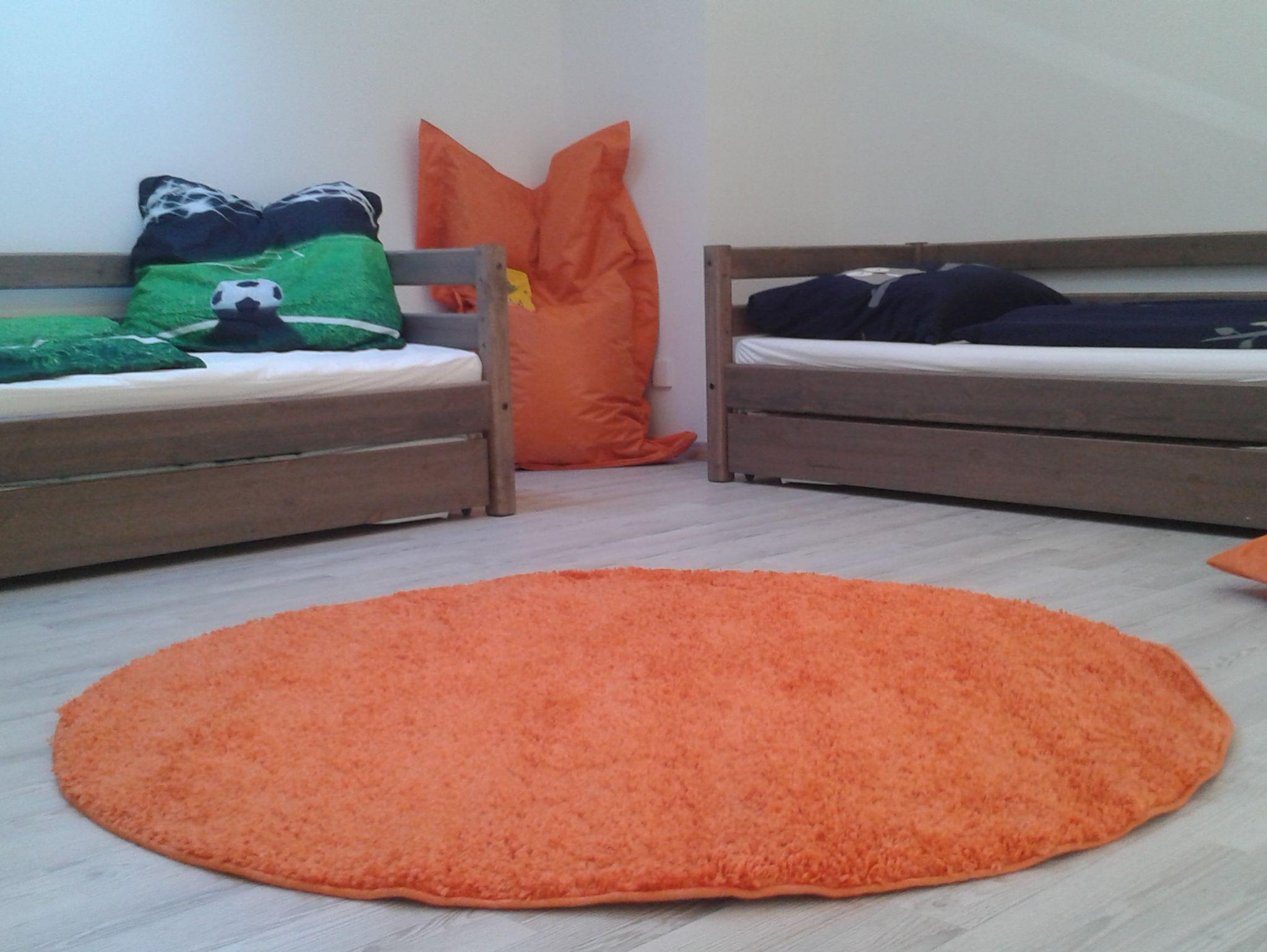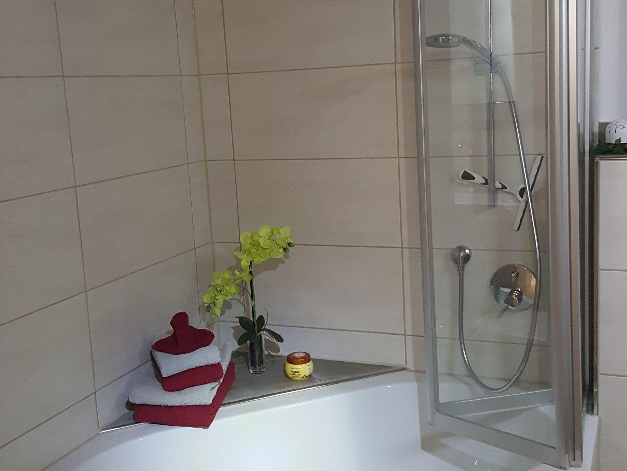 Unsere liebevoll und modern eingerichtete Ferienwohnung ChiemseeZeit ist im ersten Stock und bietet auf 90qm Platz für 2 bis 8 Personen, die auch alle auf dem geräumigen Balkon Platz finden :) Im Schlafzimmer schlafen sie im 180x200cm großem Doppelbett auf hochwertigen Kaltschaummatratzen. Das Kinderzimmer auf der offenen Galerie hat 4 Betten, (2 mit 90x200cm + 2 mit 90*190cm), in denen auch 4 Erwachsene schlafen können. In unserem individuell gestalteten Bad/WC finden Sie eine große Eckbadewanne mit Echtglas Duschwand vor. In der Küche ist neben den üblichen E-Geräten eine Senseo Switch Kaffeemaschine für Pad und Filter. Sitzen können Sie entweder an der Theke, am großen Esstisch mit Massivholzbänken, ganz gemütlich auf der großen Eckcouch aus Luxus-Microfaser, oder auf unserem großen Lärchenholz Balkon. Dort haben Sie auch Ihre Kids beim Spielen auf der Wiese im Blick, und können so ganz entspannt den Tag mit Blick auf Berge und See ausklingen lassen. Wir haben hochwertige Laminat- und Fliesenböden verlegt, so dass auch die Allergiker unter Ihnen gut durchschnaufen können. Natürlich sind Handtücher, Bettwäsche parken und WLAN kostenlos.