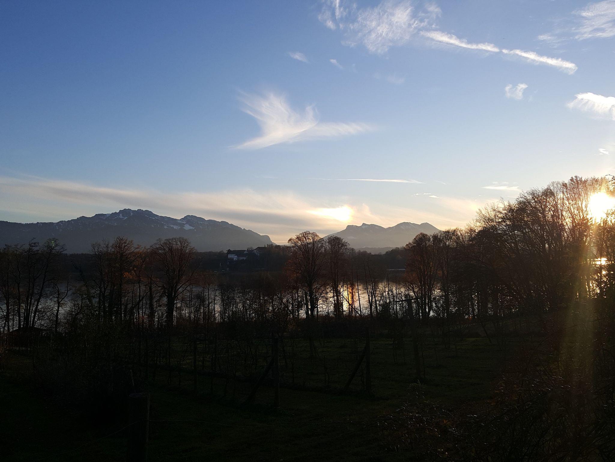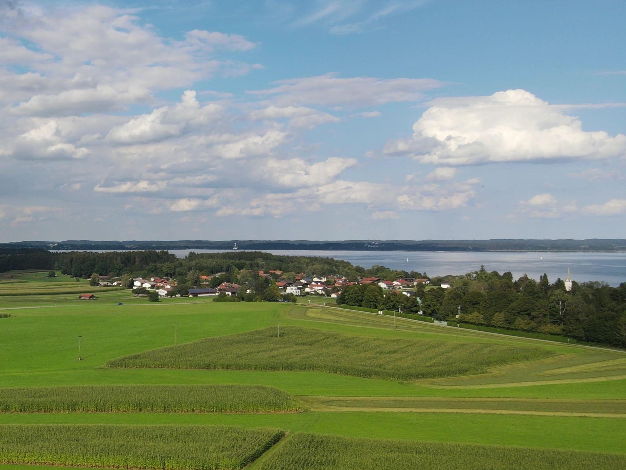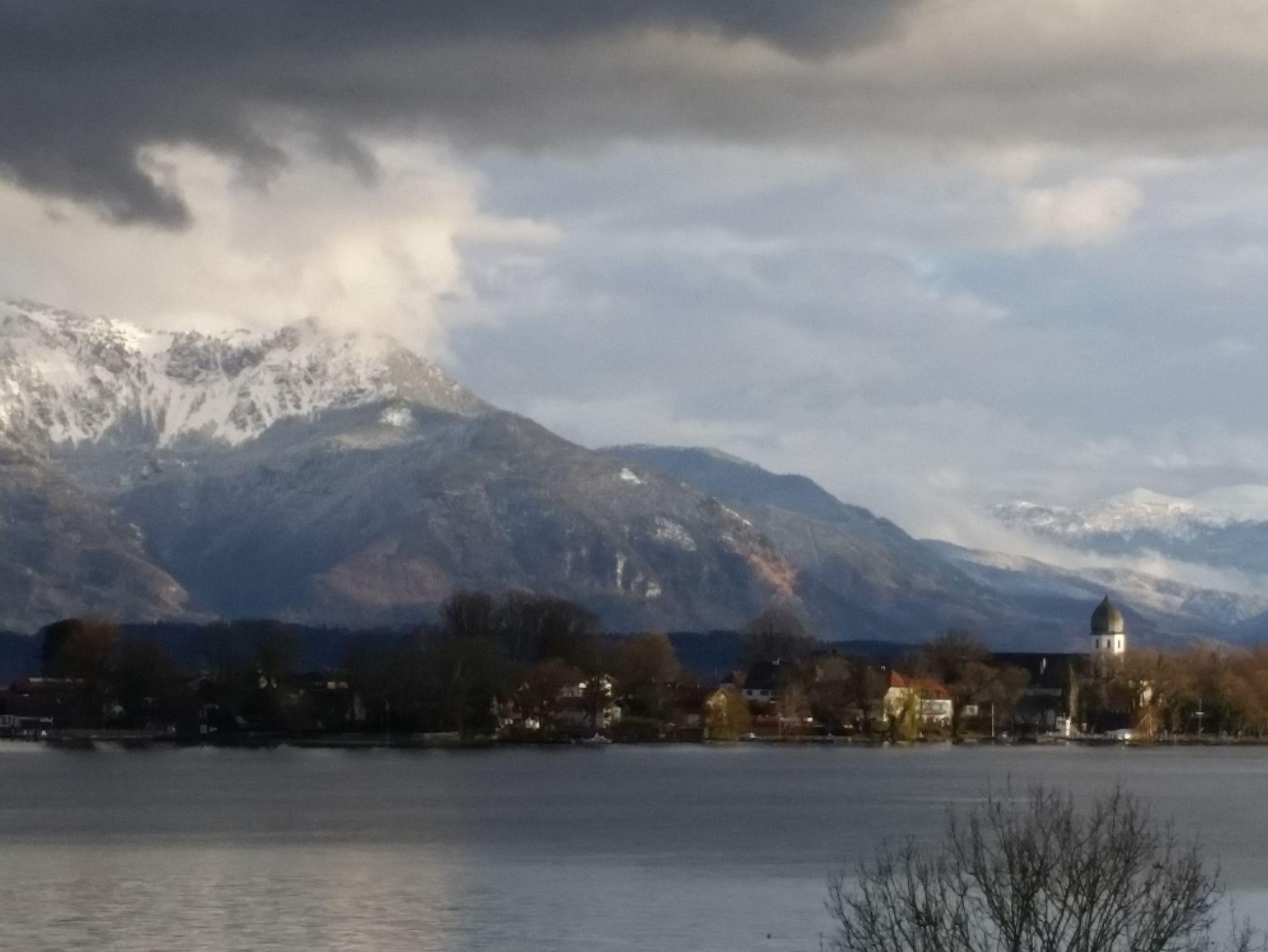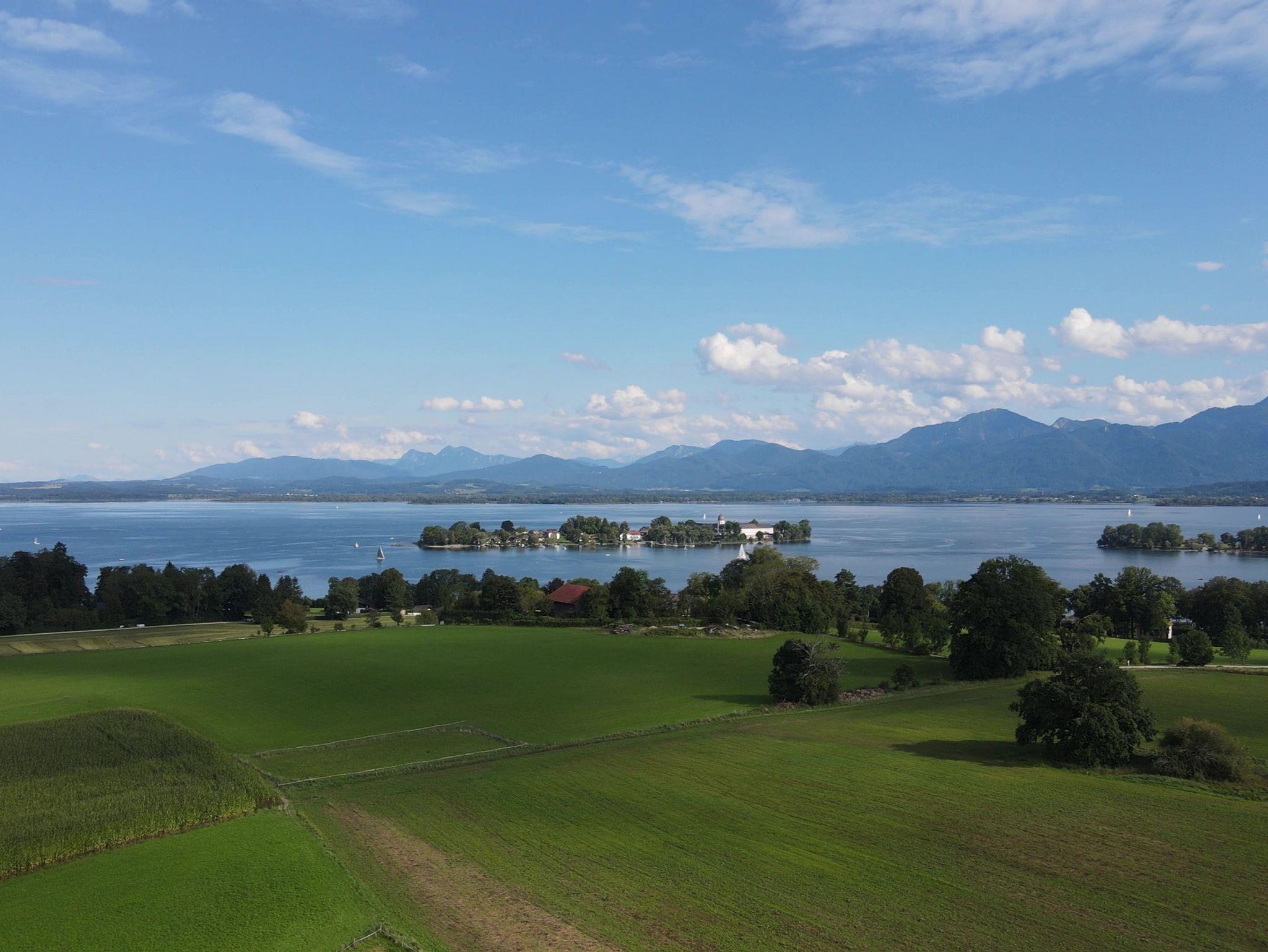 Ihre Ferienwohnung liegt auf einem sanften Hügel zwischen Breitbrunn und Gstadt am Nordufer des Chiemsees. Vom Balkon unseres kleinen Paradieses werden Sie hoffentlich bald den traumhaften Blick auf den See mit den Inseln und die Berge, die wir auf dieser Seeseite so superschön vor uns haben, mit allen Sinnen geniessen!
