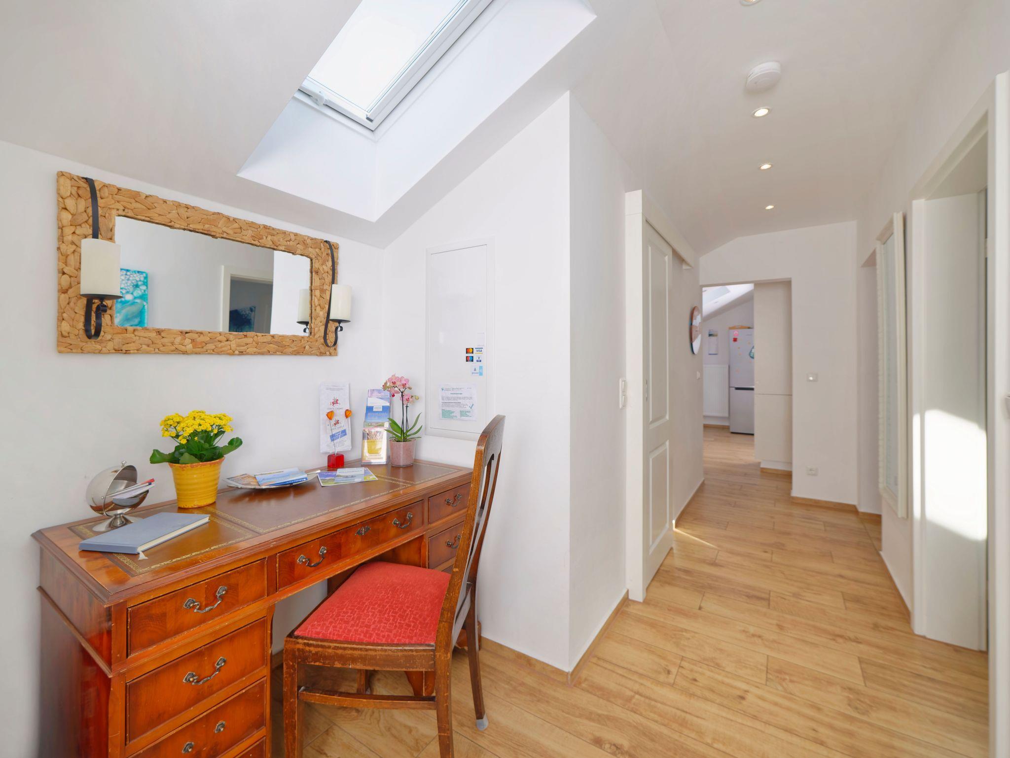 2 separate Schlafzimmer, ein Doppelbett, zwei Einzelbetten und Schlafcouch im Wohnzimmer, Bettwäsche, Bügelmöglichkeit, Heizung. 2 Bäder mit WC und einmal Dusche, einmal Badewanne, Babyhochstuhl, Handtücher und Föhn. Wohnzimmer mit Essecke, Sitzgruppe, TV, W-LAN. Küche, Geschirrspüler, Ceranherd und Backofen, Kühlschrank mit separater Tiefkühleinheit. Balkon mit Balkonmöbeln und zusätzlicher Terrasse mit Gartenmöbeln, Grillen auf der Terrasse nach Absprache erlaubt, Nichtraucherwohnung, Waschmaschine vorhanden, Hunde erlaubt, Stellplatz Auto / Trockener Stellplatz für Motorräder / Fahrräder + Stellplatz für einen Motorradhänger kann gerne gestellt werden.