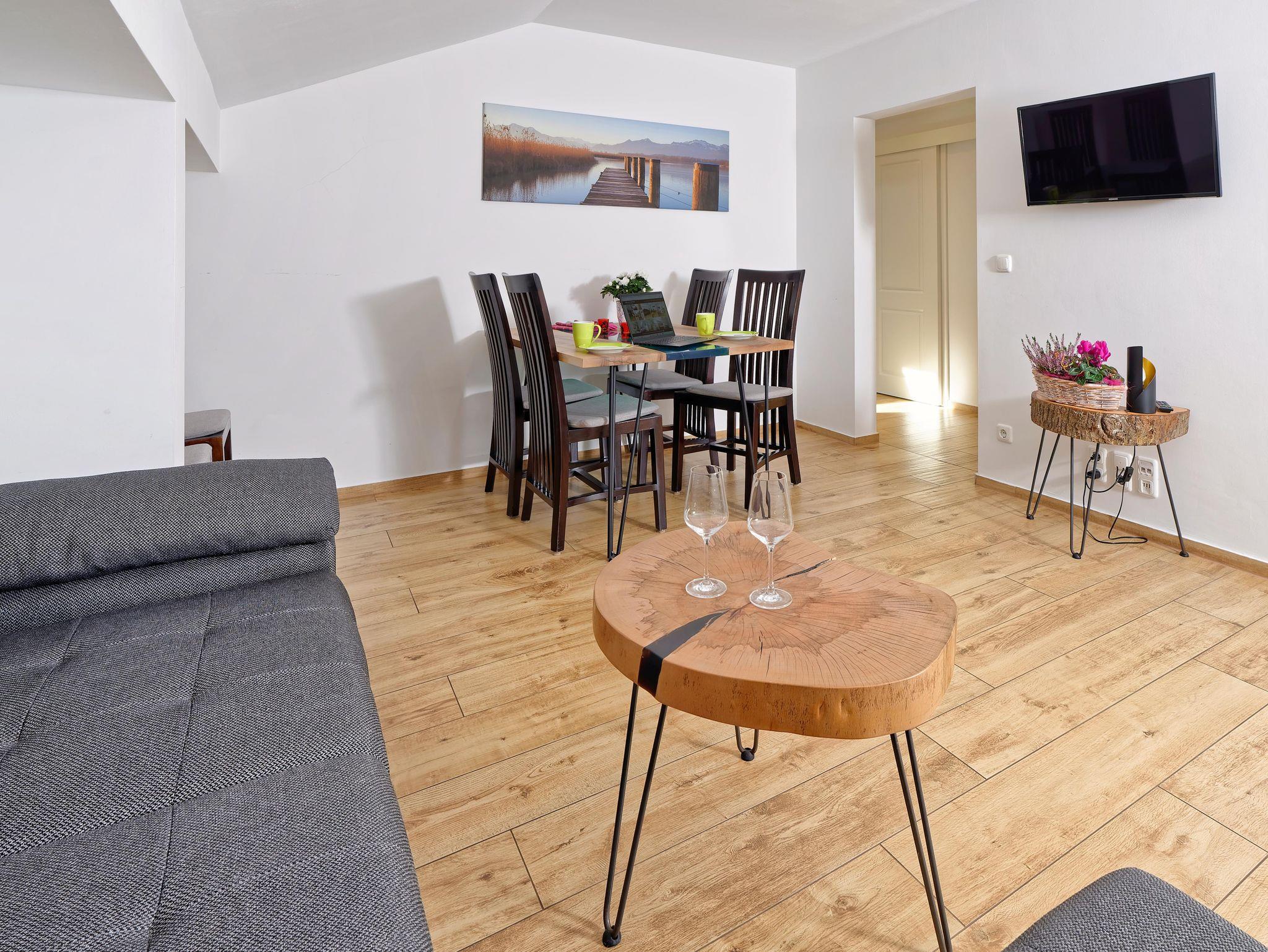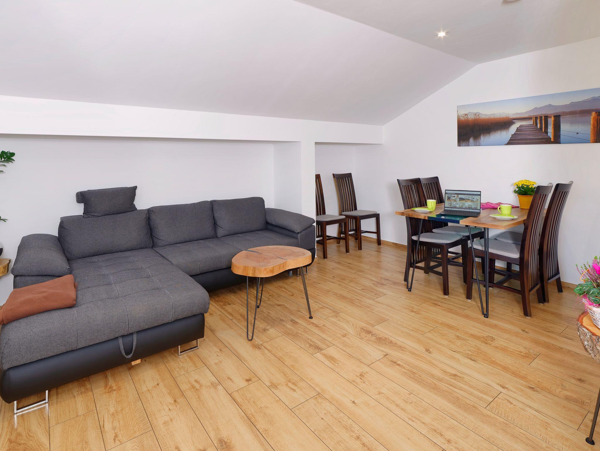 Neu renovierte Ferienwohnung im DG in herrlich ruhiger Lage am Ortsrand von Gstadt. Traumhaft ist der Blick von dem Balkon auf die Berge. Der malerische Chiemsee ist nur wenige Gehminuten entfernt. Bäcker, Postfiliale und Einkaufsmöglichkeit sowie Boots- und Fahrradverleih sind in Gehdistanz. Die öffentliche Badestelle und der Bootsanleger sind auch in wenigen Minuten zu Fuß erreichbar. Die Wohnung ist 2020 hochwertig renoviert worden, neue Bäder, neue Einbauküche mit Geräten, vollverfliest mit hochwertigen italienischen Fliesen in Holzoptik. Die Wohnung hat Dachschrägen, was eine sehr gemütliche Atmosphäre gibt. Das Dach wurde 2020 nach neuestem Standard isoliert und ist daher Sommer wie Winter angenehm temperiert.Wir stellen natürlich auch gerne Ausflugsempfehlungen, Restaurantempfehlungen und Motorradrouten bereit.