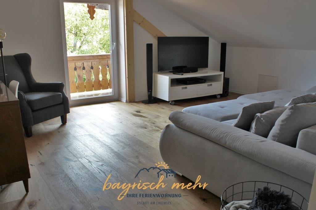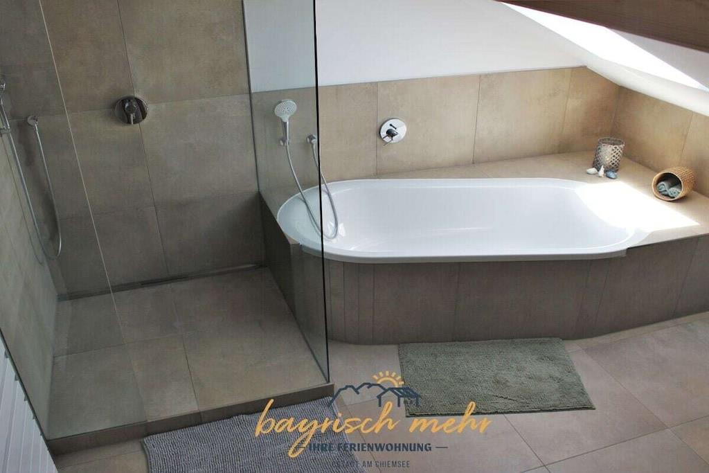 Ny ferielejlighed - totalrenoveret i 2021! Den rummelige ferielejlighed på 85 m² har en stue, køkken med spiseplads, to soveværelser og et badeværelse. Der er også en sydvendt balkon med udsigt over søen, hvor I kan nyde morgensolen. Stuen vender ud mod søen og har direkte adgang til balkonen. En stor sofa med fladskærms-tv inviterer jer til at slappe af. Vores køkken er fuldt udstyret. Spiseområdet i køkkenet tilbyder plads nok til hele familien. Derfra kan I se vores lokale bjerg, Kampenwand. I overnatter i vores to soveværelser i en seng af schweizisk fyrretræ. Vi tilbyder gerne en ekstra seng til børn efter anmodning. Det rummelige og moderne badeværelse har badekar og regnbruser.