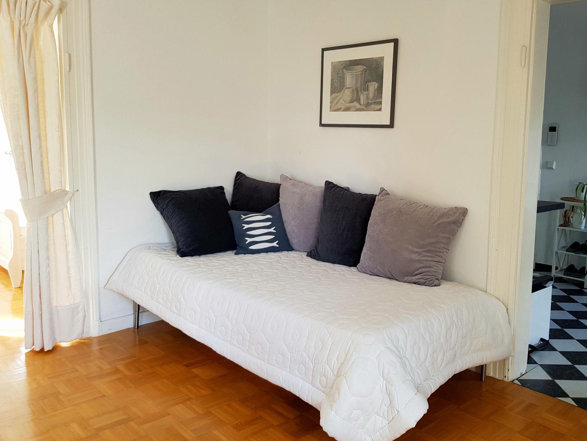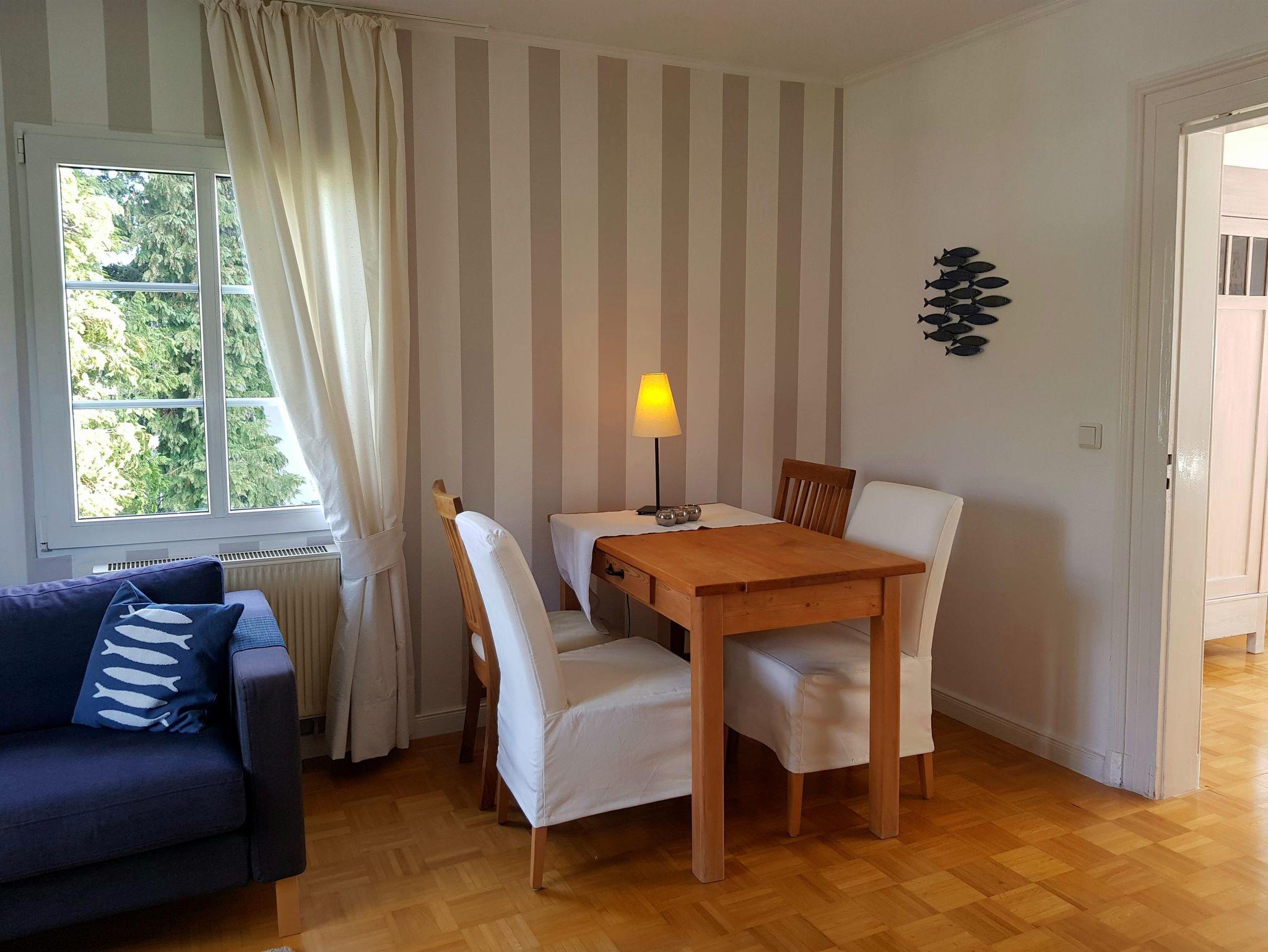 Die Ferienwohnung besteht aus einer Küche, einem Wohnzimmer mit Bett und Schlafcaoch, einem Schlafzimmer mit Doppelbett und einem Badezimmer mit Dusche und WC.