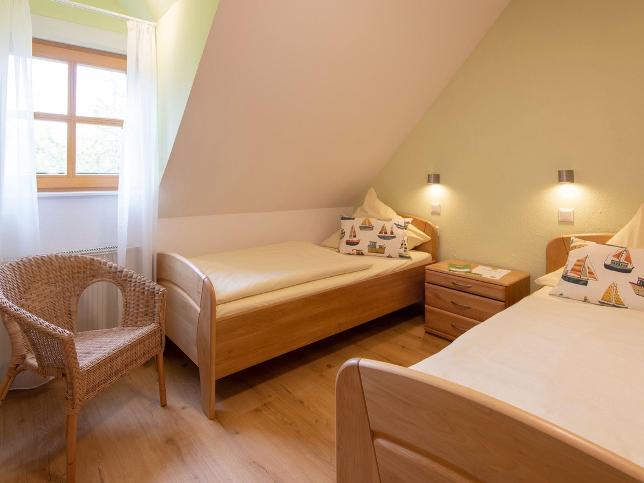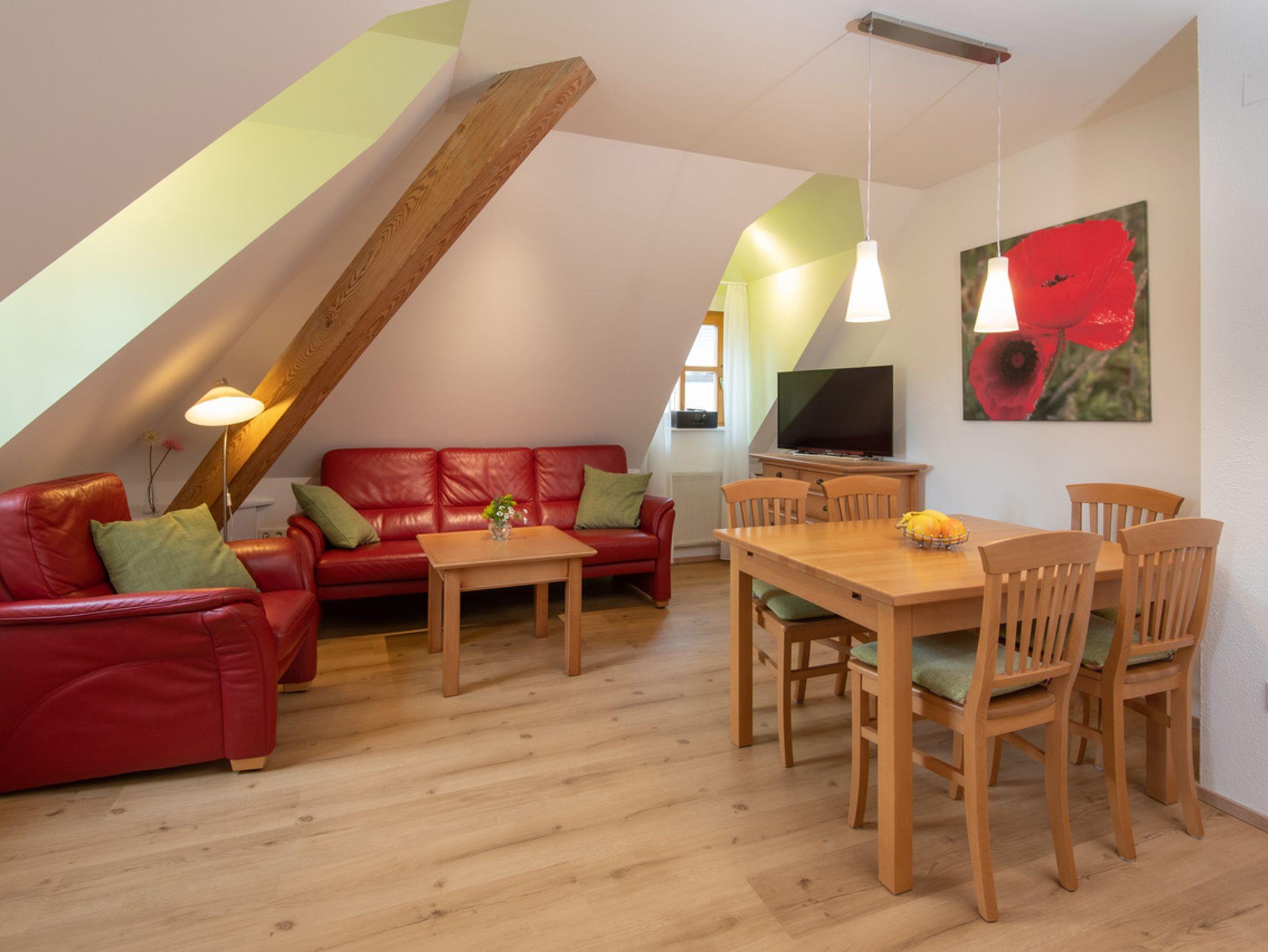 Ferienwohnung Nr. 6 hat 62 qm, ist mit 4 Sternen (DTV) bewertet, wurde 2023 neu renoviert und bietet Platz für 4 - 5 Personen. Elternschlafzimmer mit 1 Doppelbett ( 200x200 ) sowie Kindergitterbett. Kinderzimmer mit 2 Einzelbetten (je 90x190). Die komplett ausgestattete Küche mit Geschirrspüler, Kühlschrank inkl. Gefrierschrank, Ceranfeld, Backofen, Mikrowelle, Wasserkocher, Eierkocher, Toaster und Kaffeemaschine mit Mahlwerk lässt keine Wünsche offen. Essplatz und Sofa sowie Flachbild -TV mit Kabelanschluß. Überdachten Balkon mit direkten Blick zum Storchennest.