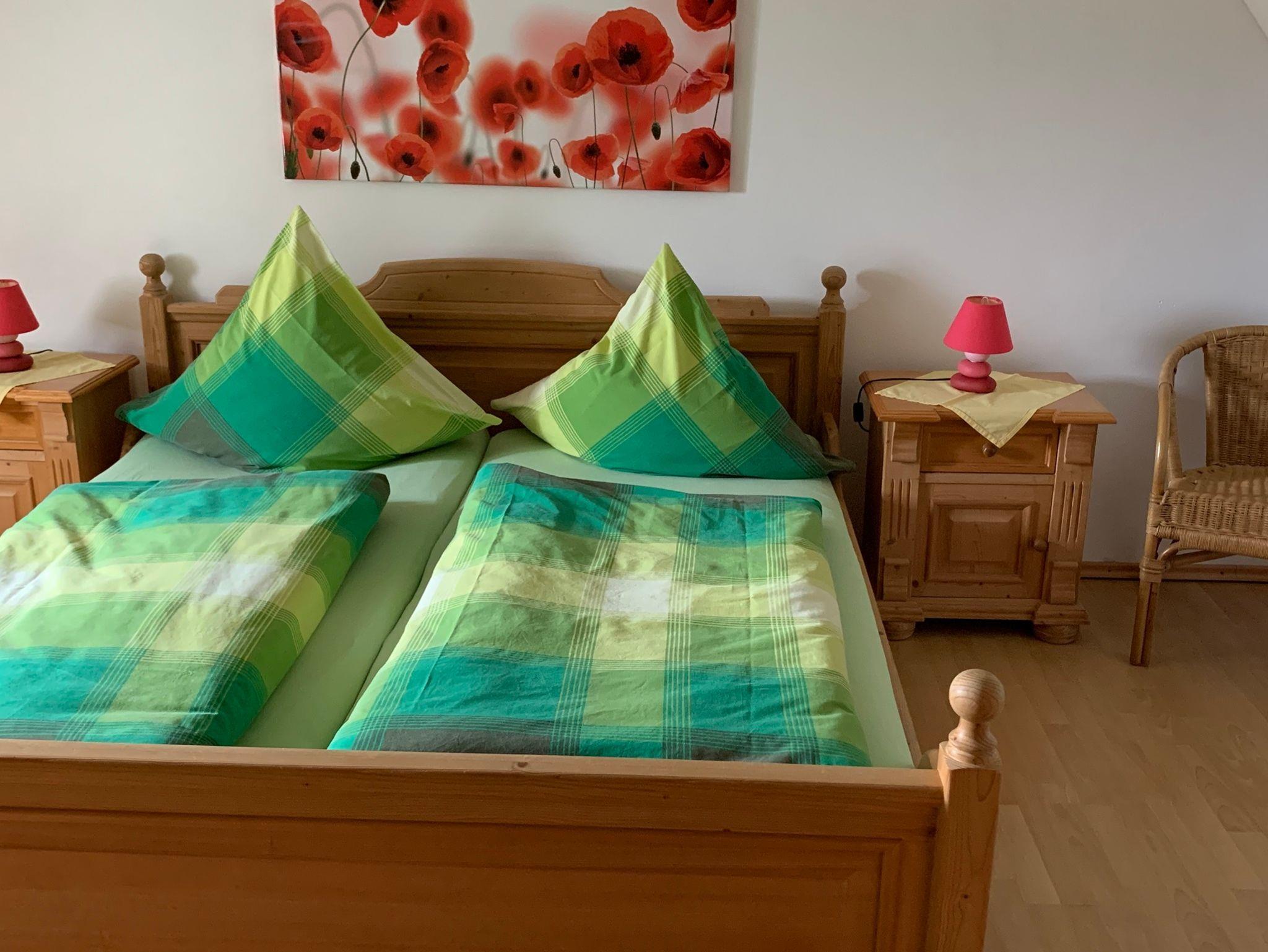 Die freundlich und stilvoll gestaltete Wohnung 3 ist ca. 70 qm groß. Die in sich abgeschlossene Wohnung befindet sich in der 1. Etage, mit Schlafräumen bestehend aus einem Doppelbett mit einem Kinder/-Babybett, sowie einem Zweibettzimmer im Obergeschoss. Im Wohnraum befindet sich eine Essecke, eine Couchgarnitur, Sat-TV und eine komplett ausgestattete Küche (inklusive Spülmaschine, Kühlschrank, Kaffeemaschine, Wasserkocher, Backofen, Toaster). Im Bad mit Fenster ist eine Dusche, ein Waschbecken und ein WC.