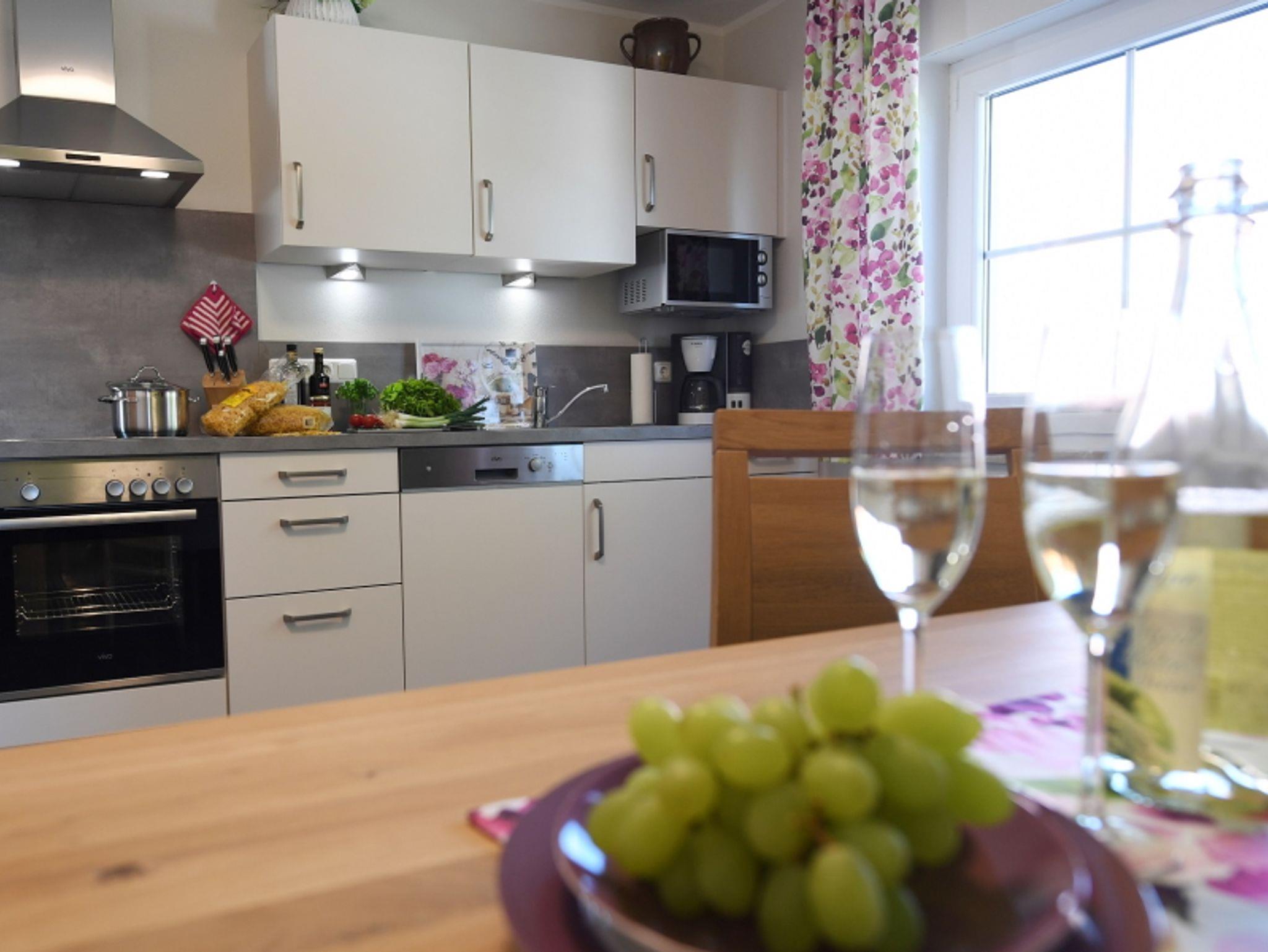 Die Wohnung Wildrose ist ca. 80m² groß, befindet sich im ersten Stock des Haupthaus und verfügt über einen Balkon. Die Wohnung hat eine vollausgestattete Einbauküche (Spülmaschine, E-Herd mit Glaskeramikkochfeld, Kühlschrank mit Gefrierfach, Mikrowelle und diverse Kleingeräte).