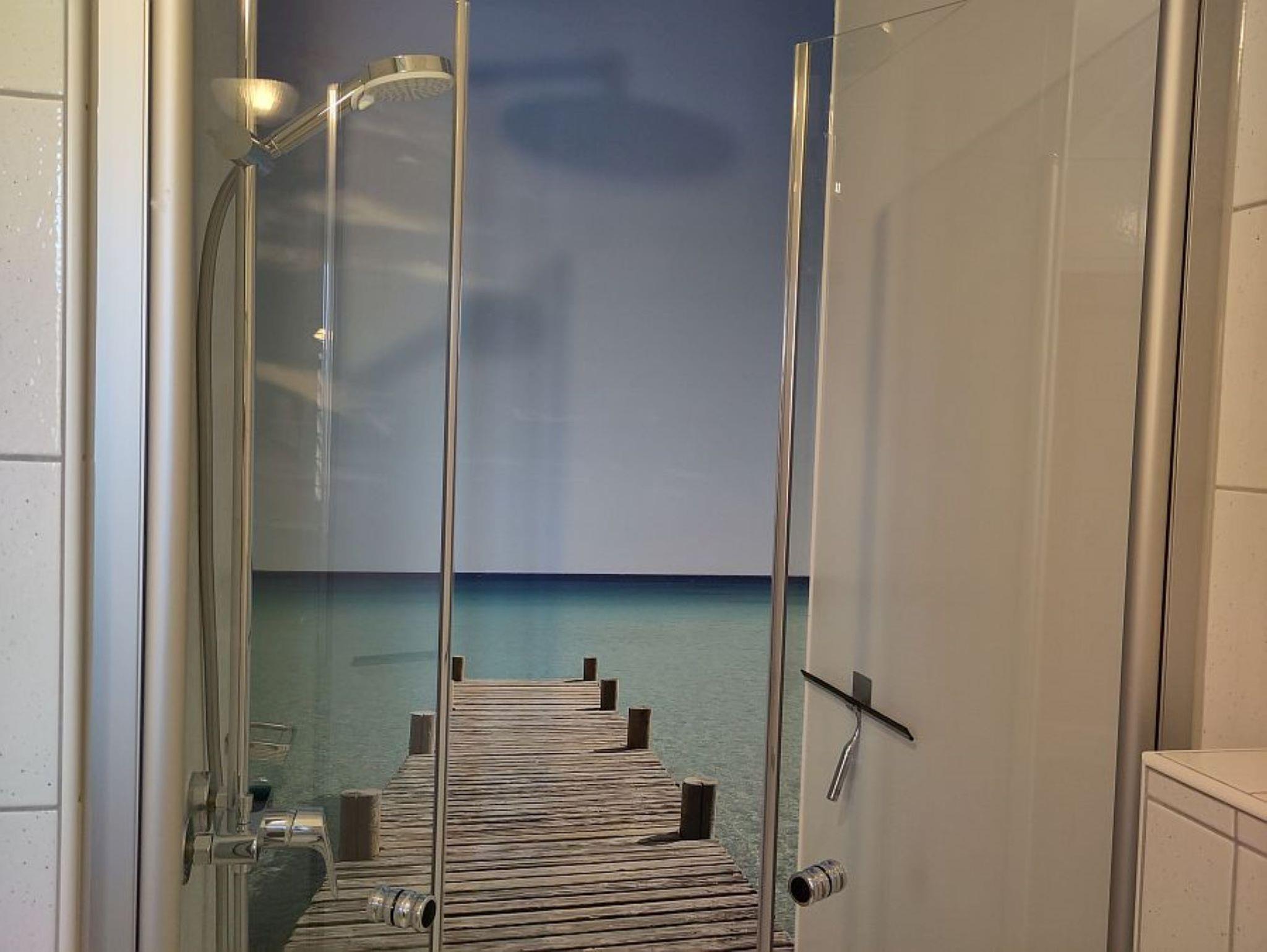 Die größeren Wohnungen im Ober- und Dachgeschoss haben jeweils zwei Schlafzimmer, einmal mit Doppelbett (160×200 cm) und einmal mit Stockbett (90×200 cm). In jedem Schlafzimmer hat zusätzlich ein Gitterbett Platz. Außerdem gibt es ein Bad mit Waschbecken, Dusche und WC und einen großzügigen Wohnraum mit Schlafcouch (160×200 cm), Esstisch mit Eckbank und Stühlen und natürlich eine Küche. Letztere sind komplett ausgestattet, u.a. mit Glaskeramik-Kochfeld (4 Platten), Backofen, Kühlschrank mit Gefrierfach und Spülmaschine. Entsprechend viel Geschirr und Besteck ist vorhanden, auch für Kinder. Außerdem finden Sie hier eine Kaffeemaschine, Wasserkocher, Toaster, Mixer, Kaffee- und Teefilter, Gewürze, Essig, Öl, Reinigungsmittel und –tücher…