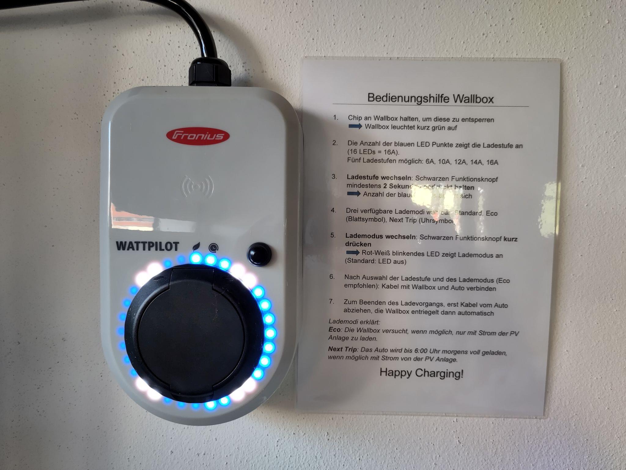 Falls Sie mit einem E-Auto anreisen können Sie dieses gerne an der vorhandenen Wallbox laden. Die Gebühr beträgt aktuell 0,40 €/kwh. Bitte geben Sie den Bedarf bei der Buchung bereits mit an.