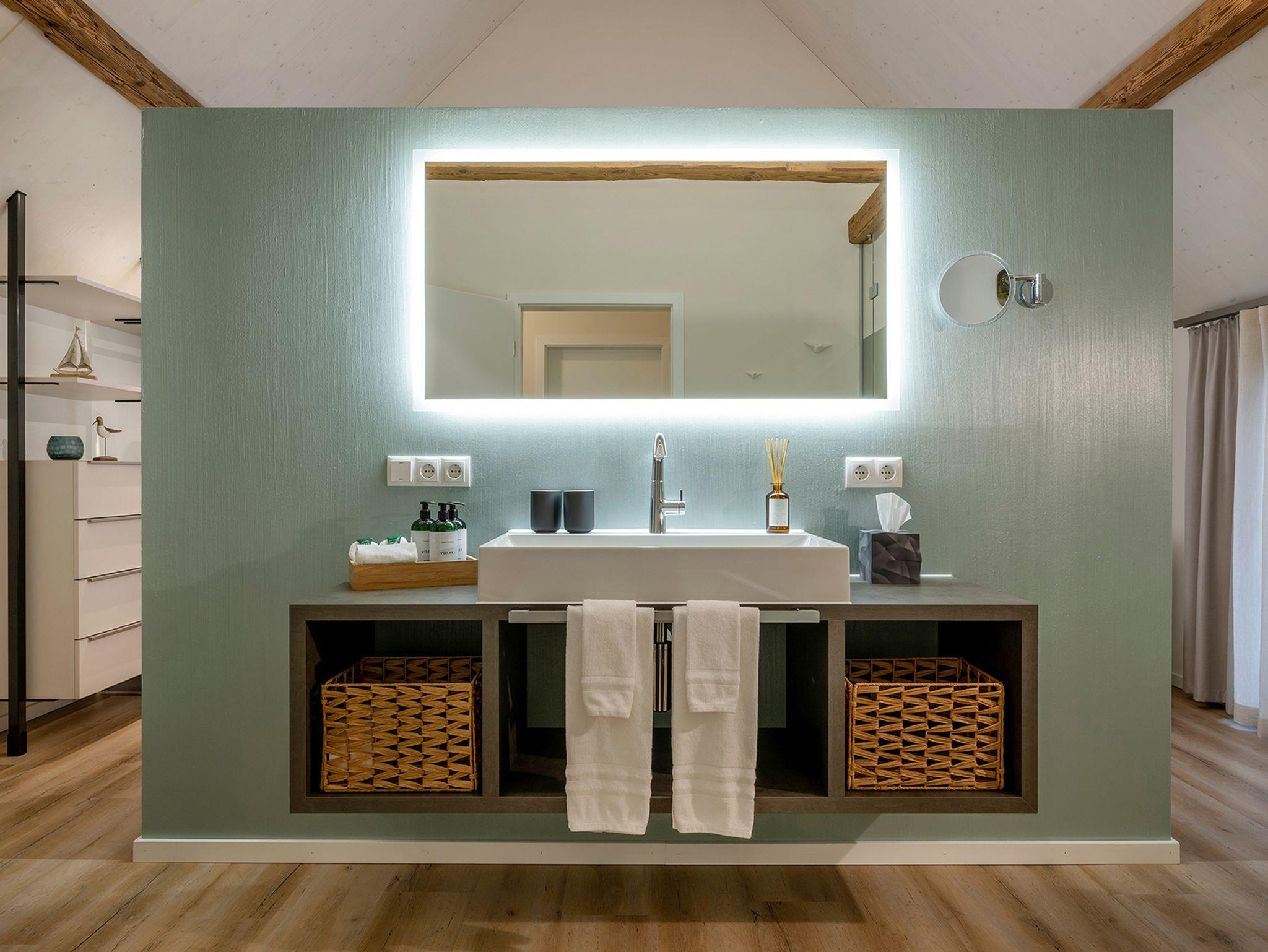 - Ein Bad pro Schafzimmer oder teilweise großes gemeinsames Bad mit Badewanne
