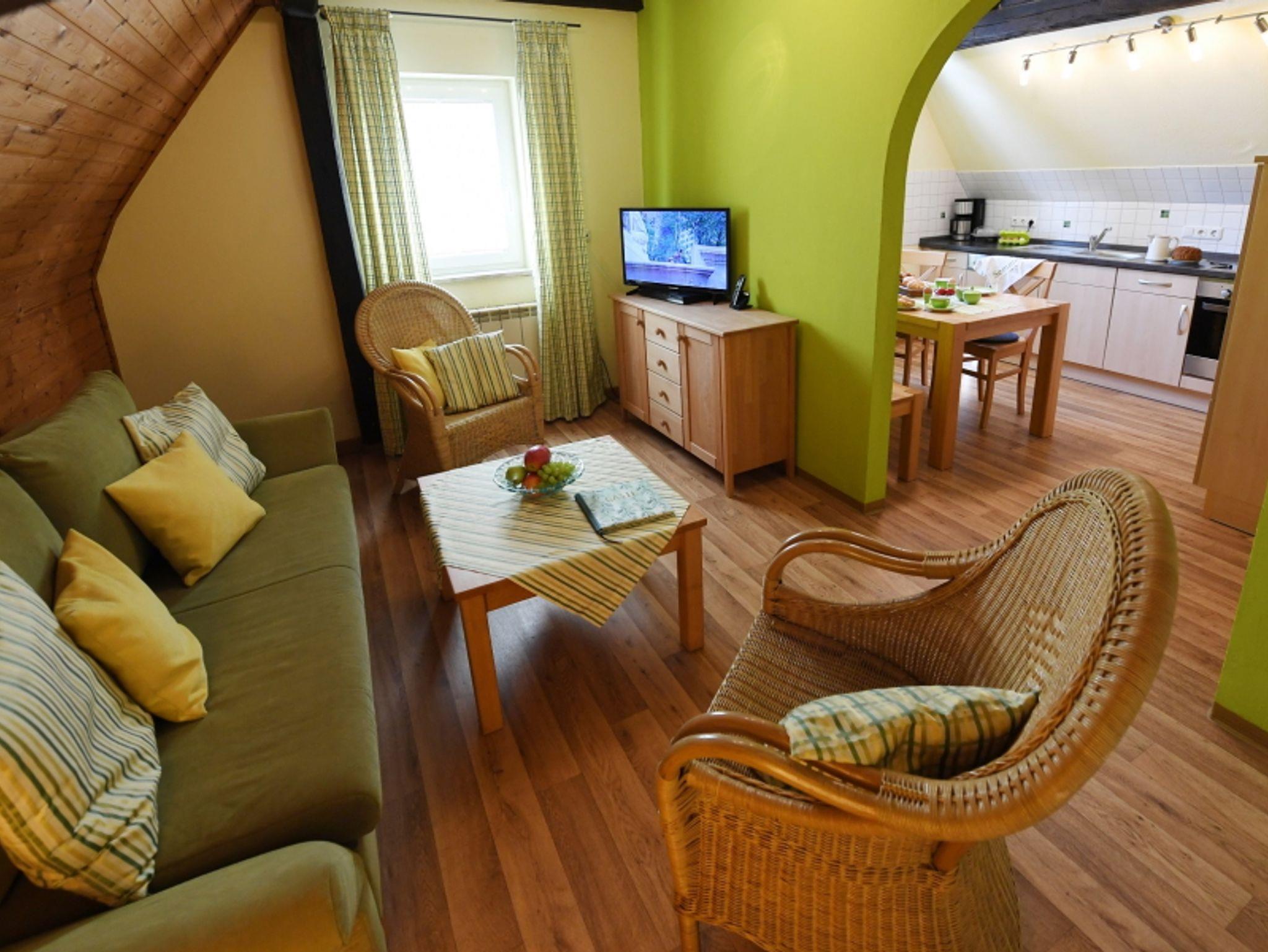 Die Wohnung Gänseblümchen ist ca. 60 m² groß und befindet sich im 2. Stock des Haupthauses.