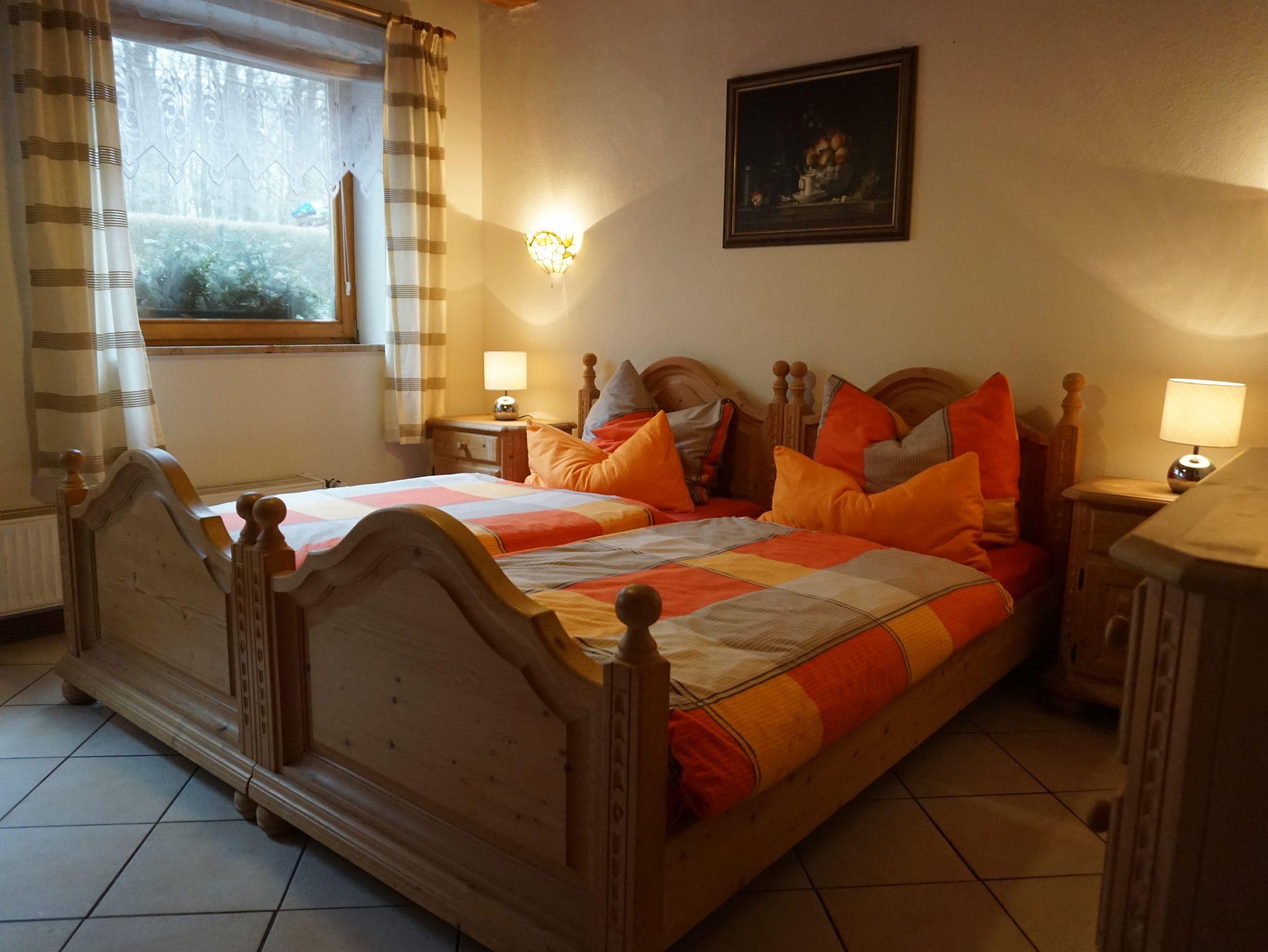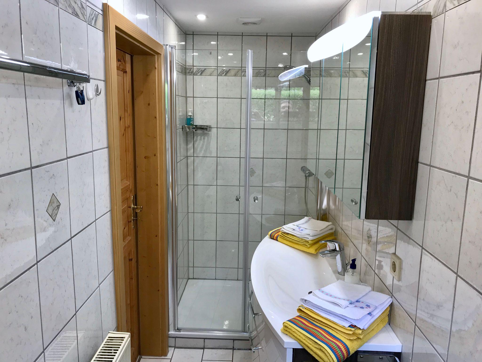 Die mit 3 Sternen klassifizierte 60 m² große Ferienwohnung in unserem Privathaus wurde im Jahr 2015 komplett renoviert. Über das geräumige Wohnzimmer mit Essplatz, LED-Smart-TV und uch gelangt man in die Küche, das Schlafzimmer und das Bad. Alle Zimmer haben Steinböden (im Wohnzimmer mit Fußbodenerwärmung). Im Schafzimmer stehen 2 Einzelbetten. Ein mitgebrachtes Kinderbett hat ebenfalls Platz. Die komplett eingerichtete Küche (Renovierung 2025) verfügt neben Kaffeemaschine, Wasserkocher und Toaster über eine Spülmaschine und eine Mikrowelle. Das Badezimmer ist mit einer Dusche ausgestattet (Renovierung 2019). Auf die möblierte Terrasse gelangt man von der Wohnung aus. Die im Tiefparterre liegende Wohnung ist ohne Stufen zu erreichen. Einen Parkplatz finden Sie direkt vorm Haus. Bettwäsche, Handtücher und Bademäntel werden selbstverständlich gestellt.
